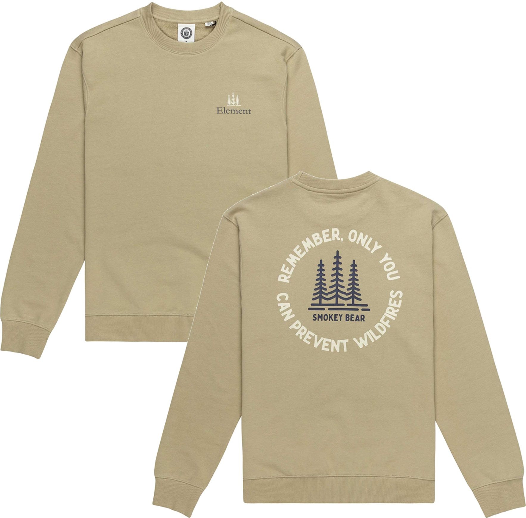 Sweat Element Sbxe Remember Tea homme à coupe standard, imprimés écologiques poitrine et dos, bords-côtes ajustés, confort quotidien.
