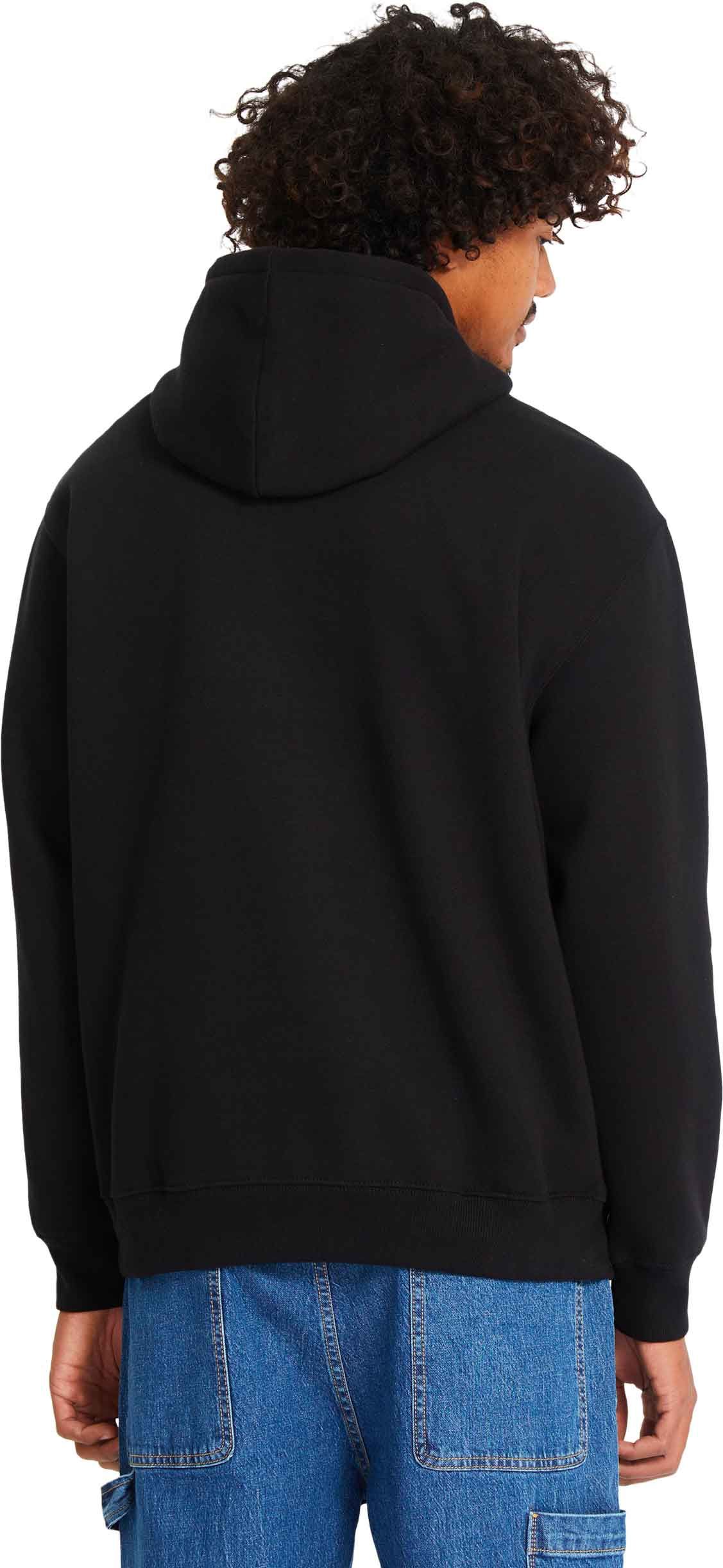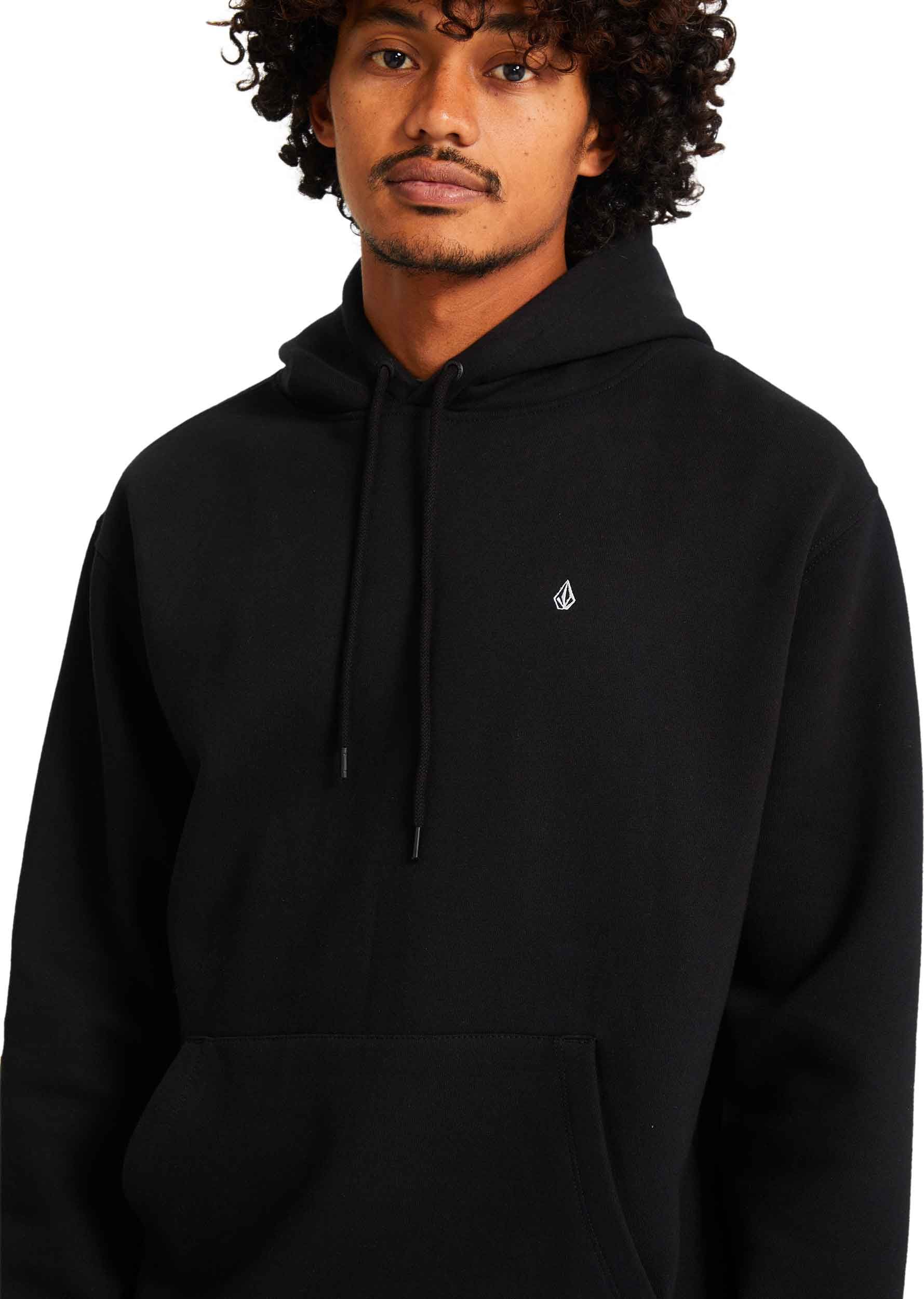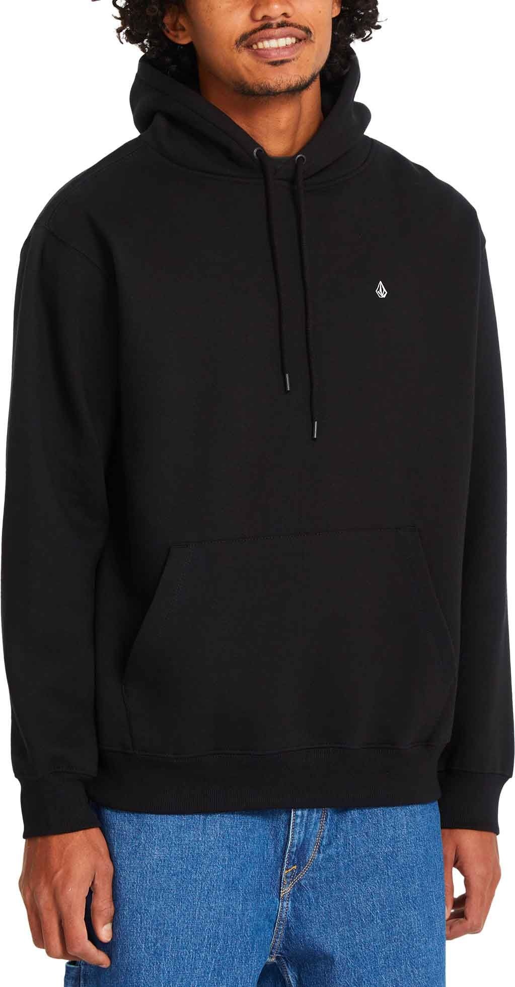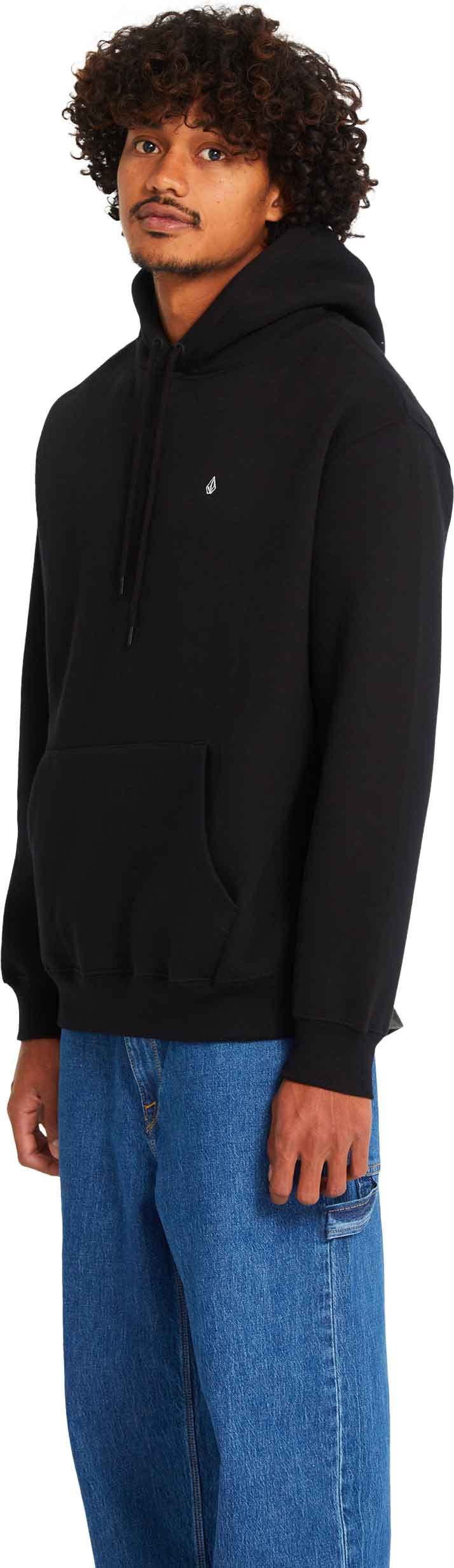Sweat à capuche Volcom Single Stone Po Black homme, en molleton coton/polyester recyclé, coupe classique, broderie discrète et finitions métalliques.