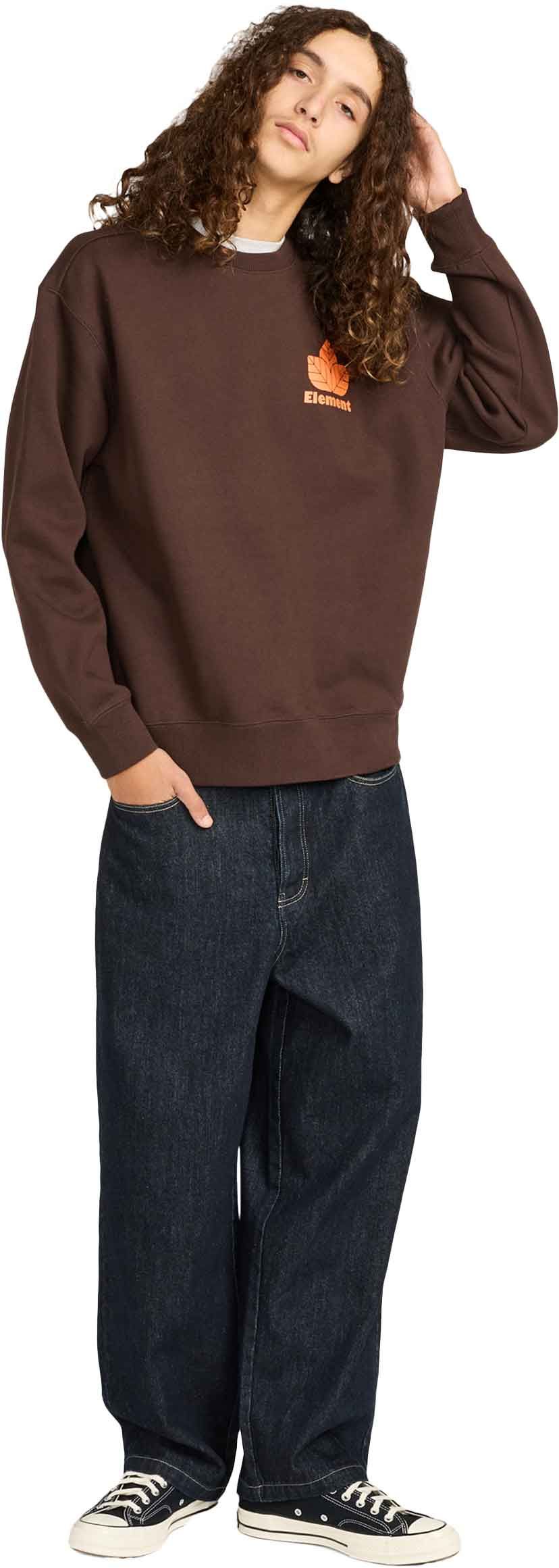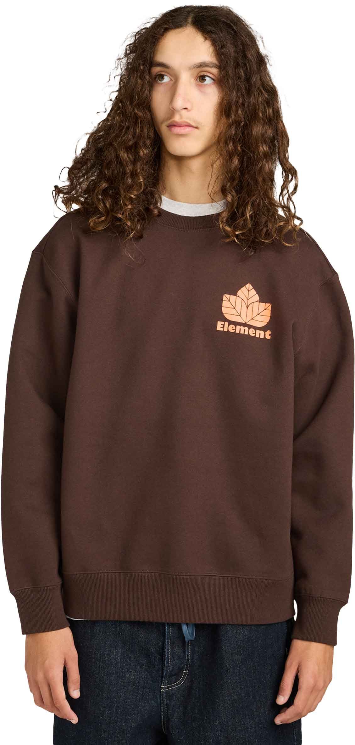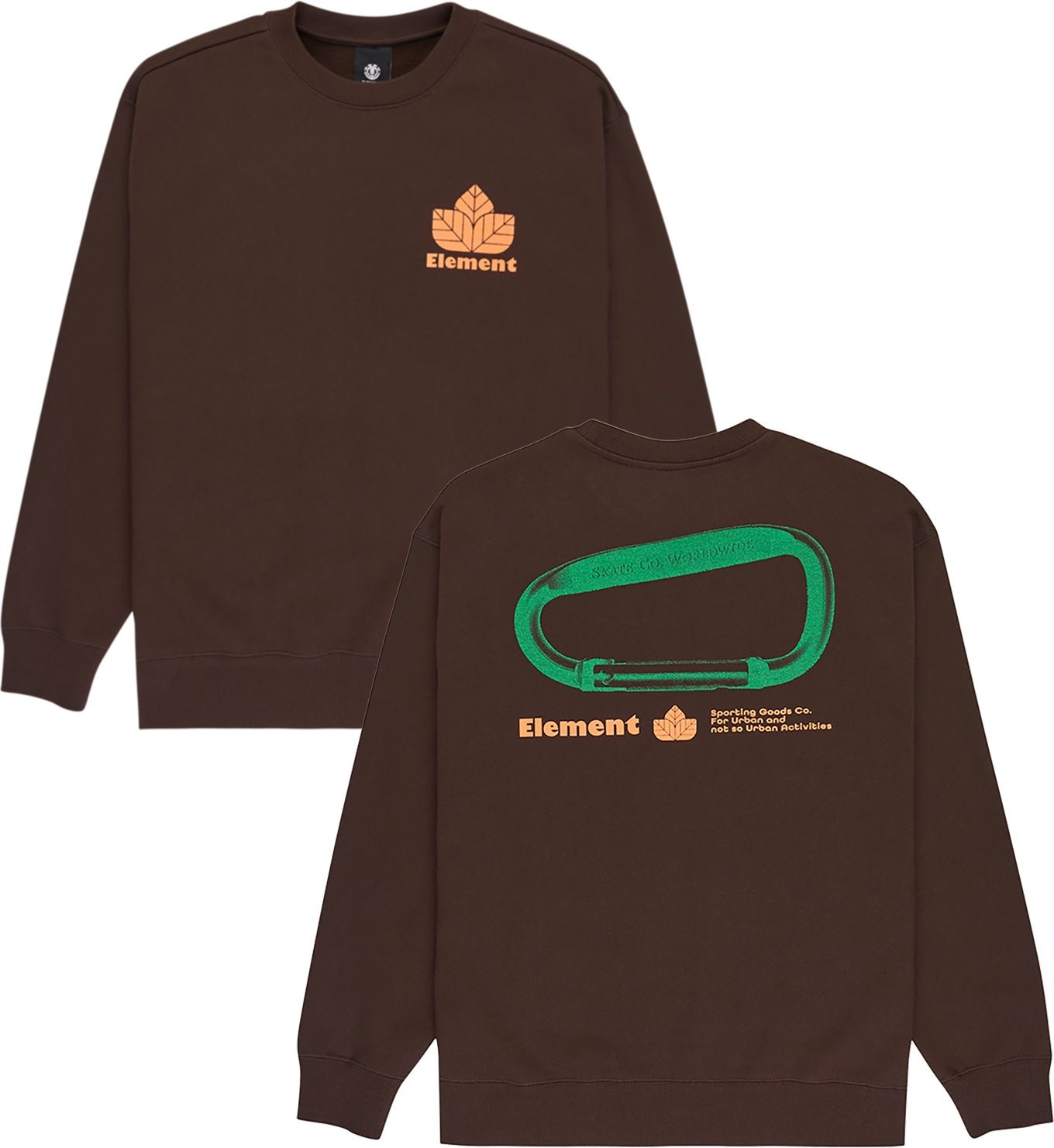 Sweat homme Element Sporting Crew Java en coton et polyester recyclés 400 g/m², coupe standard, doux et durable, avec impressions eau poitrine et dos.