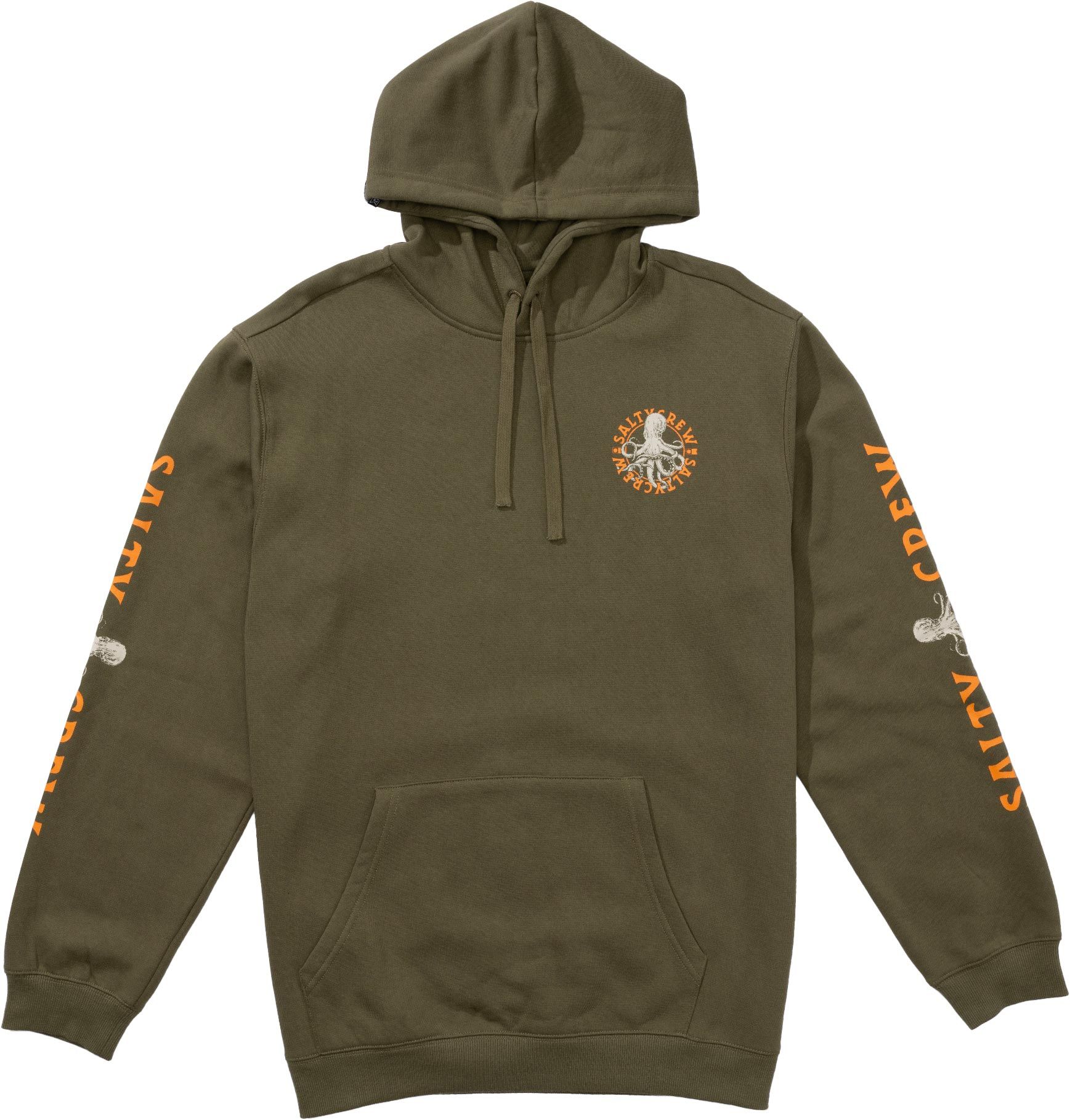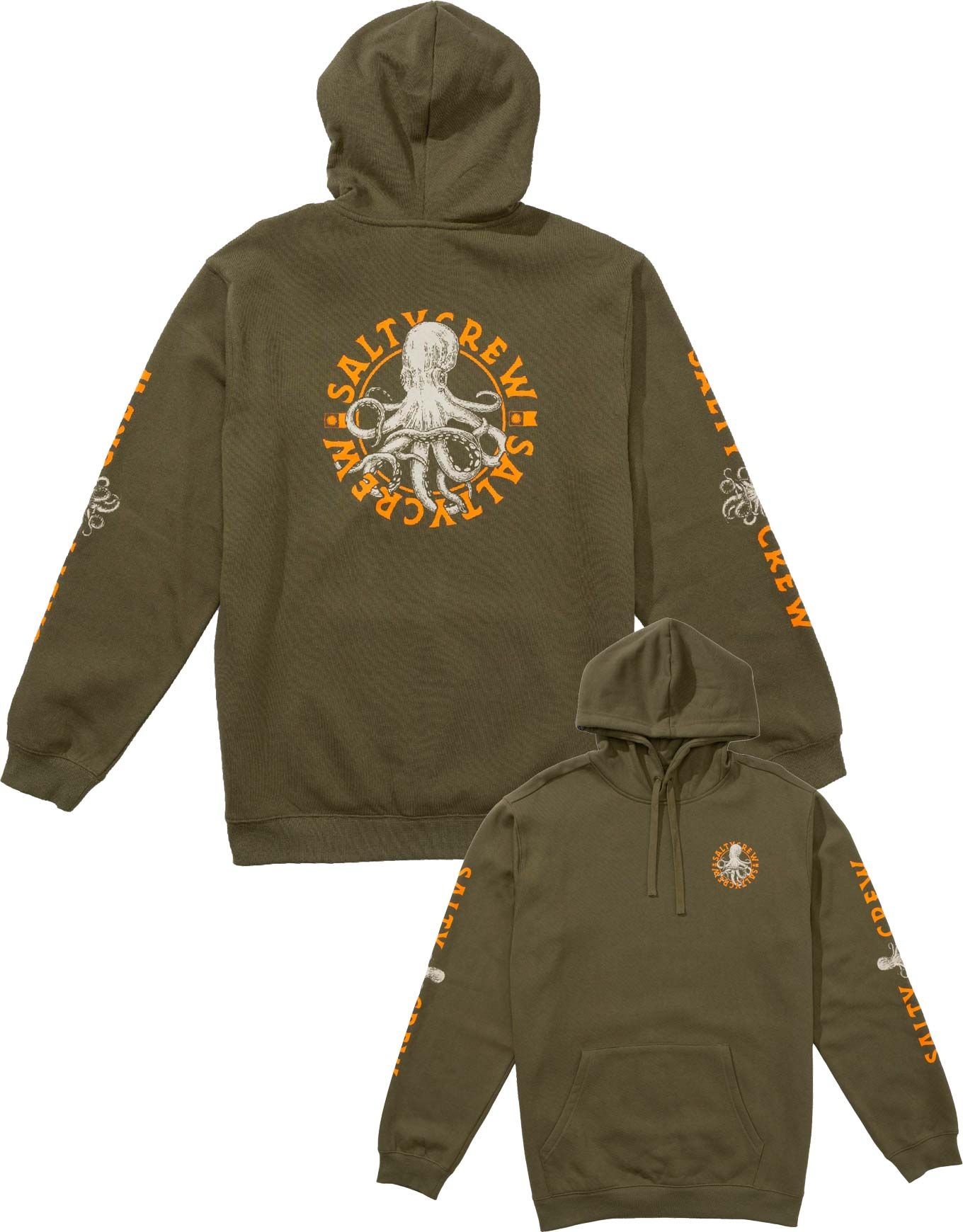 Salty Crew Tentacles Hooded Fleece sweat à capuche homme en coton-polyester, look décontracté urbain avec poche kangourou et imprimés pêche-surf dos-manches.