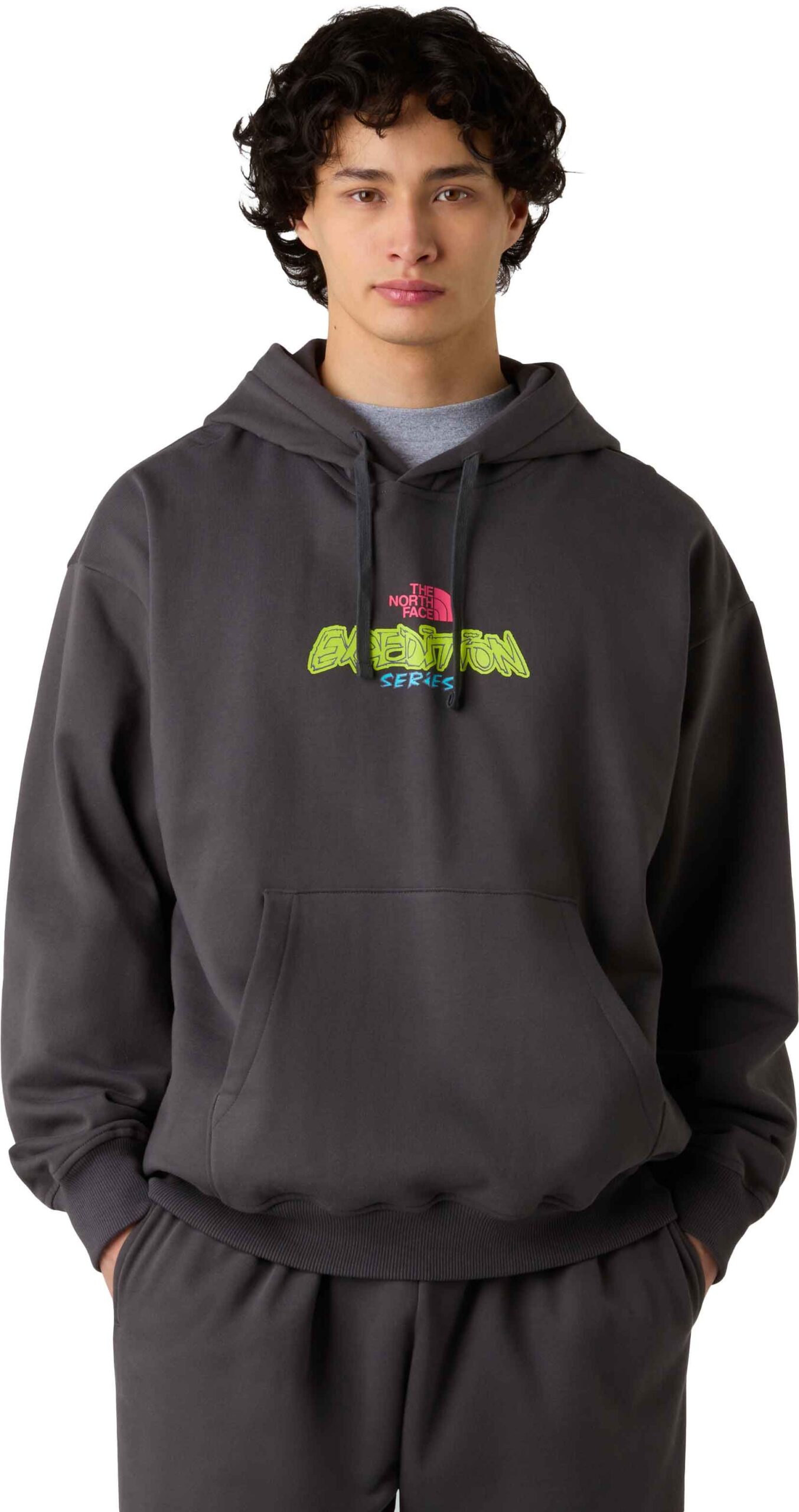 The North Face Expedition Celebration Oversized Hoodie anthracite est un sweat à capuche homme en coton doux et chaud, avec capuche réglable, poche kangourou et coupe oversize pour liberté de mouvement et look tendance.