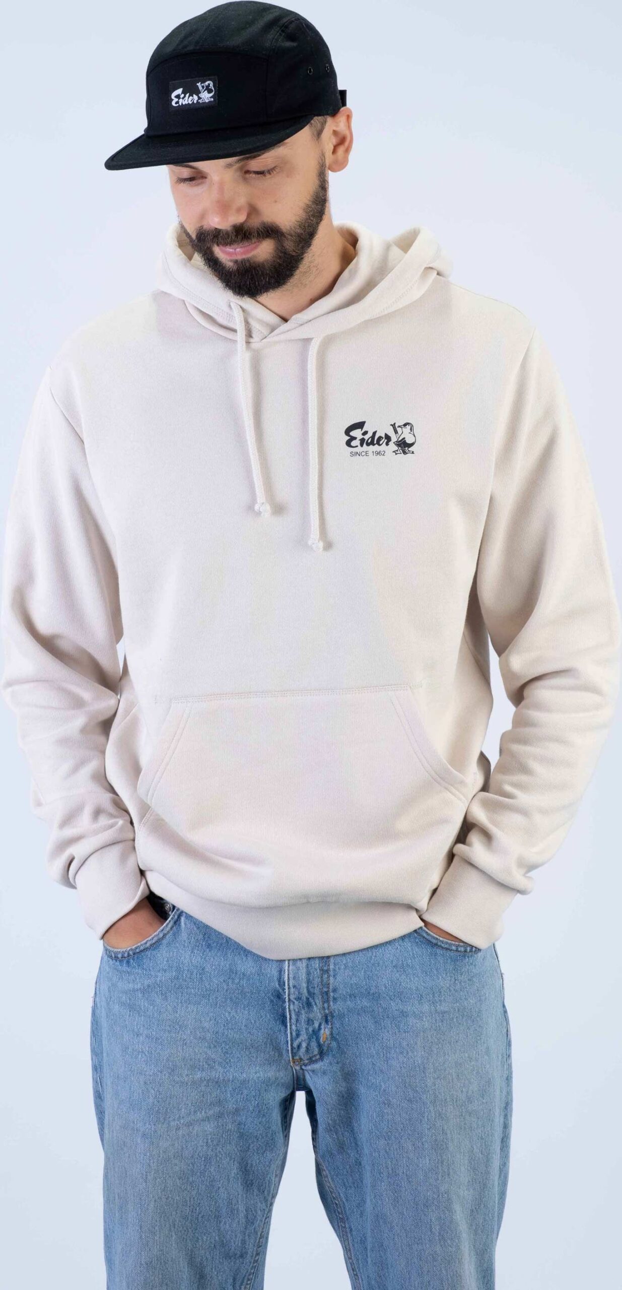 Le Vintage Hoodie Cotton Sand Beige d’EIDER est un sweat unisexe en coton biologique, doux, chaud et confortable, revisité avec le logo historique de la marque pour un look rétro hivernal.