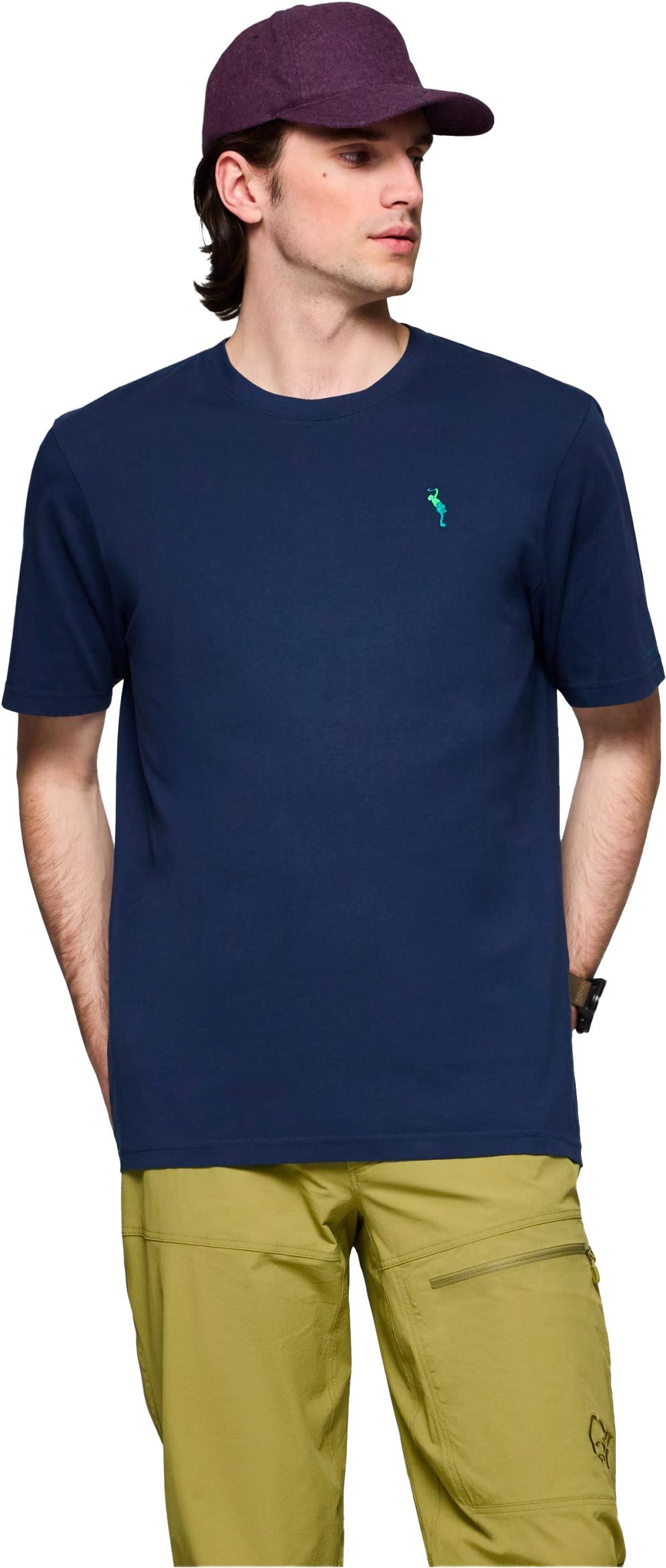Le t-shirt Norrona /29 Cotton Activity Embroidery T-Shirt Indigo Night pour homme allie coton biologique 100%, col rond côtelé et coutures renforcées pour un confort quotidien durable.