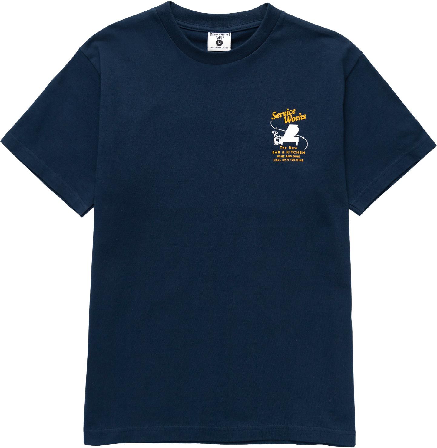 Service Works Bar Kitchen Tee Navy : t-shirt en coton bio GOTS™, confort quotidien et sérigraphie discrète au dos.