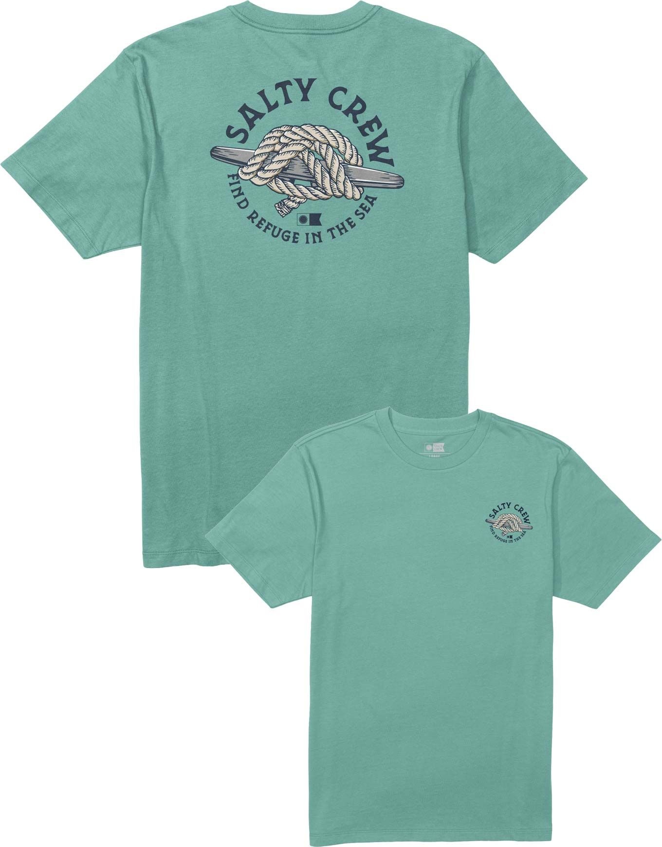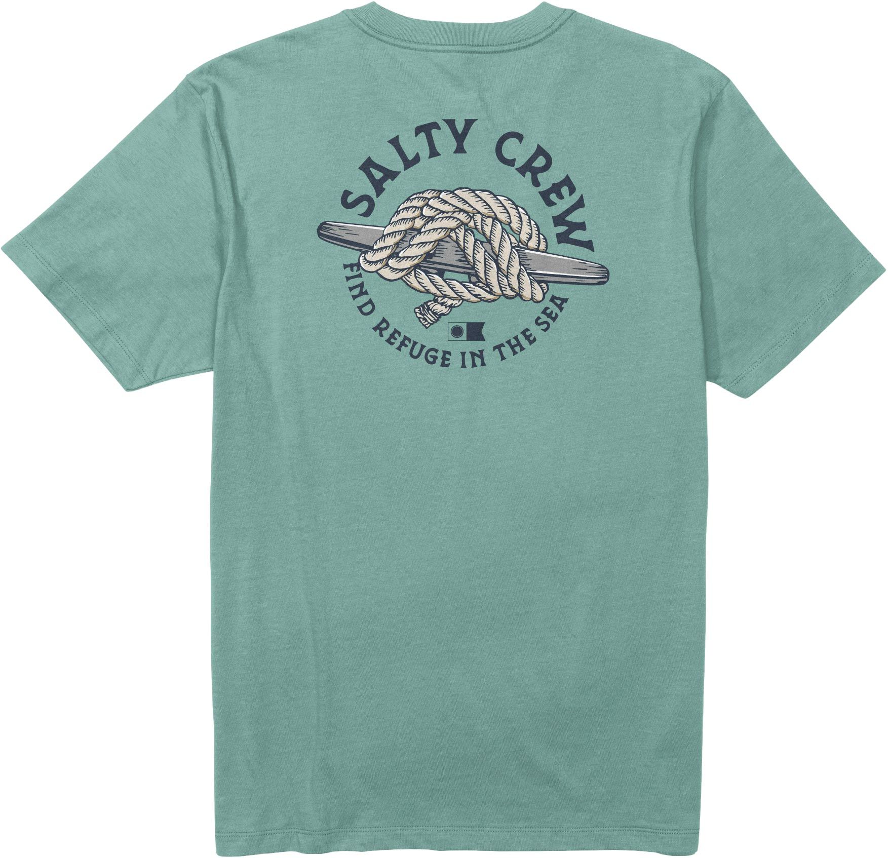 Tee-shirt Salty Crew Cleat Knott Mackerel pour homme, 100 % coton, imprimé marin au dos pour un style décontracté. Conçu pour les watermen et amateurs d’aventure autour de la pêche et du surf.