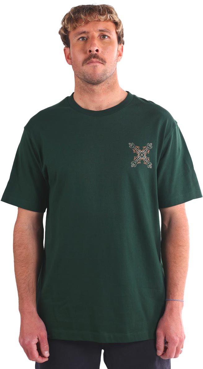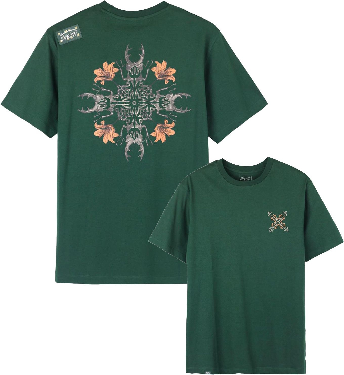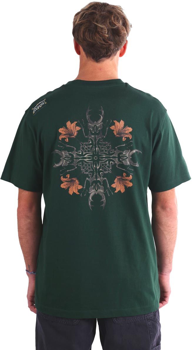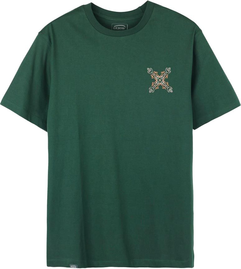 Tee-shirt Oxbow Eternal SS Tee Mountain Green en coton biologique, coupe classique intemporelle, imprimé original dos et logo poitrine pour un look décontracté.