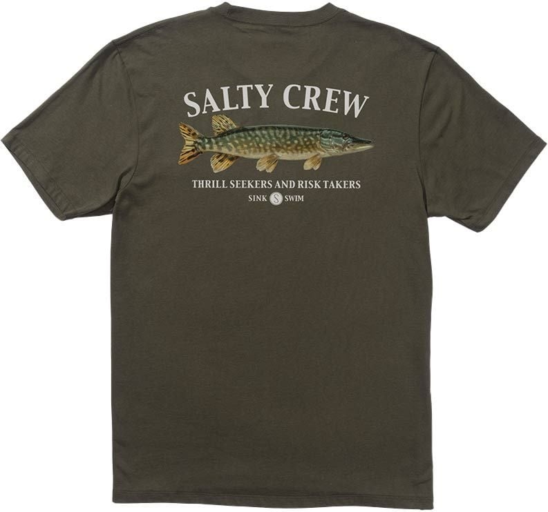 Le tee-shirt Euro Pike Premium S/S Dusty Olive pour homme de la marque Salty Crew arbore un large imprimé au dos avec un rappel à la poitrine. Ce t-shirt tout doux, 100% coton, est conçu pour les explorateurs, ces watermen qui n’hésitent pas à prendre des risques ou à commettre des erreurs car ils n’ont rien à prouver… L’univers de Salty Crew autour de la pêche et du surf satisfera pleinement les amateurs d’aventure et d’espaces sauvages. NB : Des visuels supplémentaires ont été ajoutés afin d’observer les caractéristiques du produit. Ici, le modèle proposé à la vente est kaki. Découvrir les catégories associées T-shirts Vêtements homme