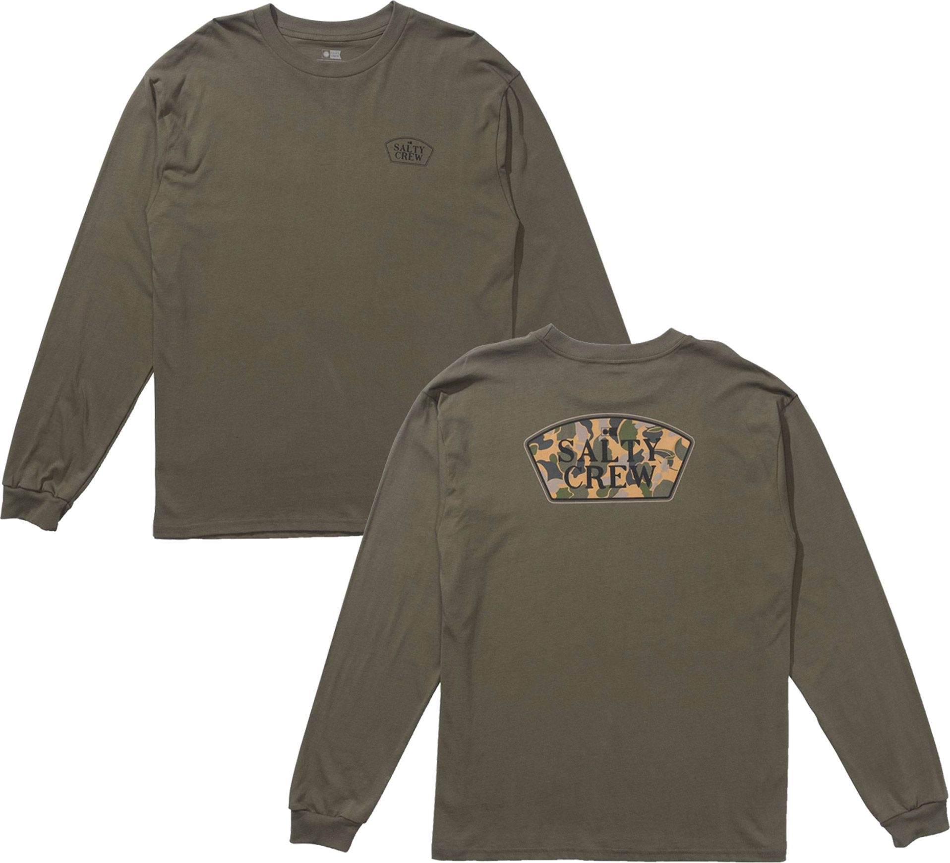Tee-shirt à manches longues Salty Crew Filler Up LS Dusty Olive pour homme, 100% coton, imprimé marque dos et poitrine, pensé pour les watermen pêche et surf.