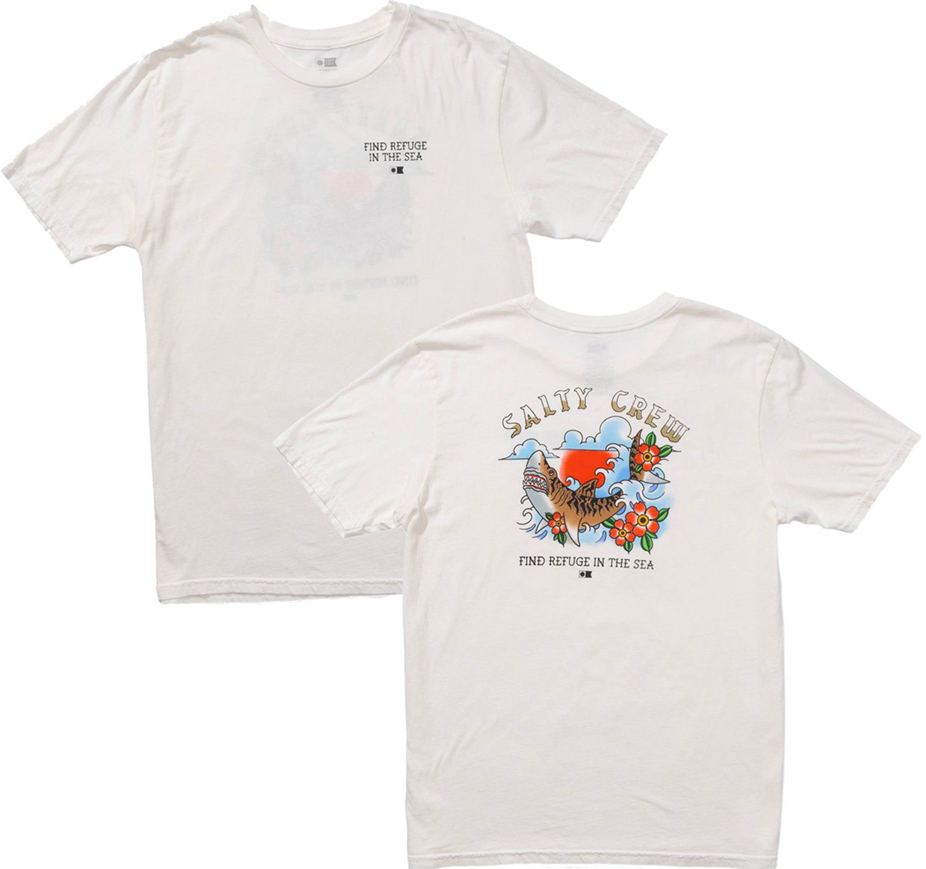 Tee-shirt Salty Crew Hopper Vintage SS Off White pour homme, 100 % coton, imprimé humoristique au dos. Confort doux et esprit aventure pour les watermen et amateurs de pêche et surf.
