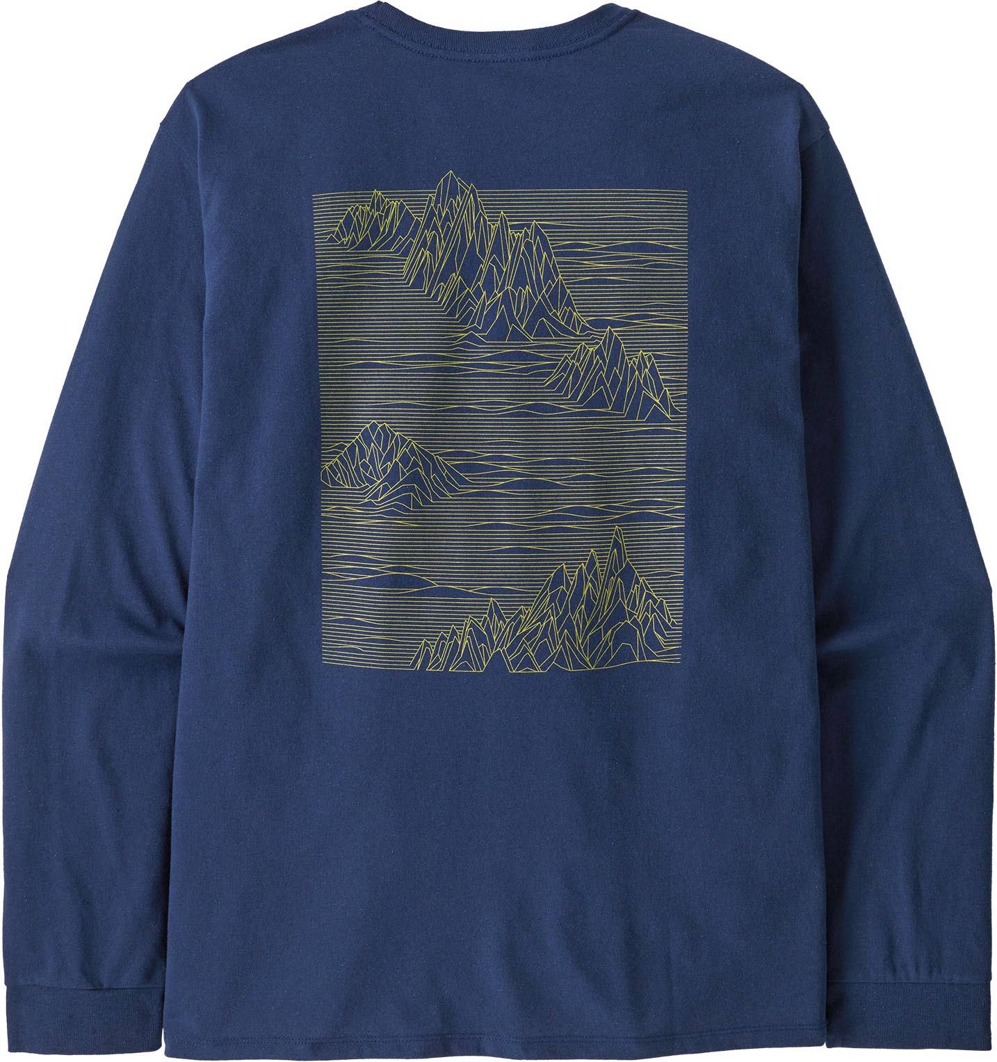 Le L/S Strataspire Responsibili-Tee Clement Blue pour homme de Patagonia est un t-shirt à manches longues en coton et polyester recyclés, réduisant de 96 % la consommation d’eau et de 45 % les émissions de CO₂.