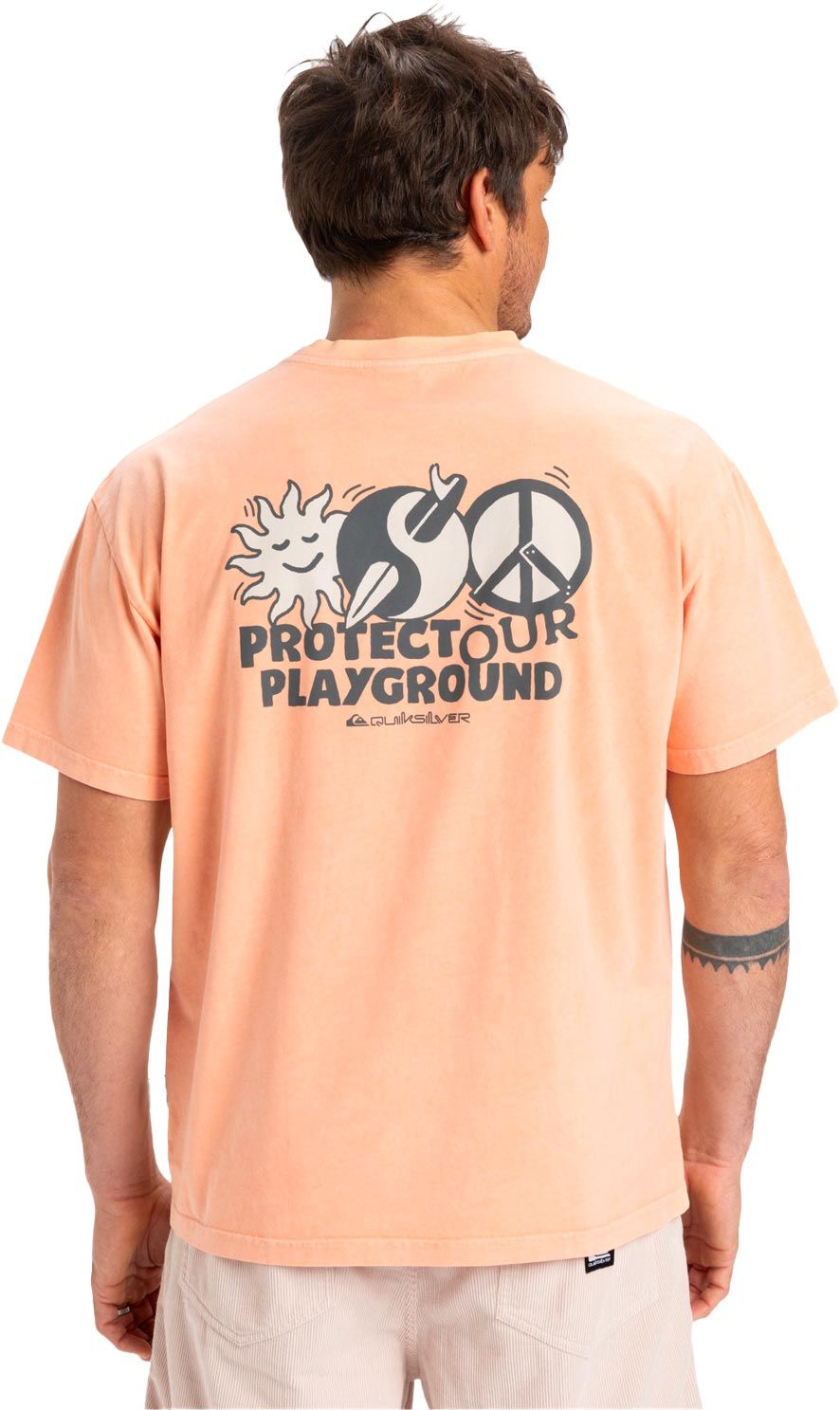 T-shirt Quiksilver Nd Wake Up Worl SS Chamois homme en coton biologique, coupe oversize et sérigraphies originales devant/dos.