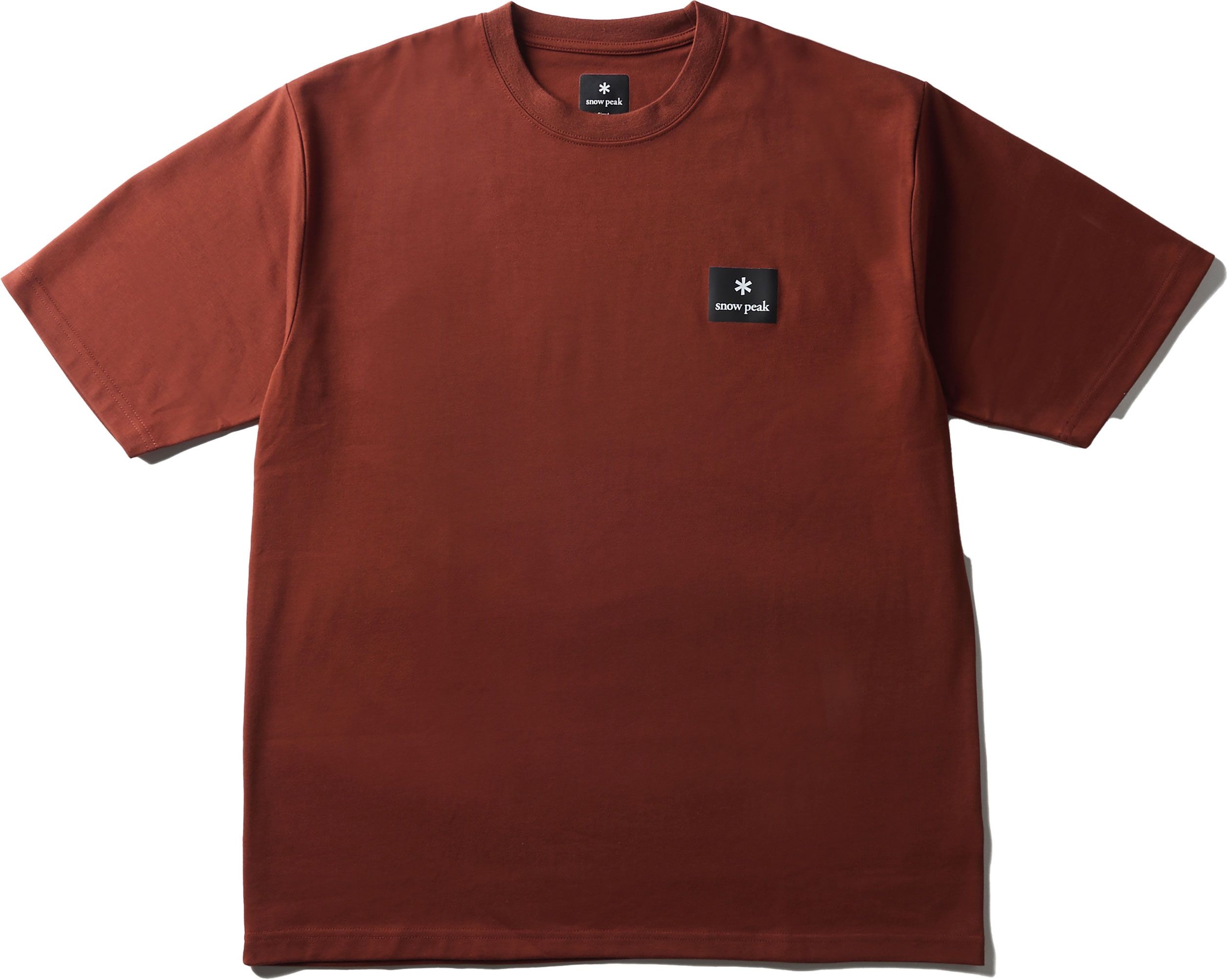T-shirt Snow Peak NSD Square Logo Light Brown en polycoton, coupe unisexe. Design épuré avec écusson poitrine, agréable et respirant pour style urbain actif.