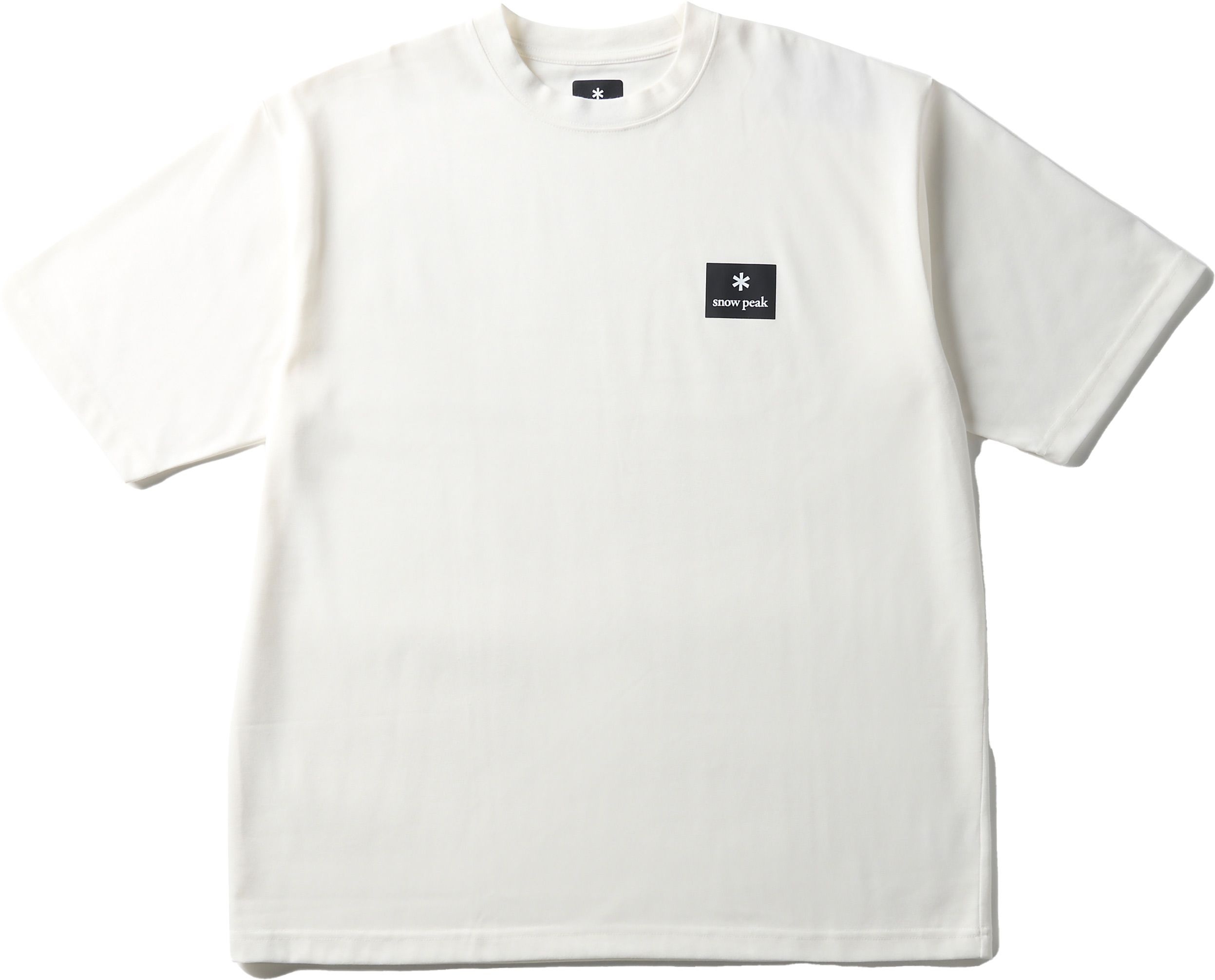 T-shirt Snow Peak NSD Square Logo Off White, manches courtes unisexe en polycoton, respirant et agréable. Design épuré avec écusson discret, alliant style urbain et bien-être au quotidien.