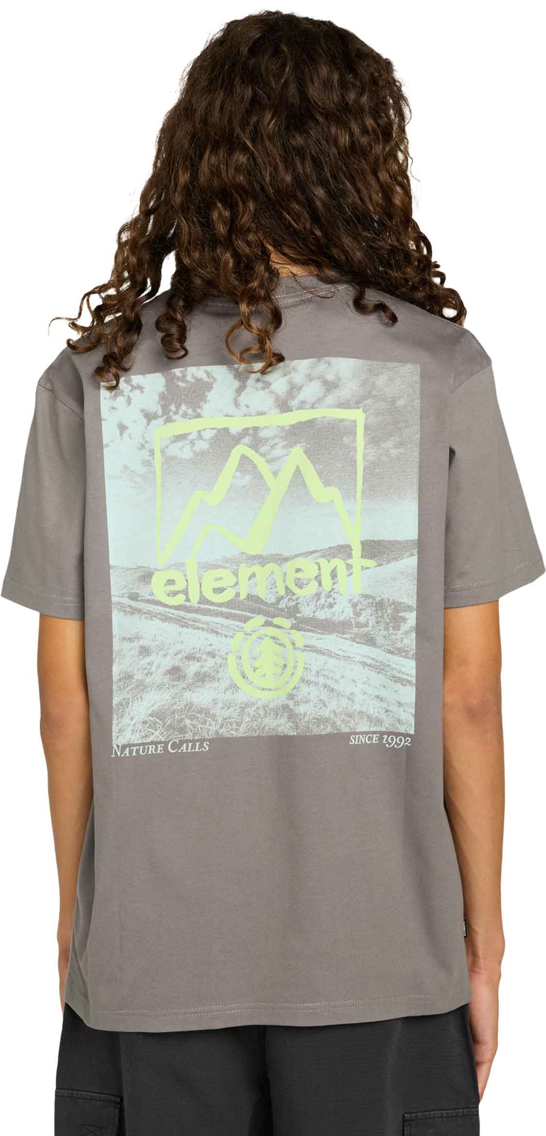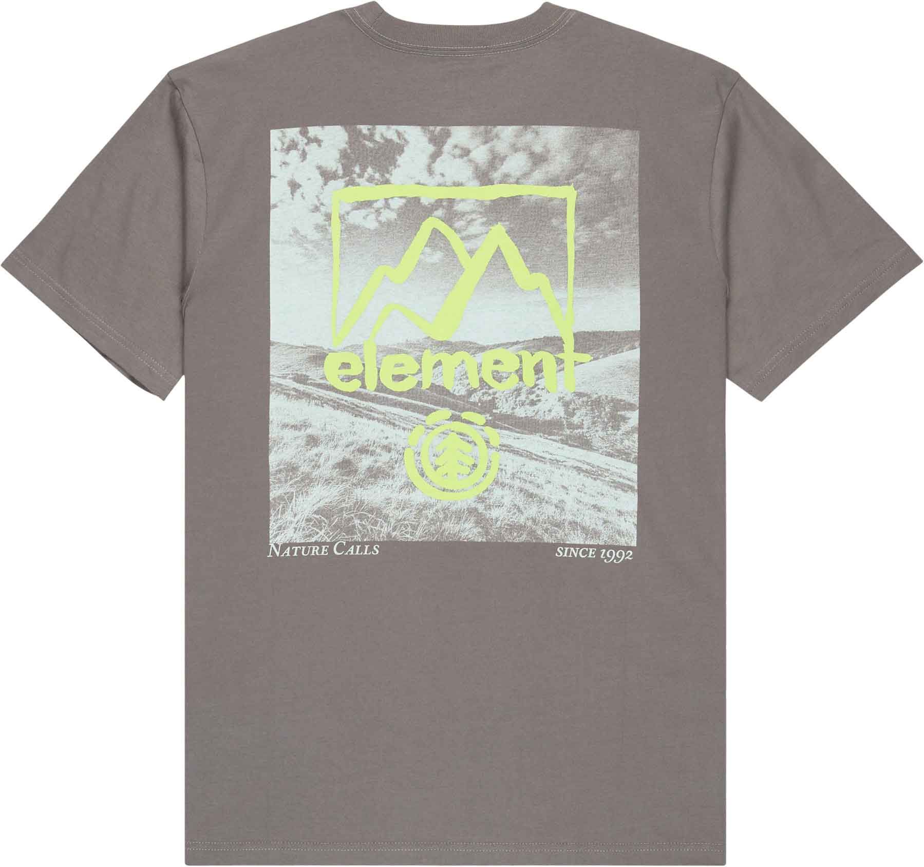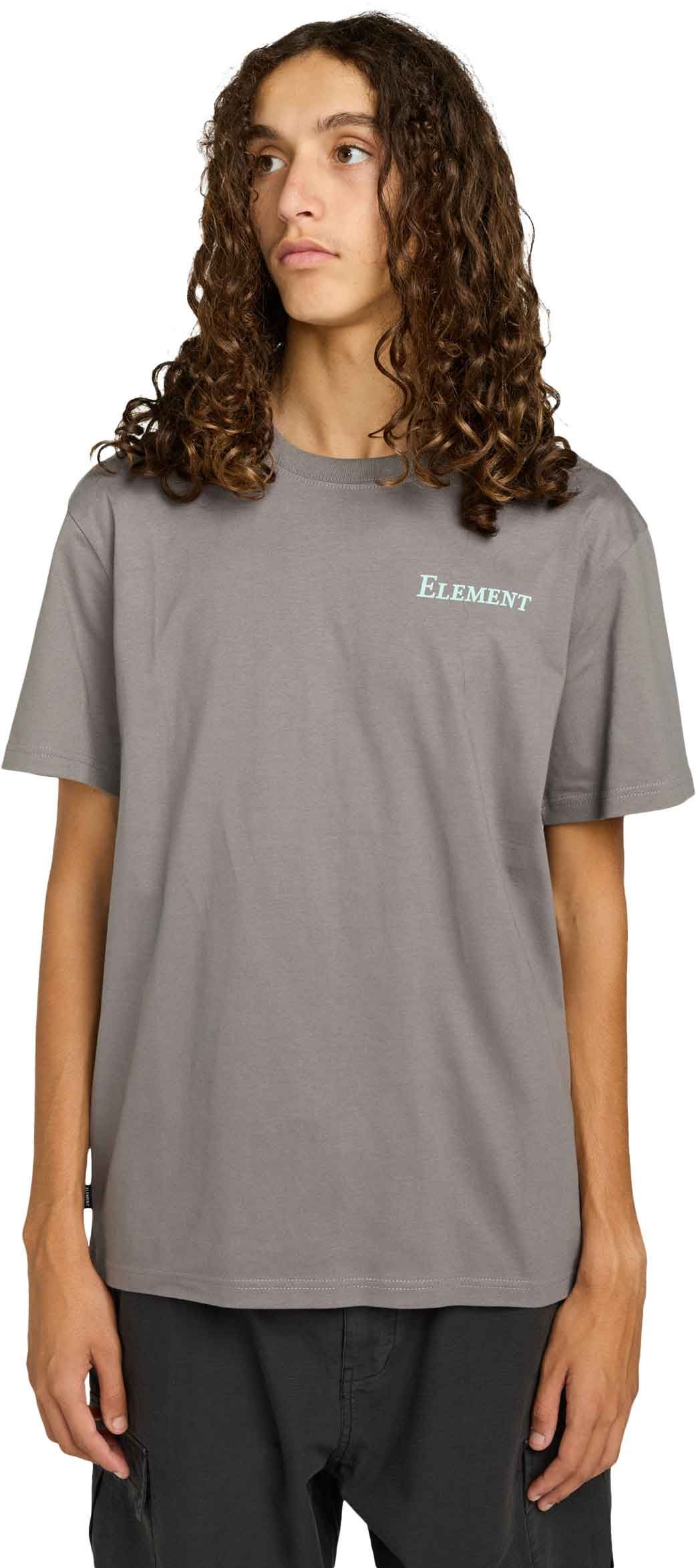Tee-shirt Element Open Hills SS Gargoyle homme en coton biologique, coupe classique, col côtelé et coutures épaules renforcées ; grand imprimé dos eco-encre.