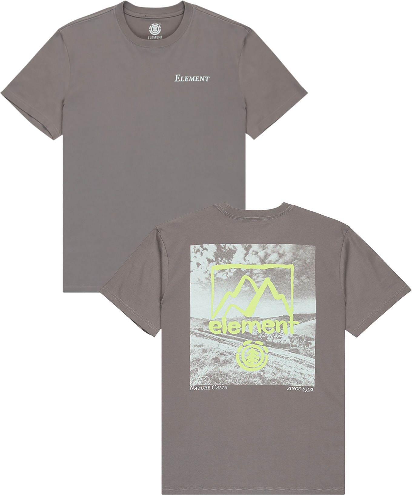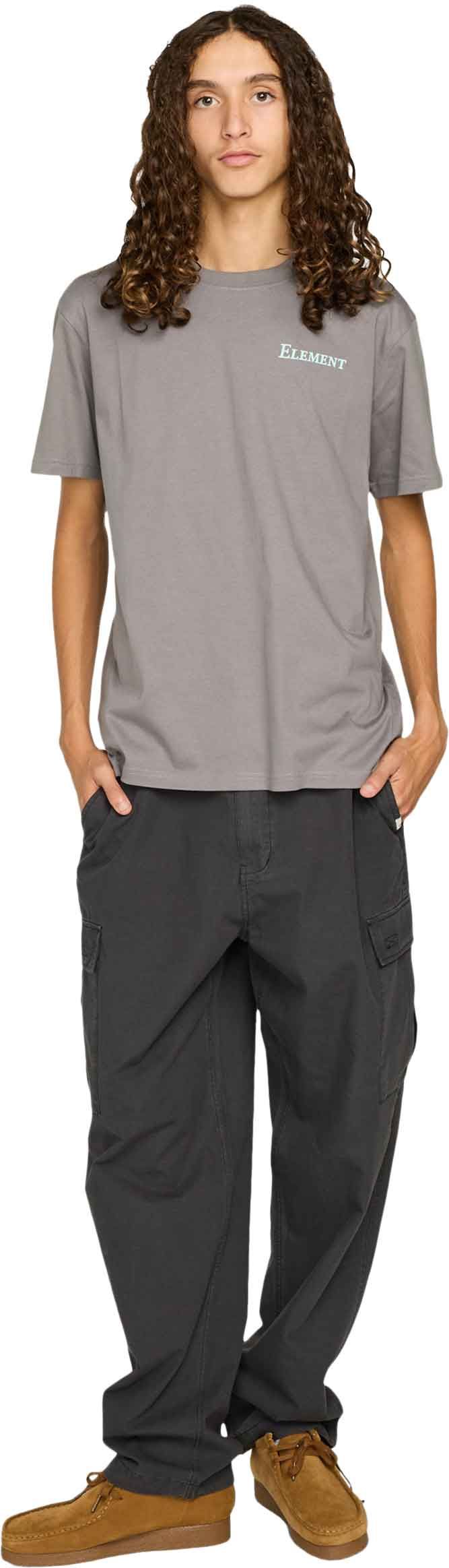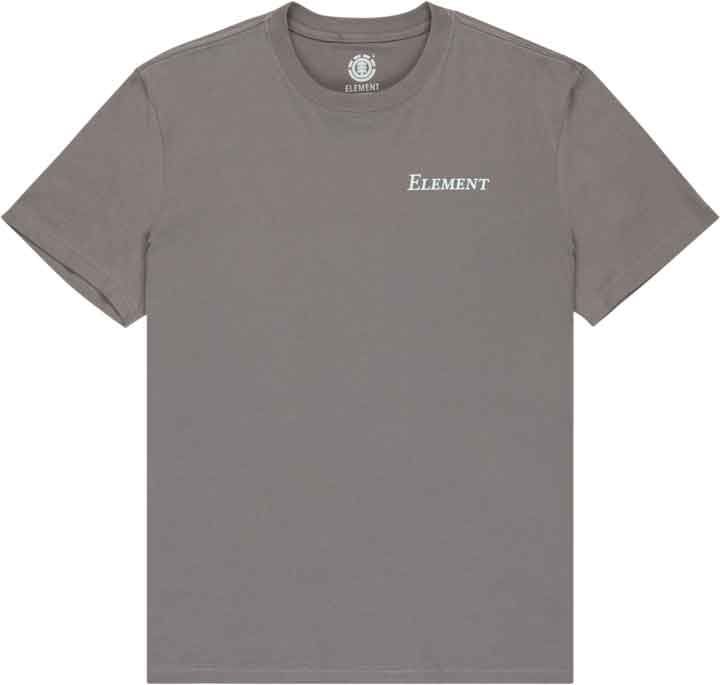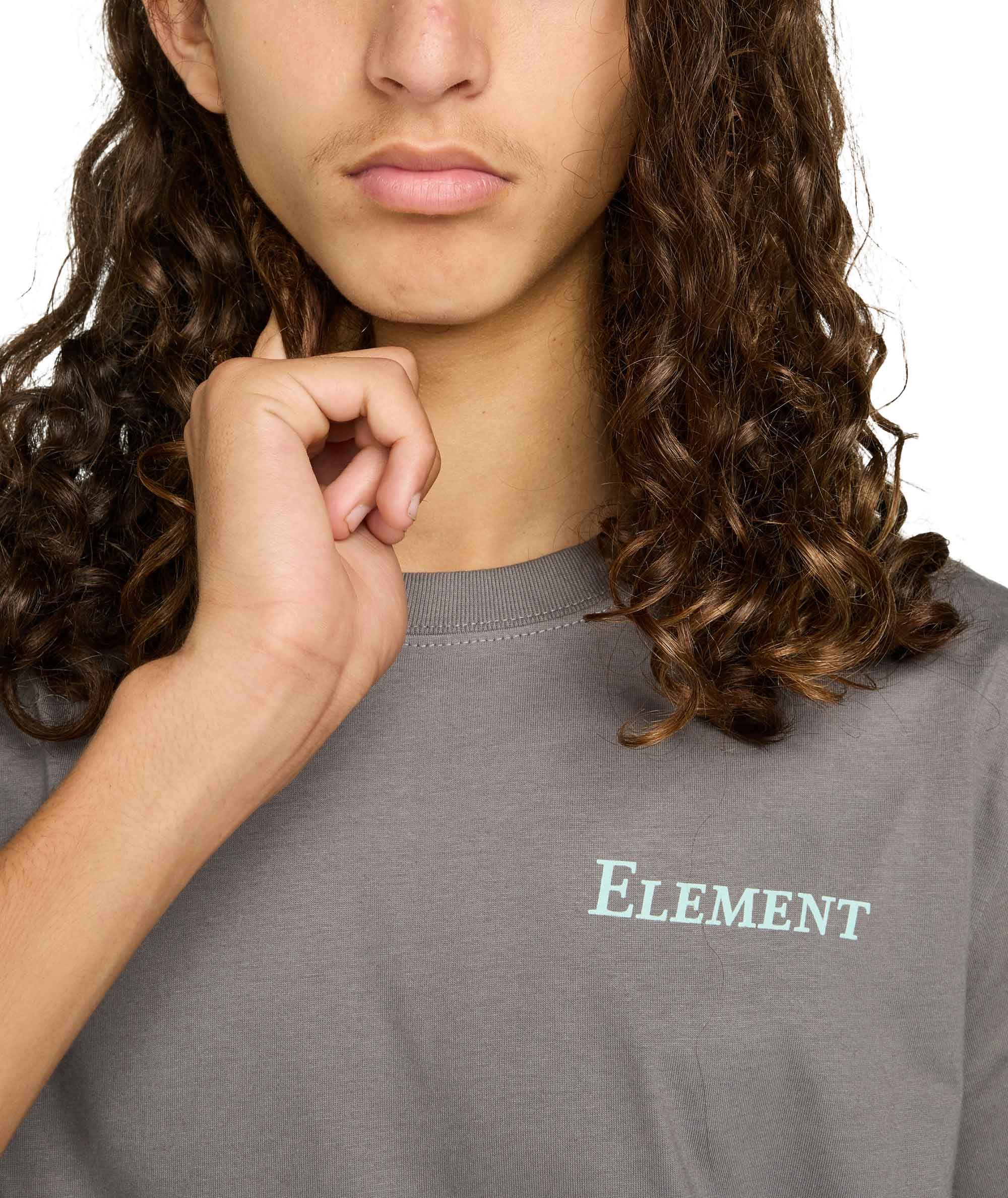 Tee-shirt Element Open Hills SS Gargoyle homme en coton biologique, coupe classique, col côtelé et coutures épaules renforcées ; grand imprimé dos eco-encre.