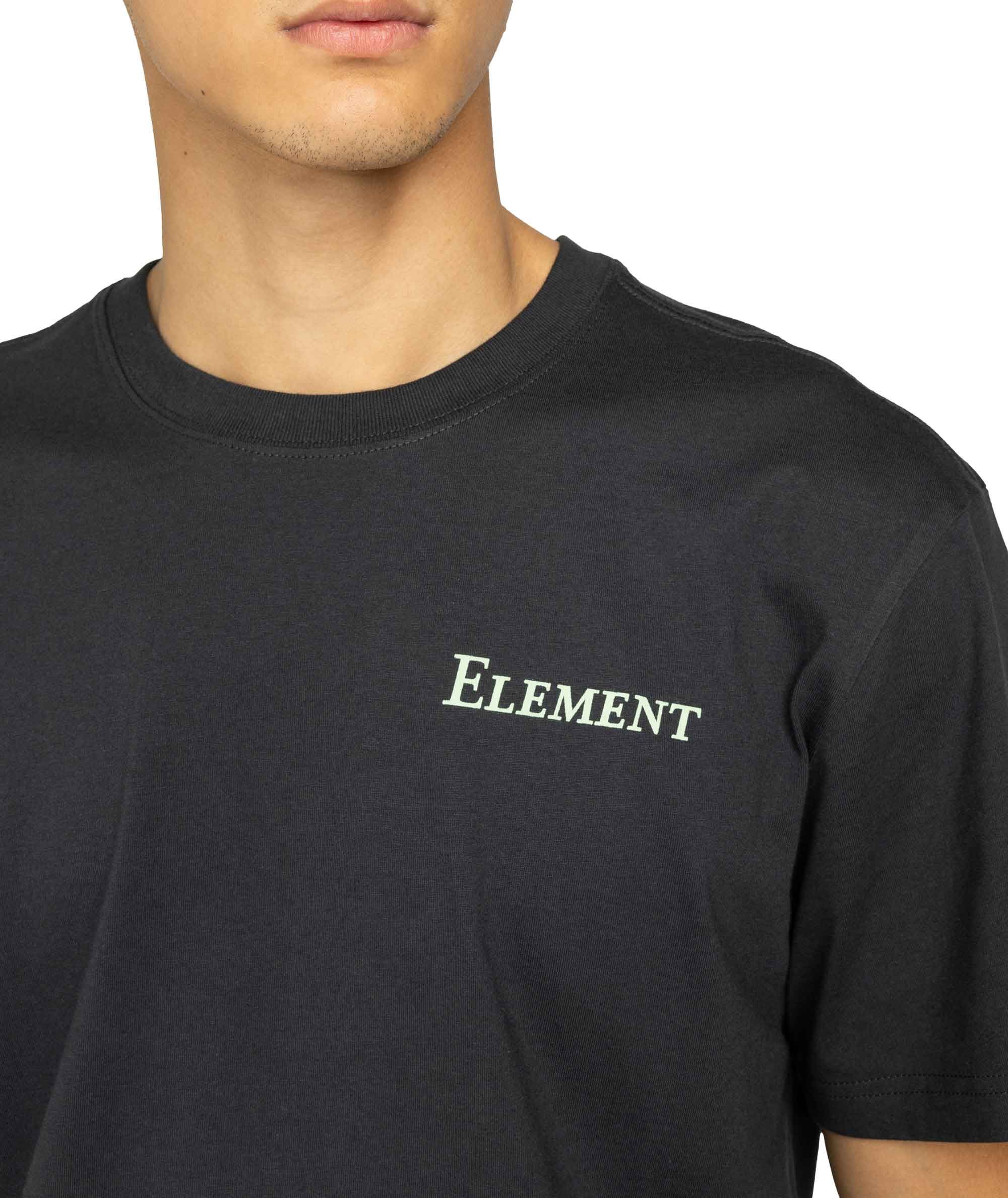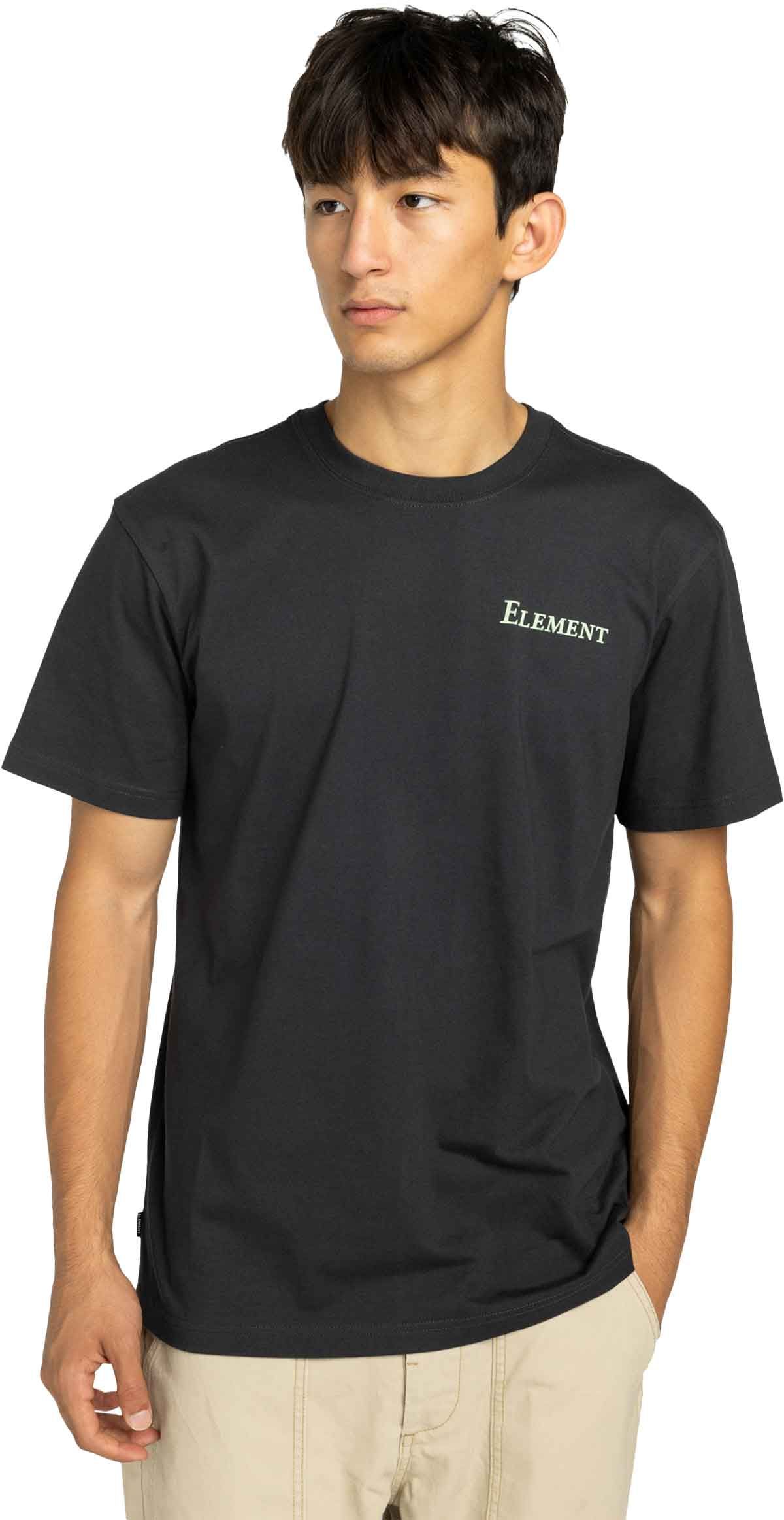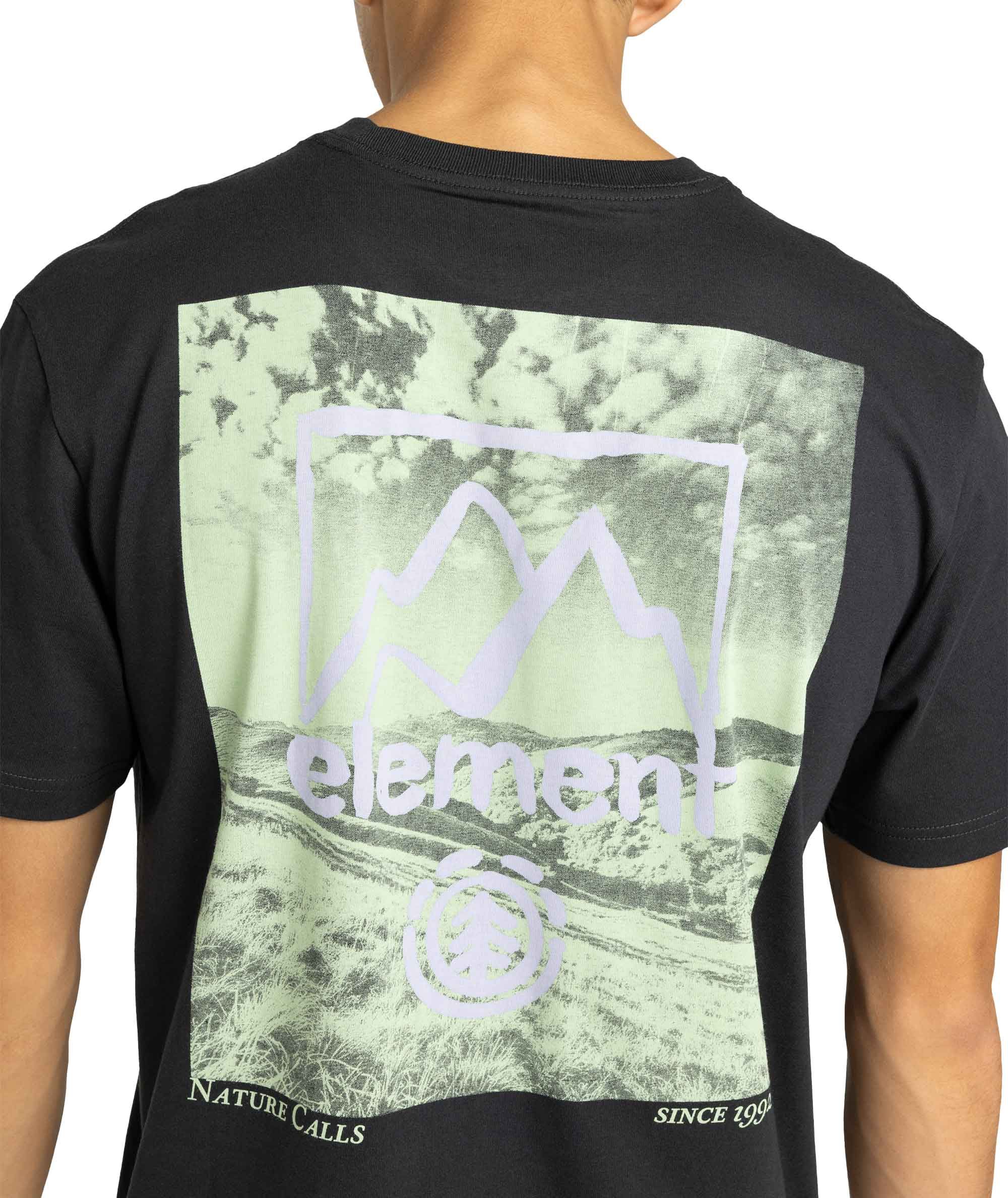 Tee-shirt Element Open Hills SS Off Black homme en coton bio, coupe classique, imprimé dos encre eau, col côtelé et coutures épaules renforcées pour un style décontracté au quotidien.