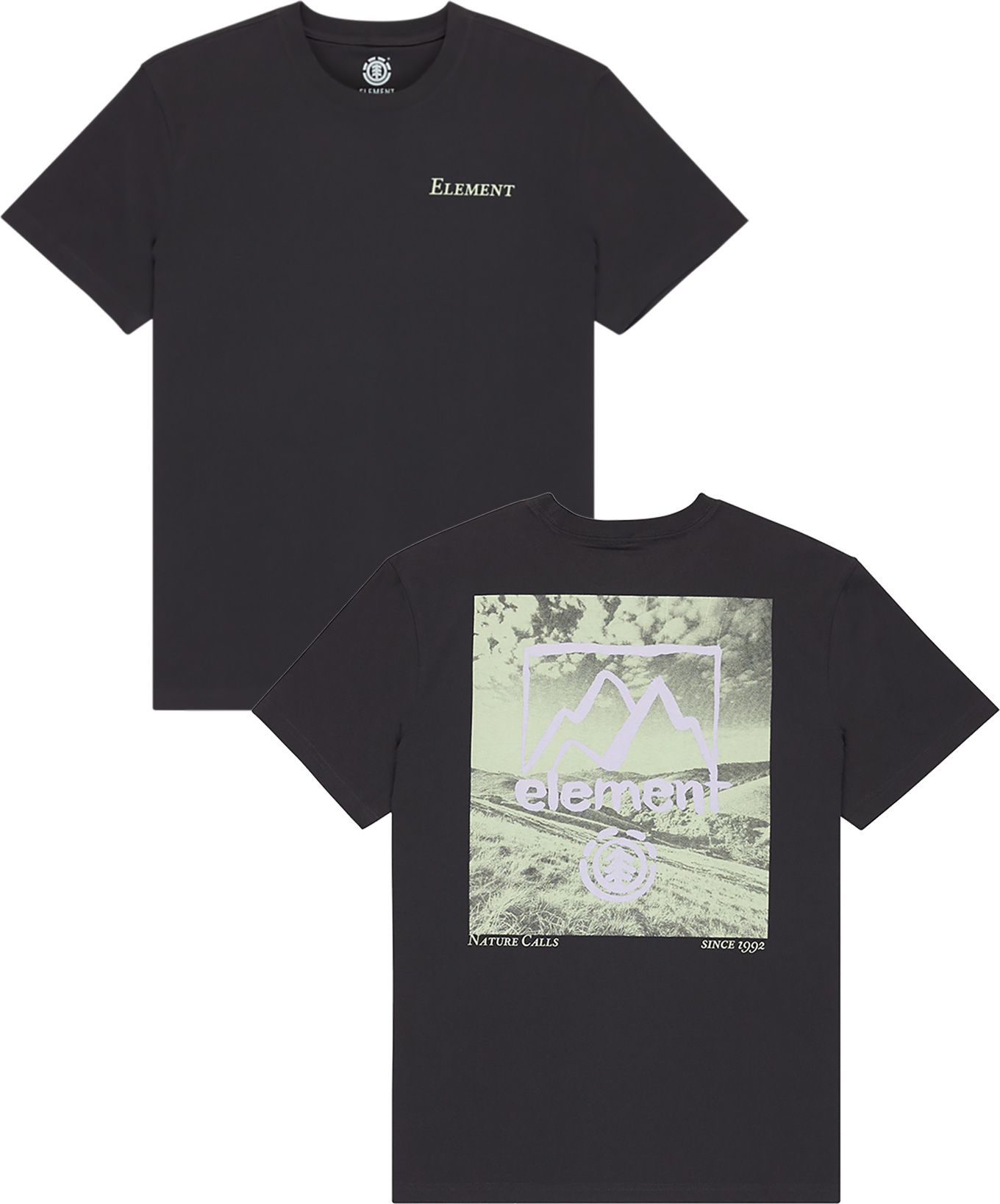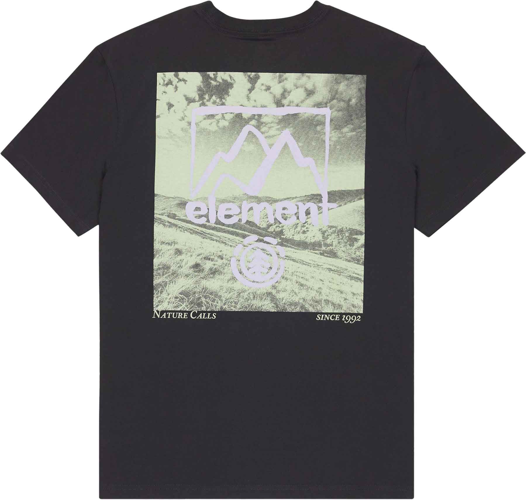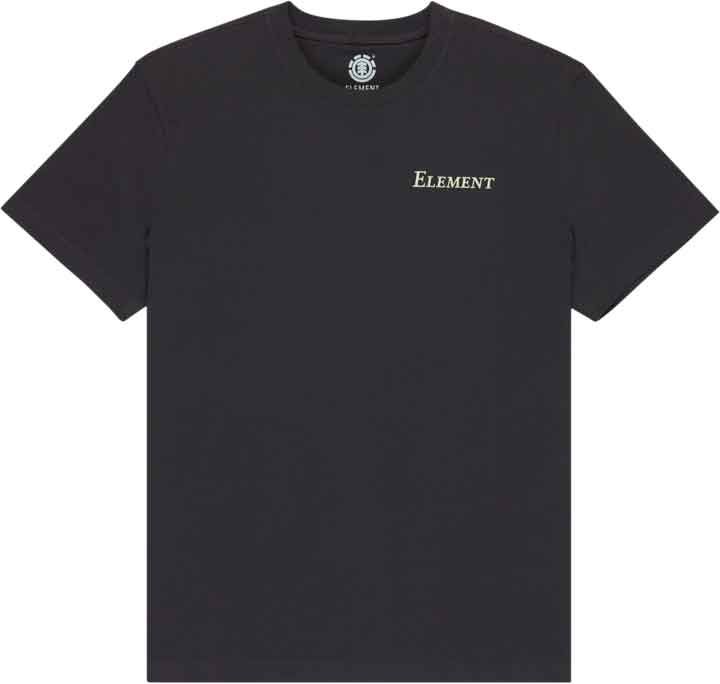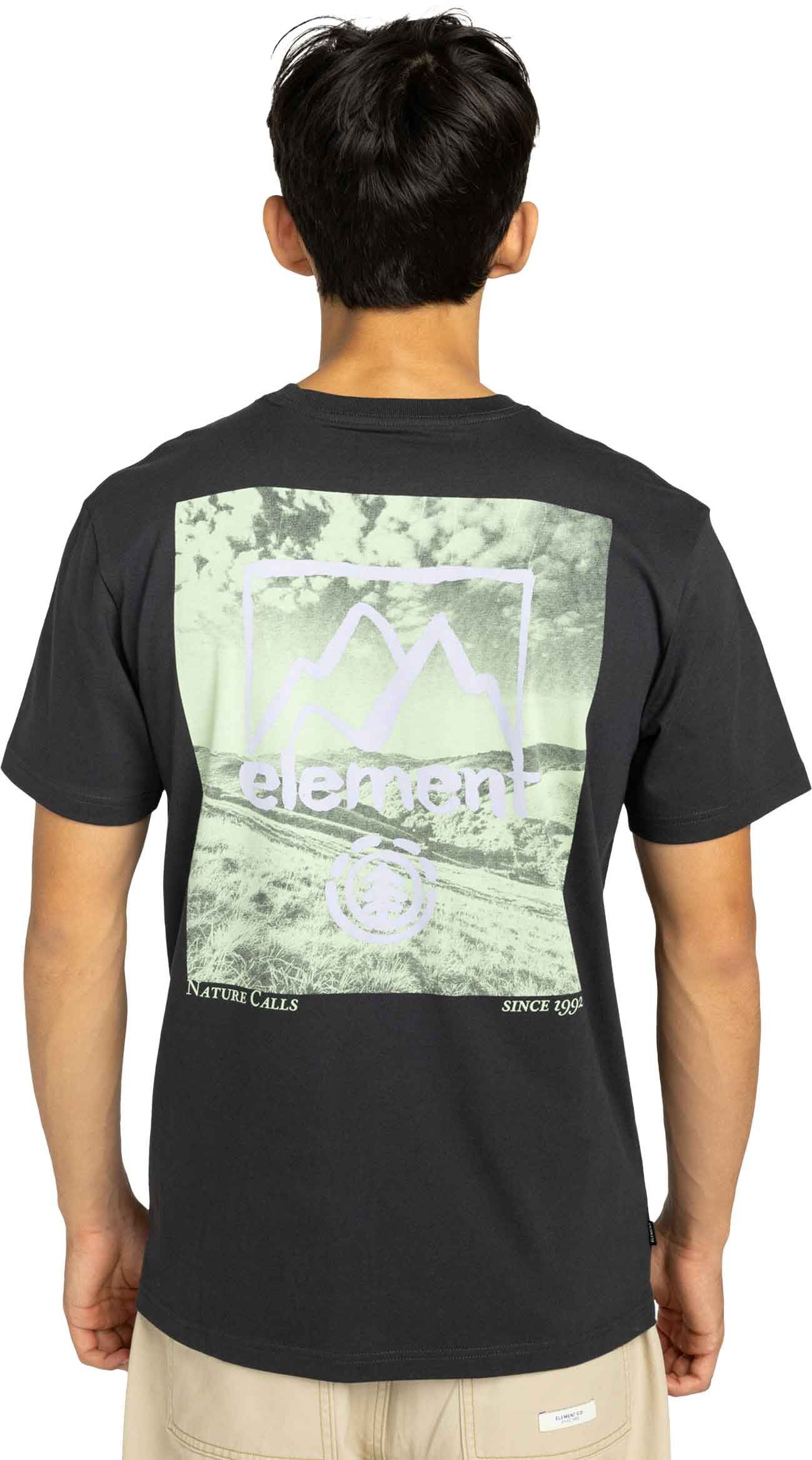 Tee-shirt Element Open Hills SS Off Black homme en coton bio, coupe classique, imprimé dos encre eau, col côtelé et coutures épaules renforcées pour un style décontracté au quotidien.