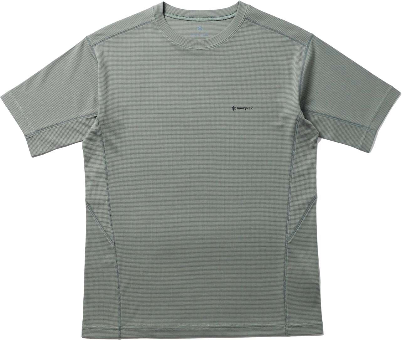 Snow Peak Pe Power Dry T-Shirt Grey : t-shirt été en tissu Polartec Power Dry, séchage rapide, antibactérien menthe poivrée, liberté de mouvement et visibilité nocturne pour rando et running.