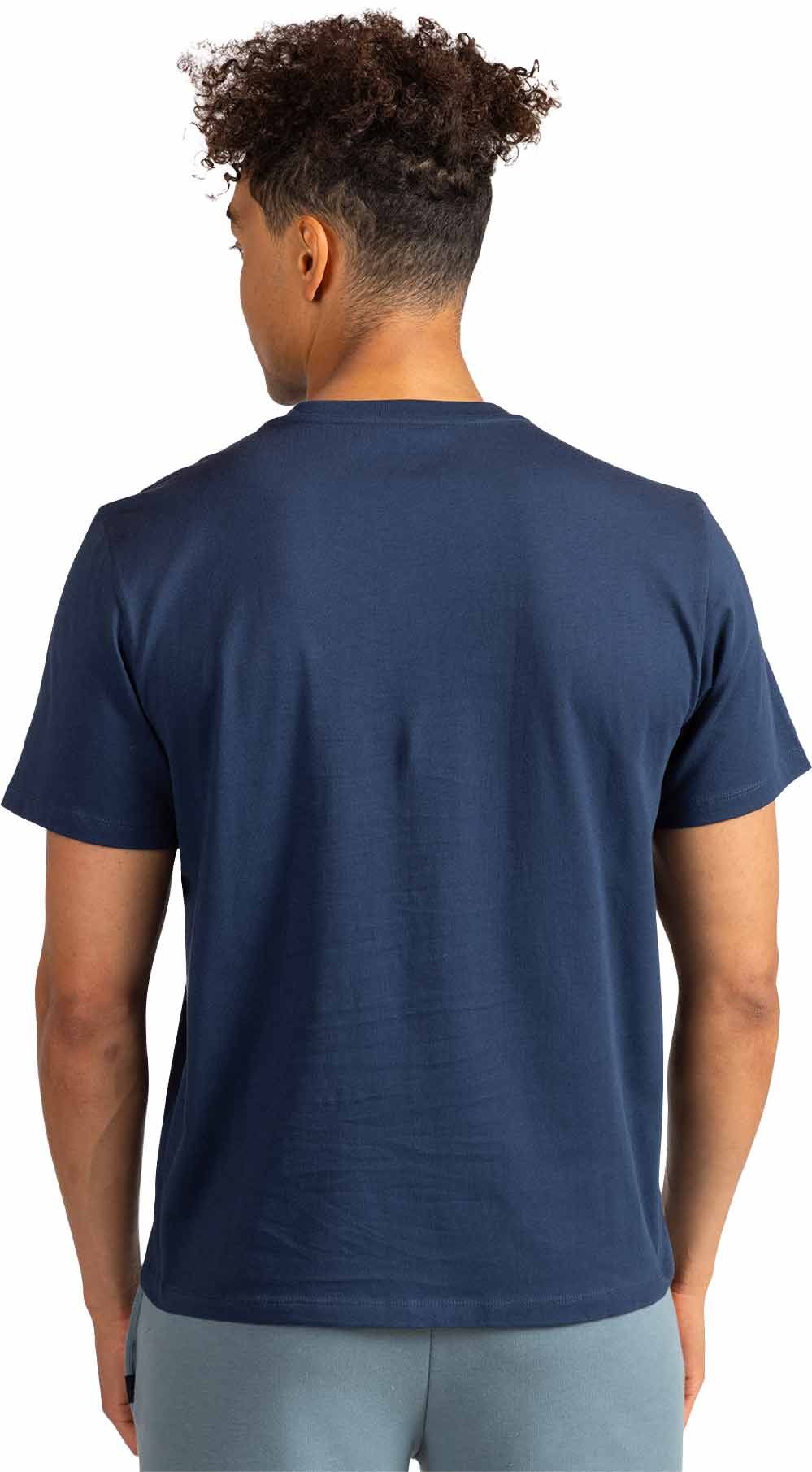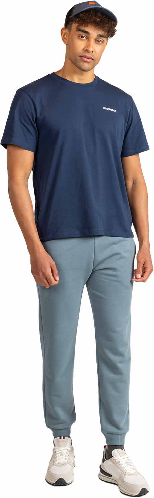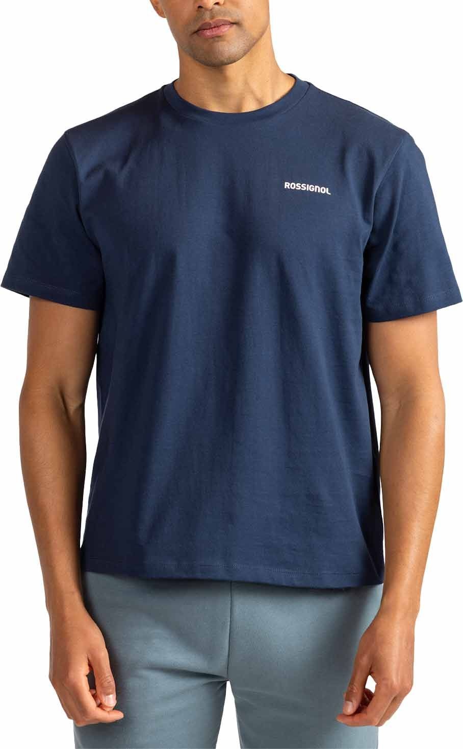 Tee-shirt Rossignol Presset Tee Dark Navy pour homme en coton biologique ultra-doux, coupe classique offrant liberté de mouvement et confort quotidien. Logo alpin authentique, esprit montagne en ville.