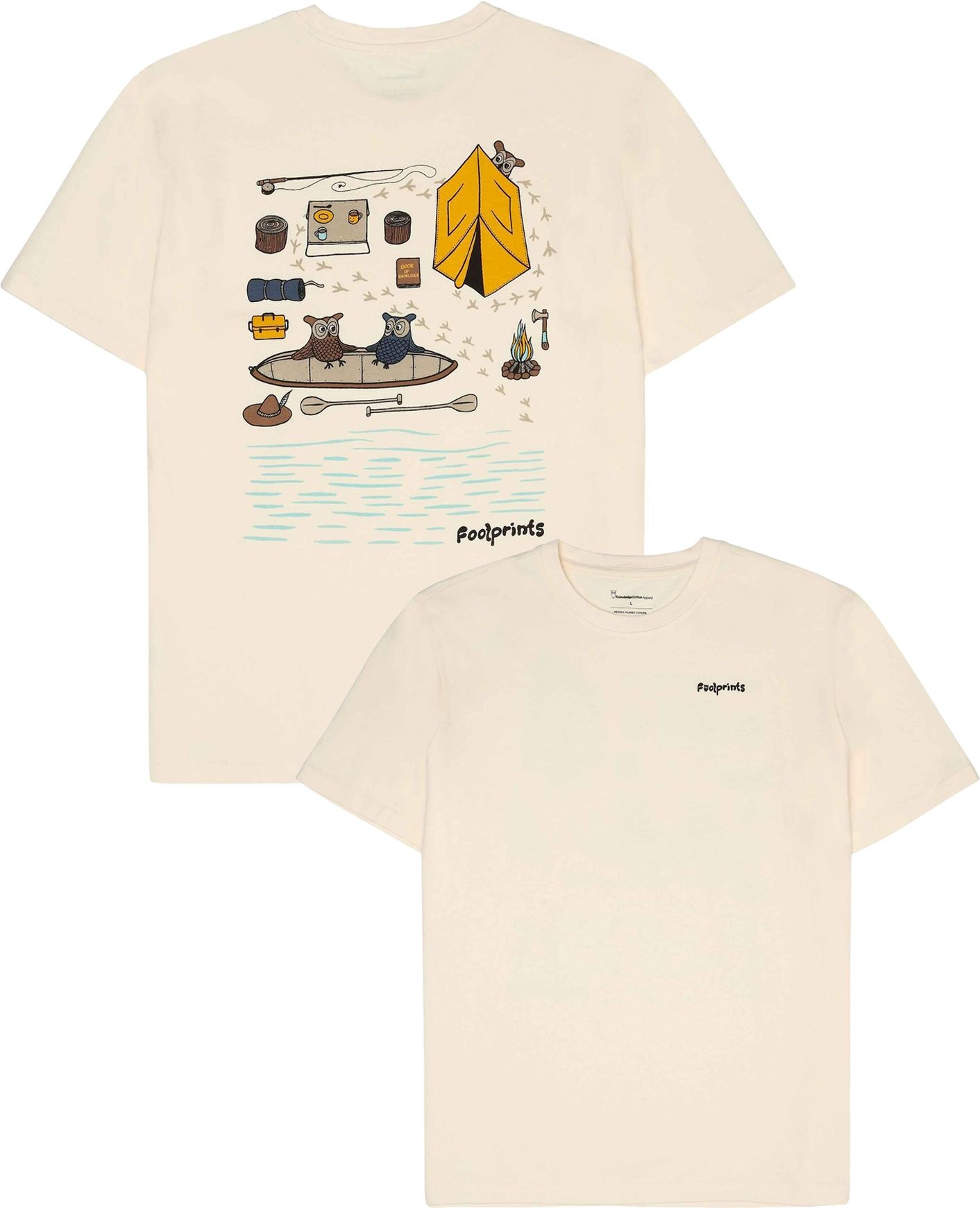 T-shirt Regular Short Sleeve Heavy Single Jersey Printed Tee Egret KnowledgeCotton Apparel pour homme, en jersey de coton biologique certifié, avec imprimé dos original, confort quotidien.