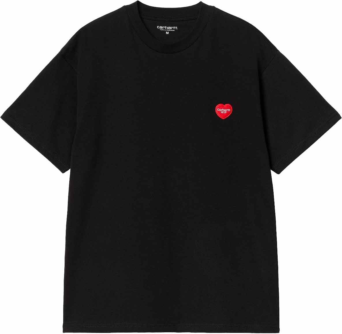 Carhartt WIP S/S Heart II Hartt T-shirt Black : coton noir à coeur brodé, coupe décontractée homme, s’accorde avec chino ou jean.