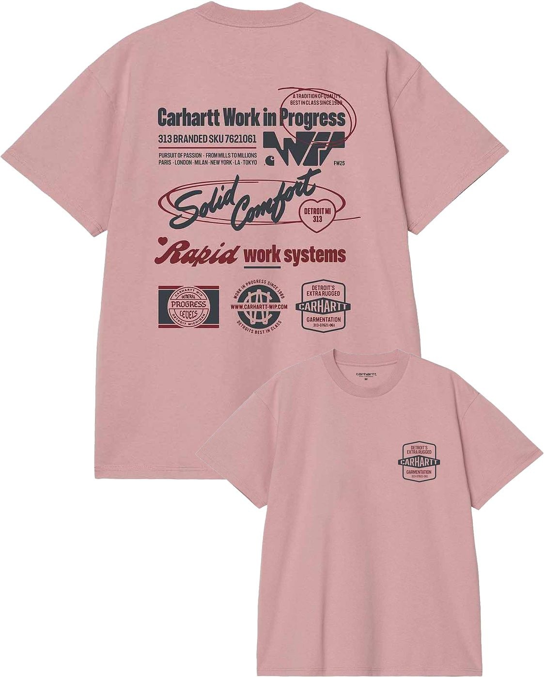 Le t-shirt Carhartt WIP S/S Networks Glassy Pink en coton biologique affiche une coupe décontractée, un imprimé graphique et s’accorde facilement avec chino ou jean pour un style quotidien.