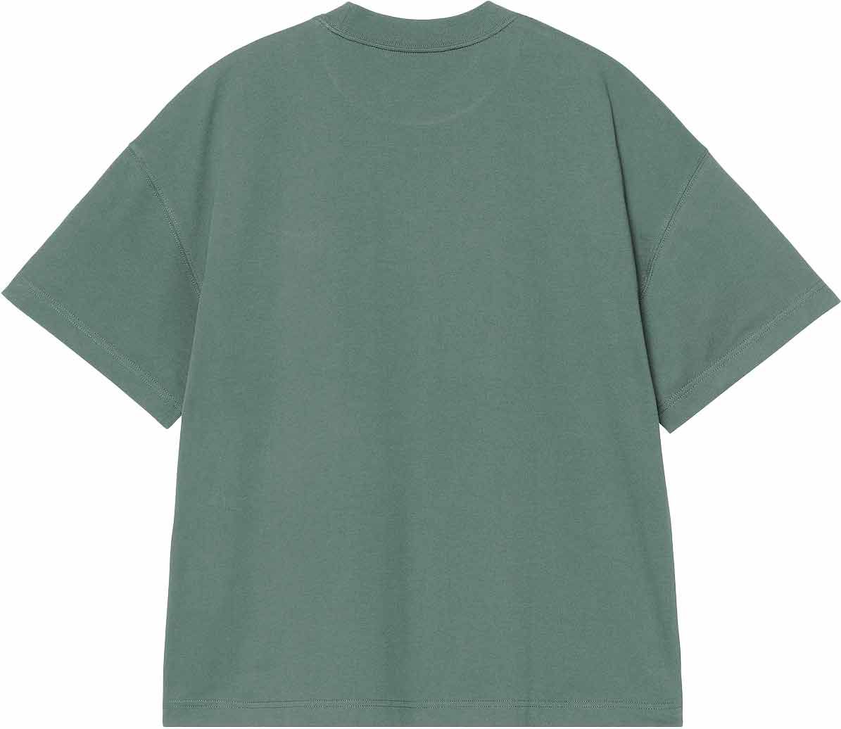 Carhartt WIP S/S Signature Script T-Shirt Silver Pine Jupiter, unisexe, coton, broderie poitrine, coupe droite, associable chino ou short jean.