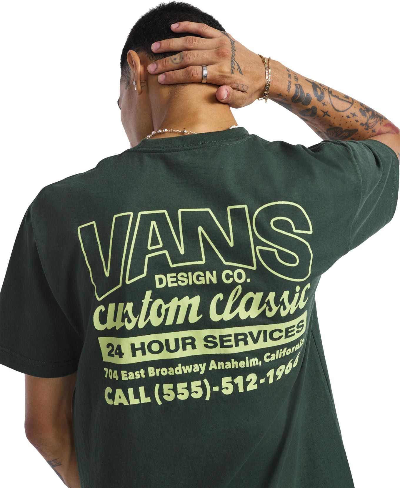 T-shirt Vans Shop Front SS Dried Kelp homme en 100 % coton, coupe classique col rond, doux et confortable au quotidien.