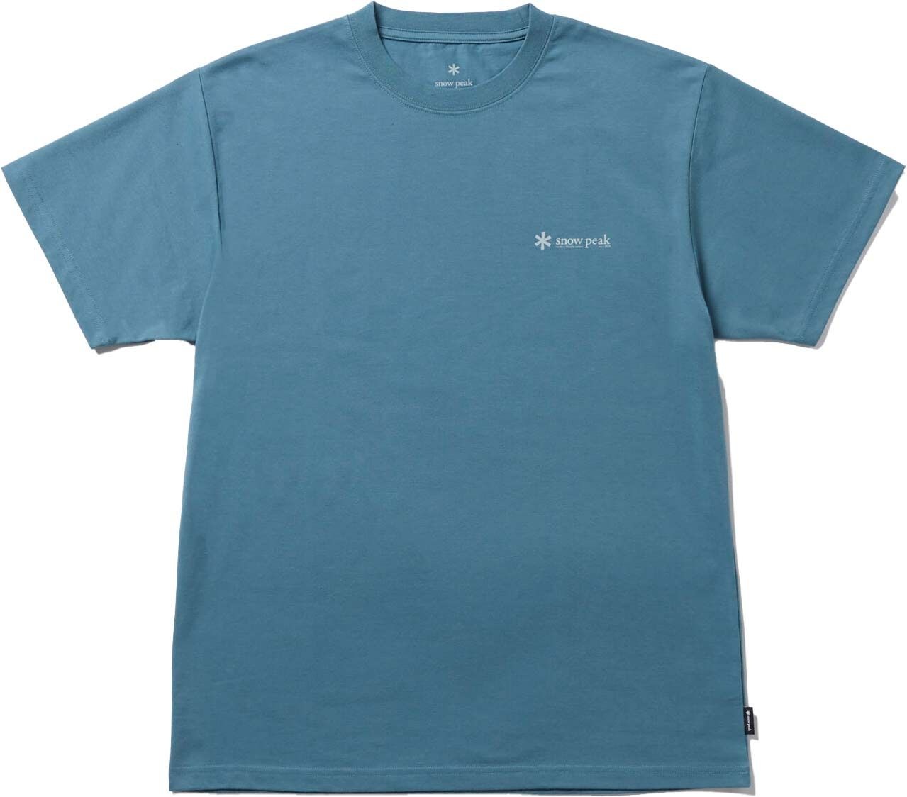 Snow Peak Logo T-Shirt Blue : t-shirt en coton biologique et polyester recyclé, doux, respirant et séchage rapide grâce au tissu REPREVE®, avec logo discret pour un style décontracté.