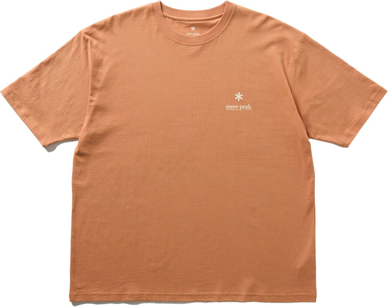 T-shirt à manches courtes Snow Peak Soft Cotton Logo Orange en coton biologique 100 %, coupe unisexe, doux et confortable, avec impression typographique discrète.