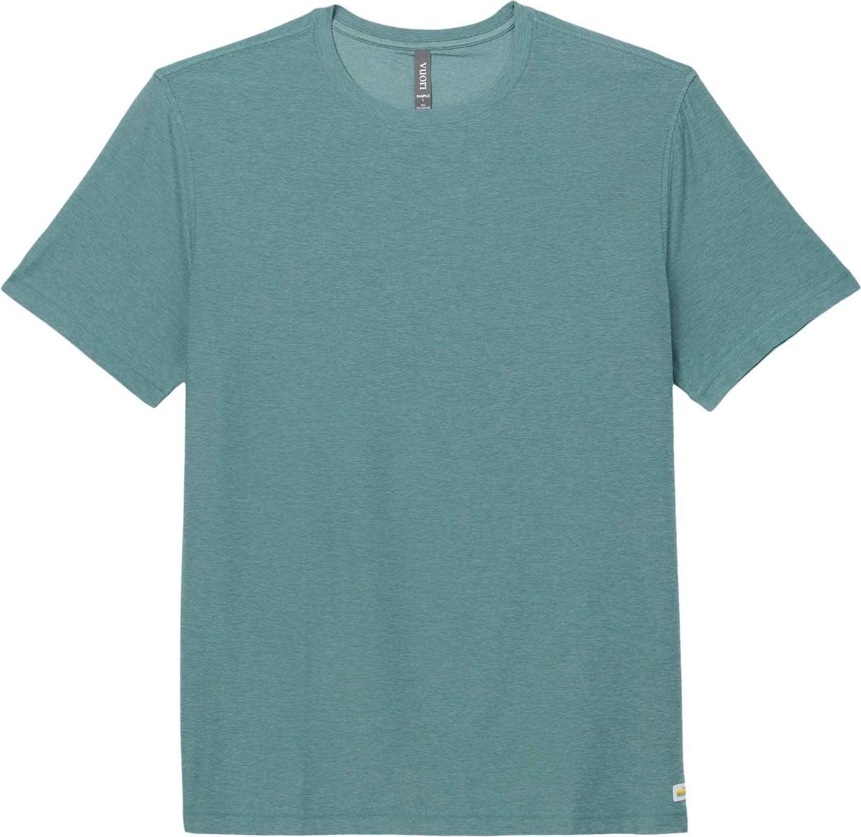 T-shirt Vuori Stato Tech Tee Bluegrass Heather pour homme, alliant extensibilité 4 directions, respirabilité et évacuation de l’humidité pour le sport et le quotidien actif.