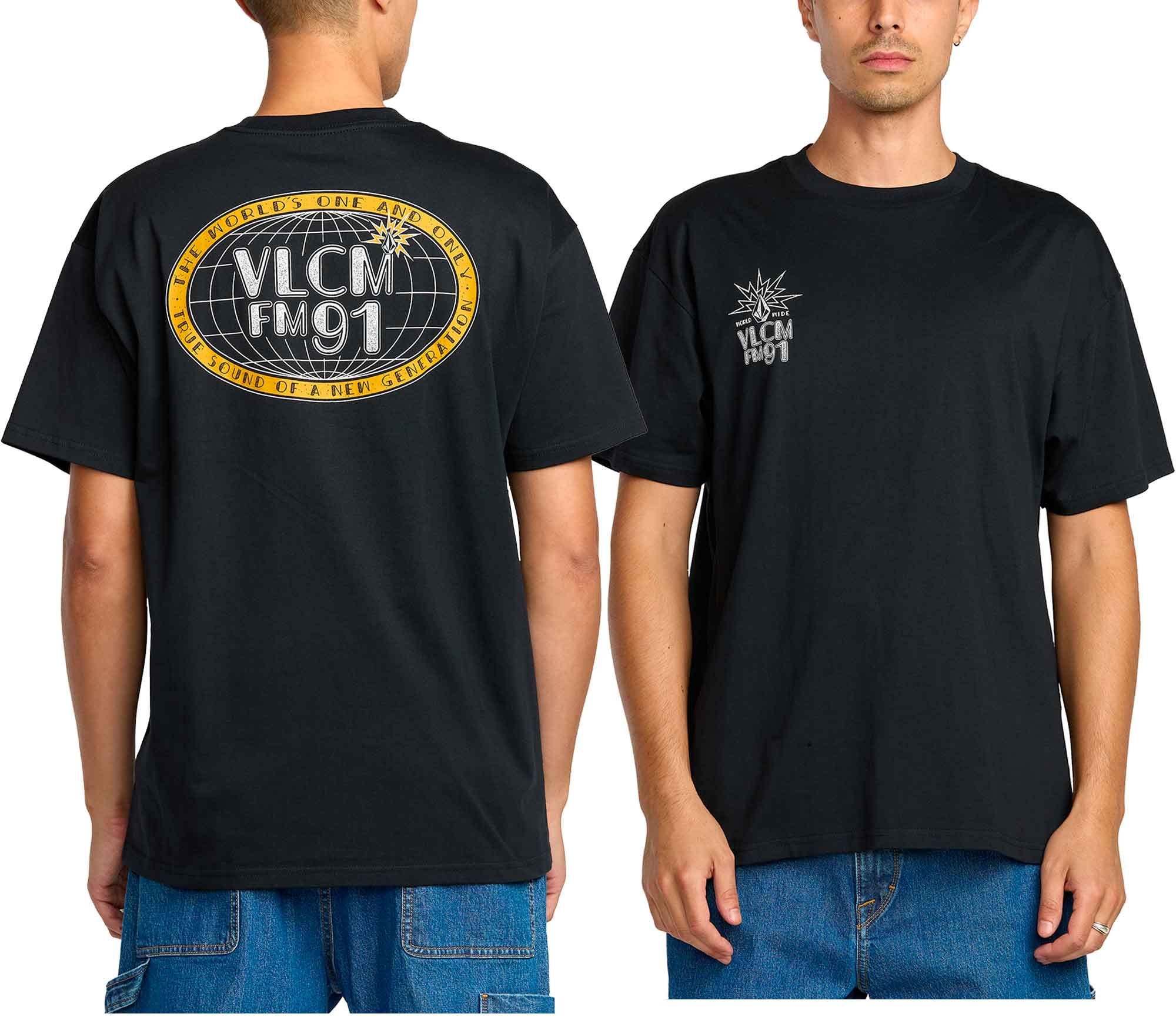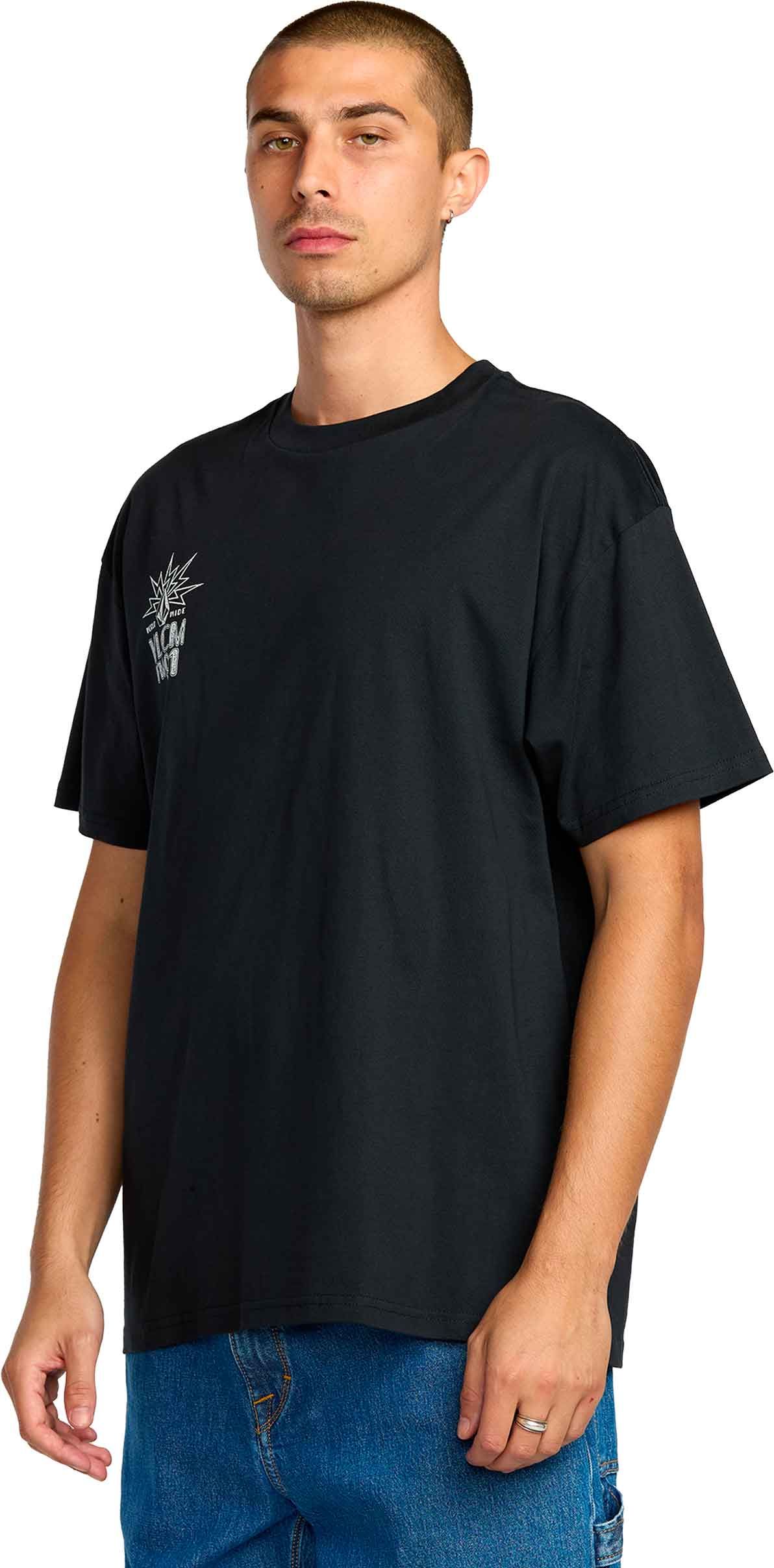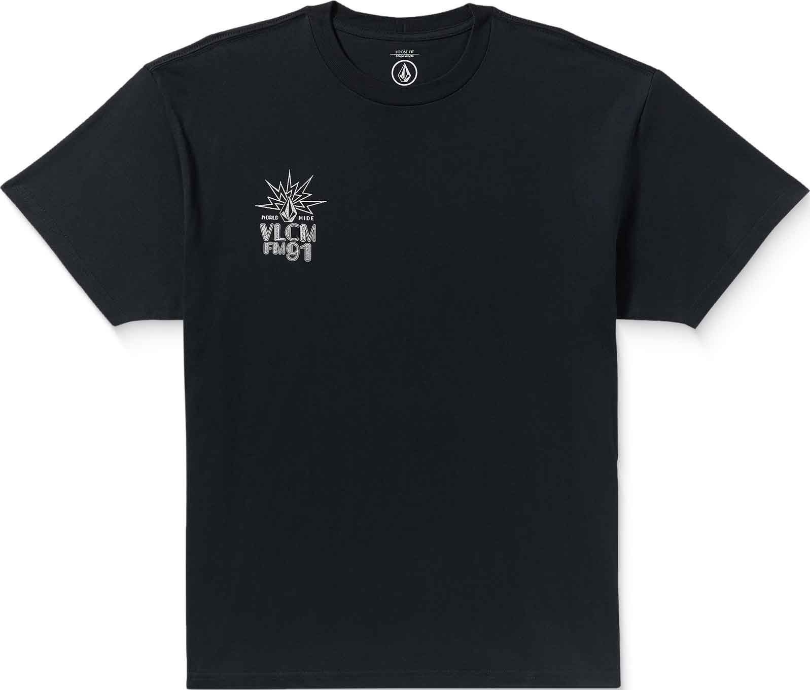 T-shirt Volcom Tune In SS Tee Antique Black homme en coton épais, coupe ample, imprimé effet craquelé vintage. Col rond sans étiquette pour un confort quotidien.