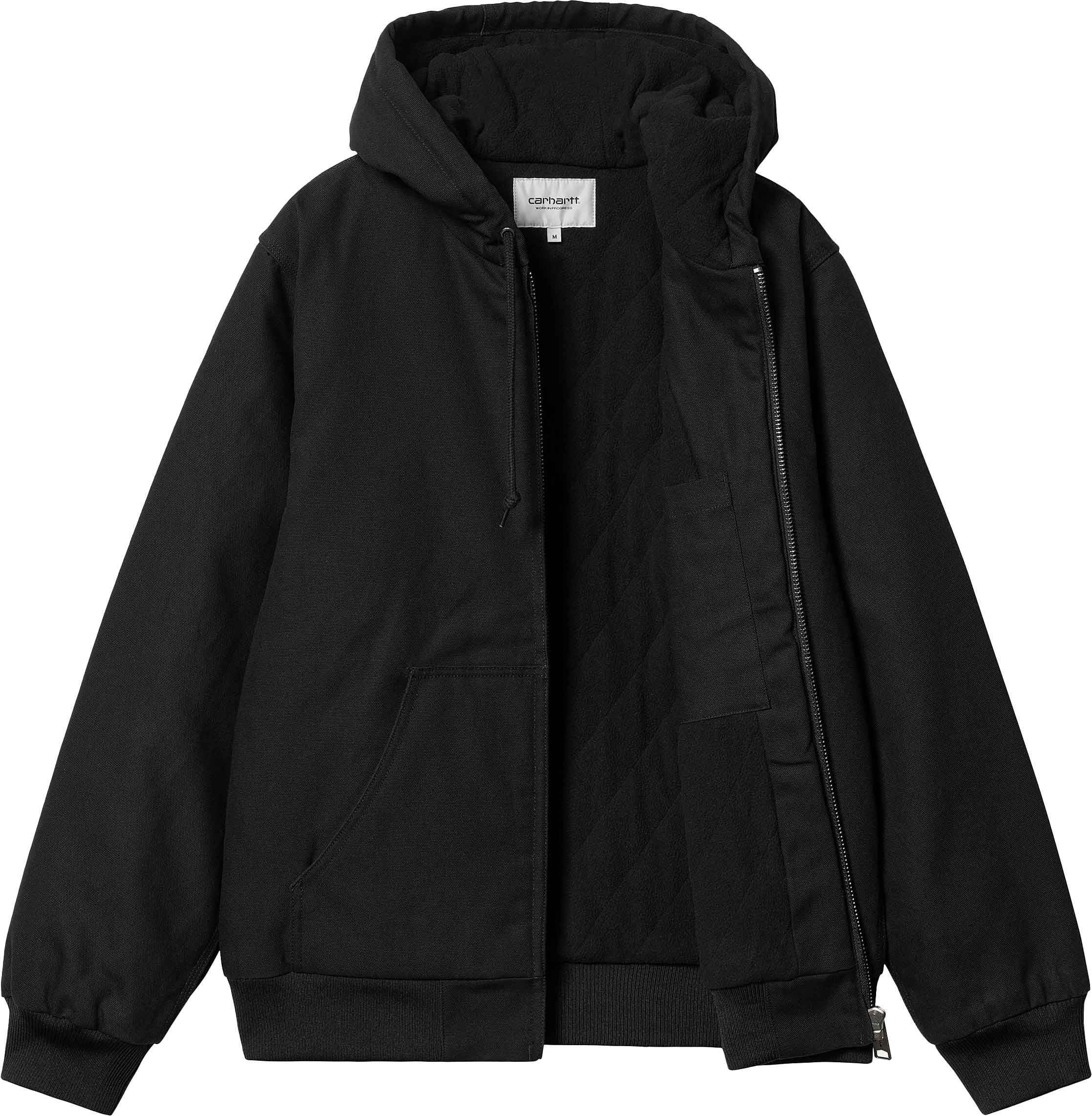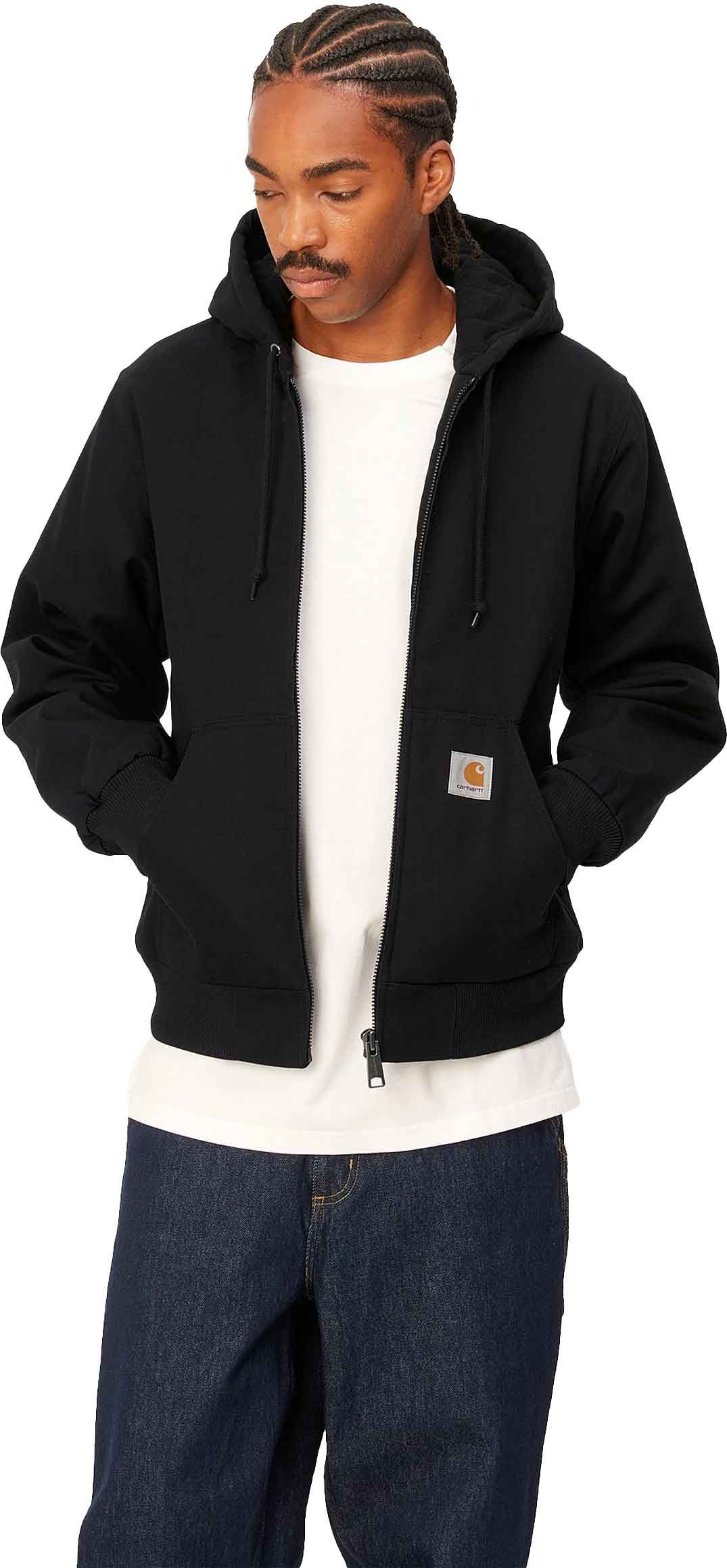 Carhartt WIP Active Jacket Black : veste unisexe en coton organique doublée micro-polaire, capuche réglable, poches kangourou et isolation 3M Thinsulate™ pour chaleur respirante.