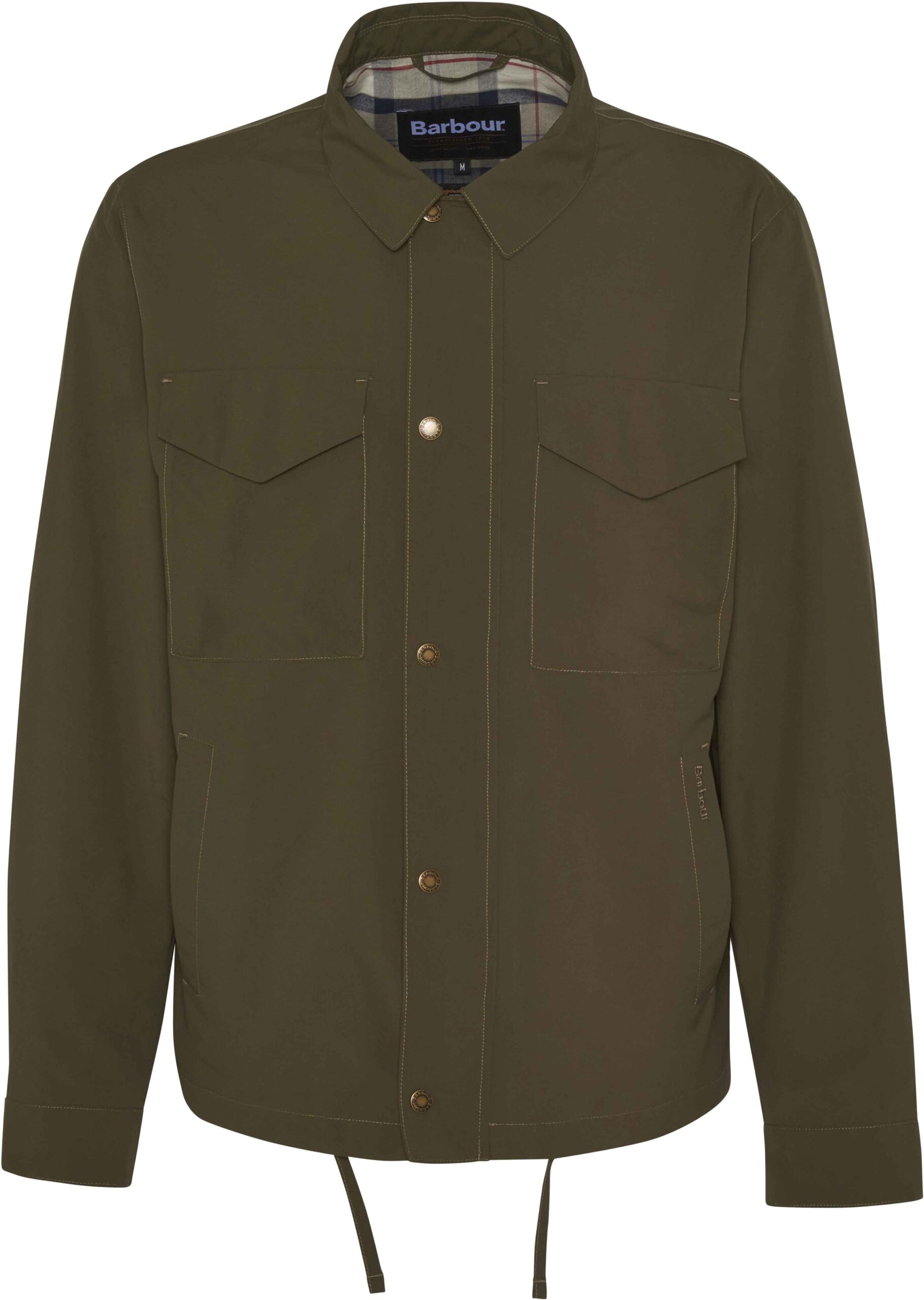 Veste Barbour Camber Casual Uniform Green pour homme, en polyester léger et durable, avec poches fonctionnelles, cordon de serrage ajustable et doublure tartan signature.