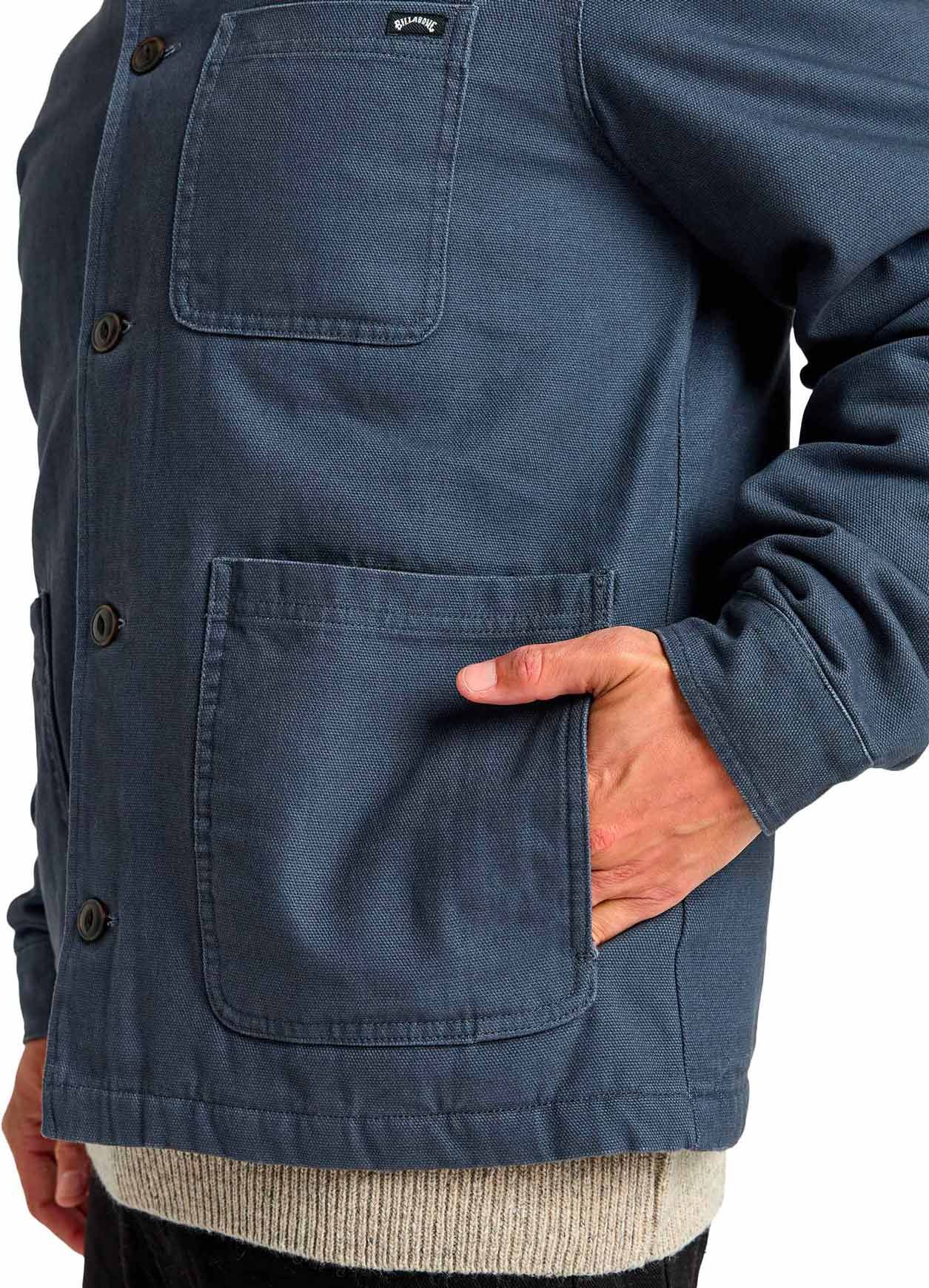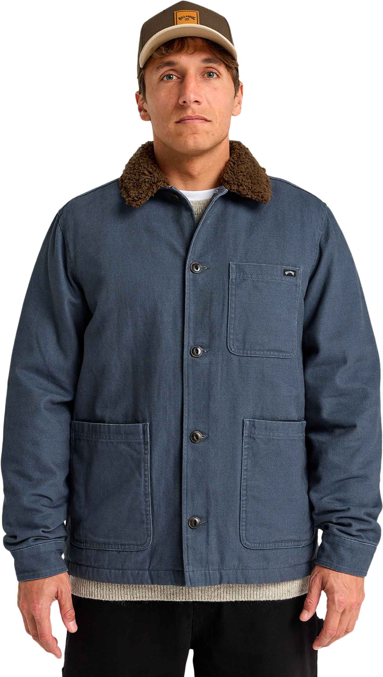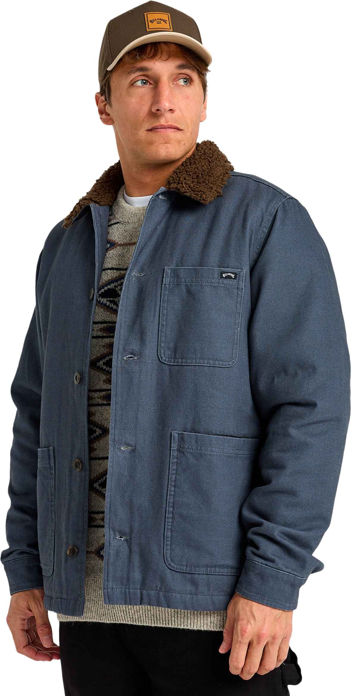 Veste Chore Sherpa Jacket Ombre Blue Billabong homme : col sherpa, manches doublées taffetas matelassé, patte bouton intégrale et poches plaquées pour style rétro et chaleur quotidienne.
