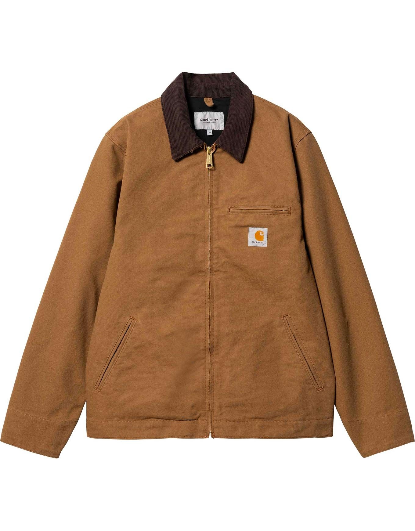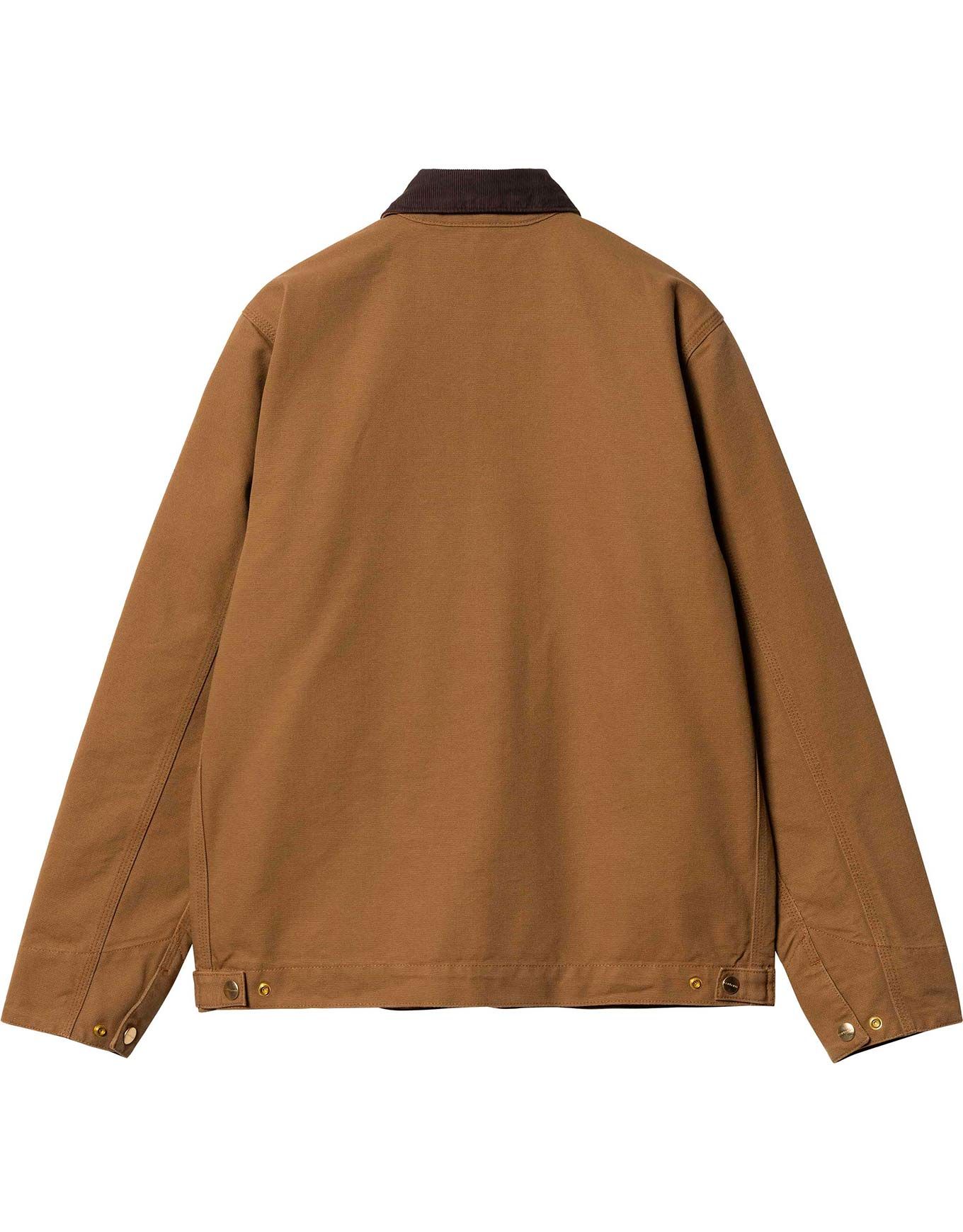 Blouson Detroit Jacket Hamilton Brown Tobacco Carhartt WIP, unisexe en coton doux, col velours côtelé chaud, poignets ajustables, poche poitrine logo brodé.