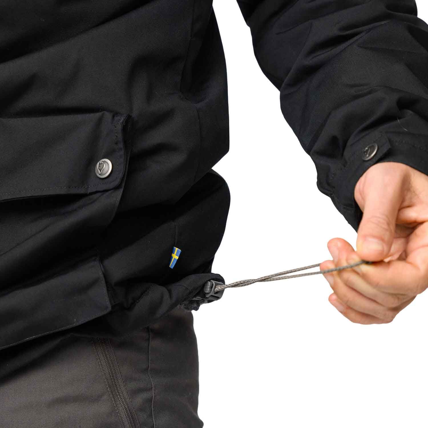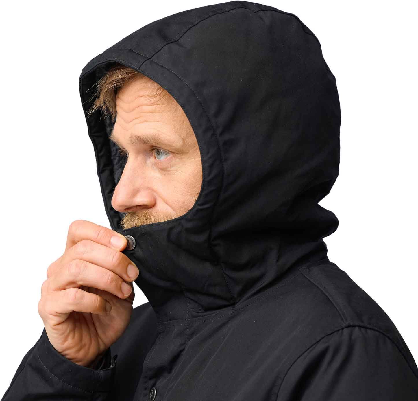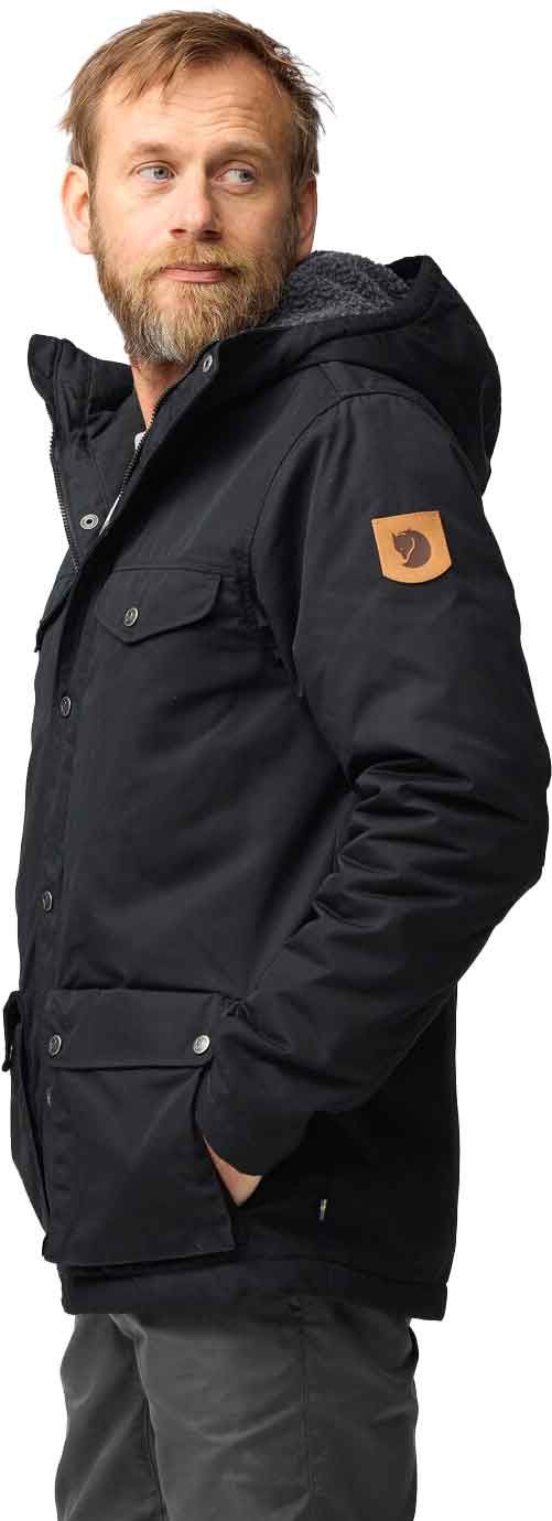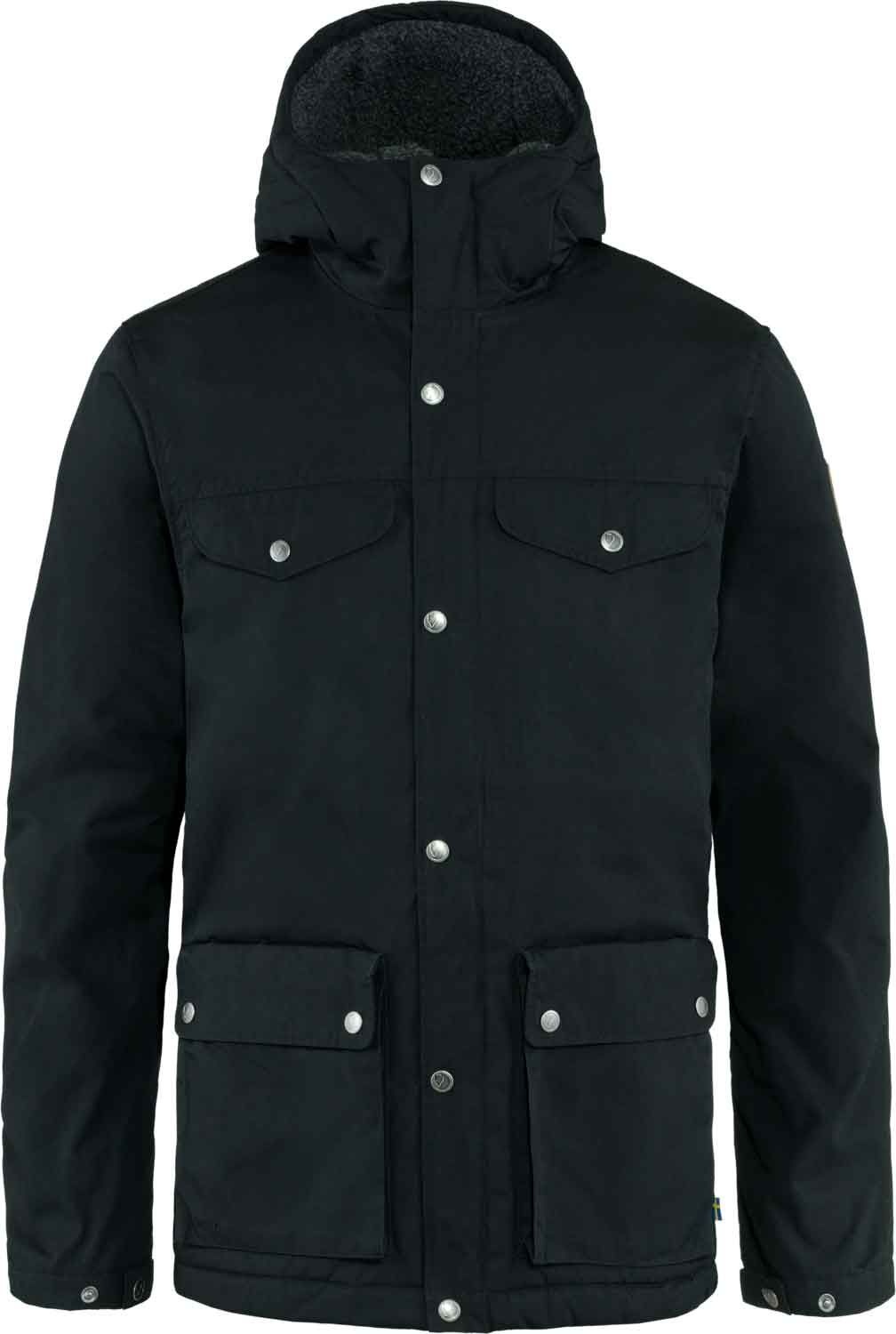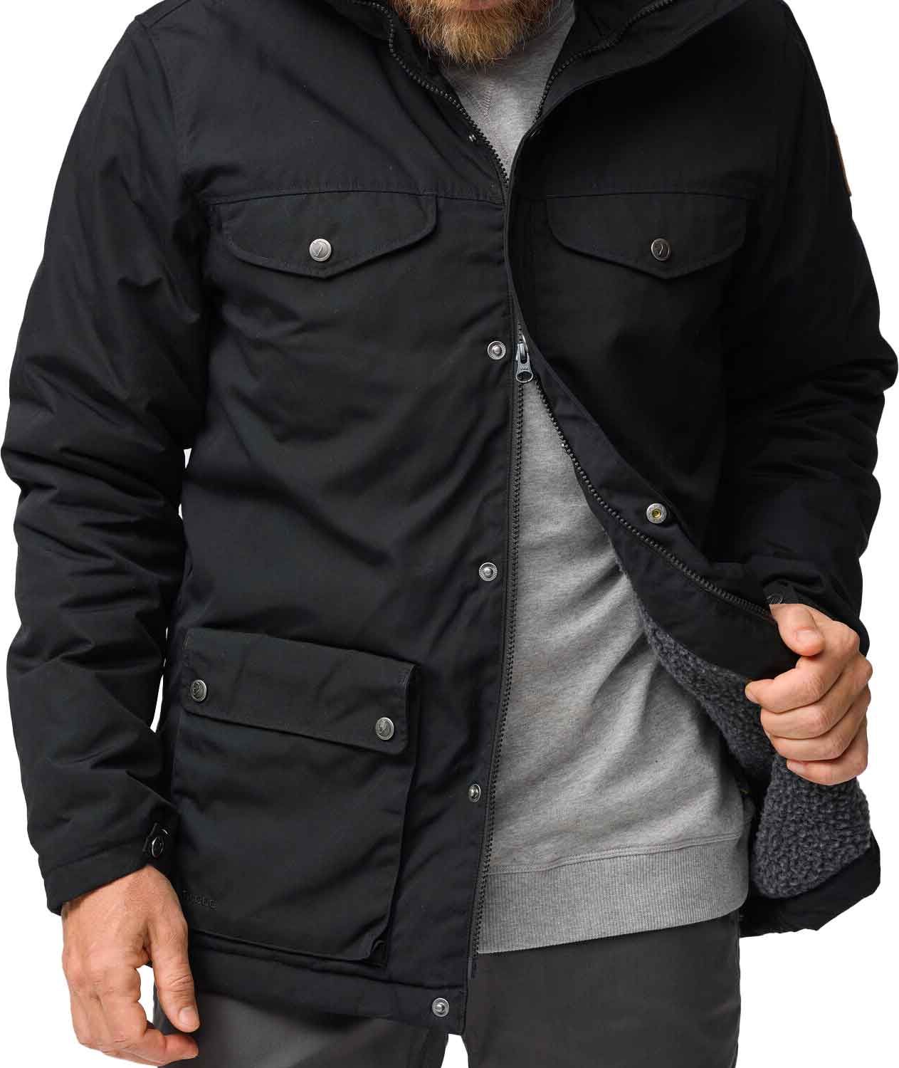 Veste Greenland Winter Black Fjällräven pour homme, chaude en G-1000® Eco avec doublure polaire, résistante aux intempéries et traitable au Greenland Wax pour ville ou forêt.