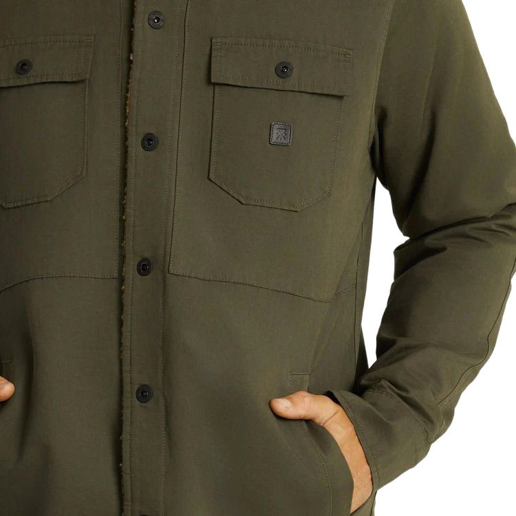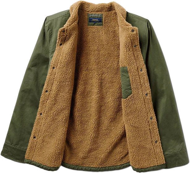 Blouson homme Roark Hebrides Sherpa Dark Military en sergé de coton résistant, doublure sherpa brossée pour une chaleur douillette lors des sorties urbaines quotidiennes.