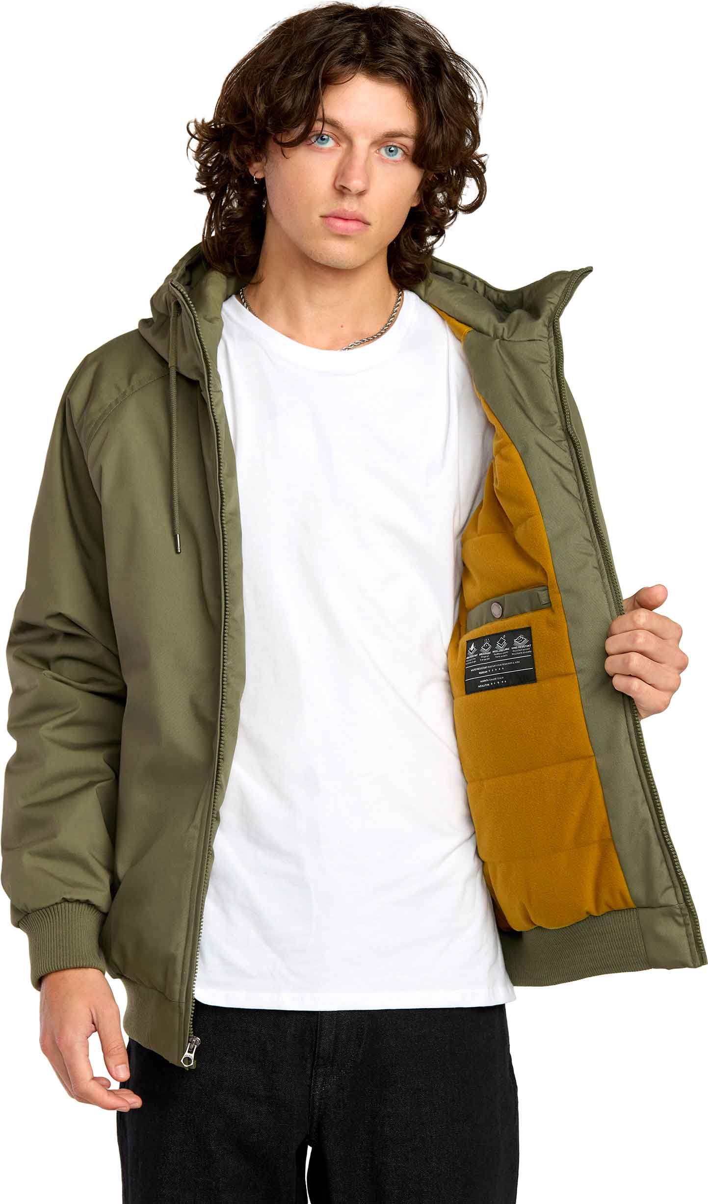 Veste Volcom Hernan 10K Jacket Wintermoss homme : chaleur, coupe tendance, résistance à l’eau et traitement déperlant Teflon EcoElite™ sans PFC, capuche et poches fonctionnelles.