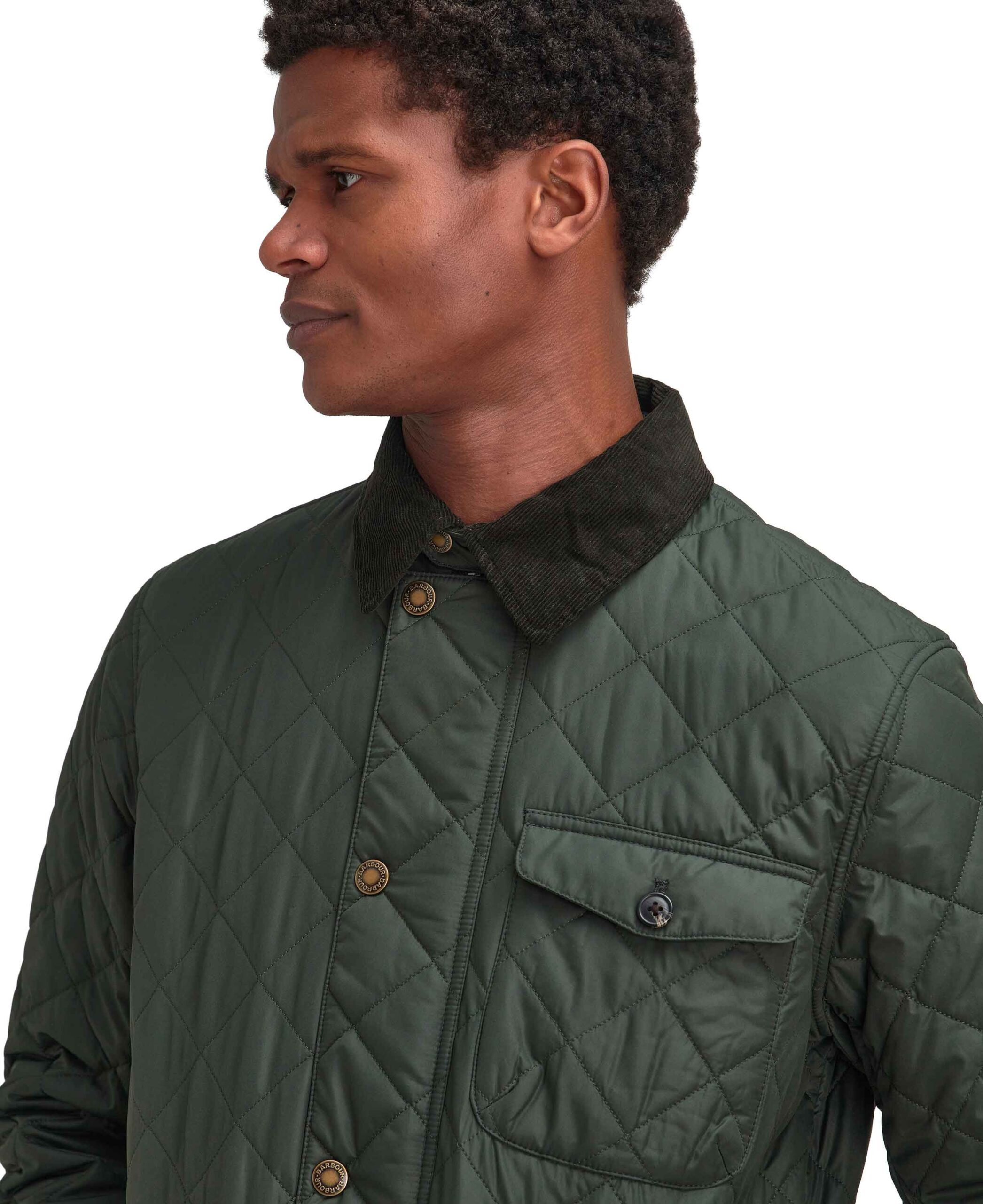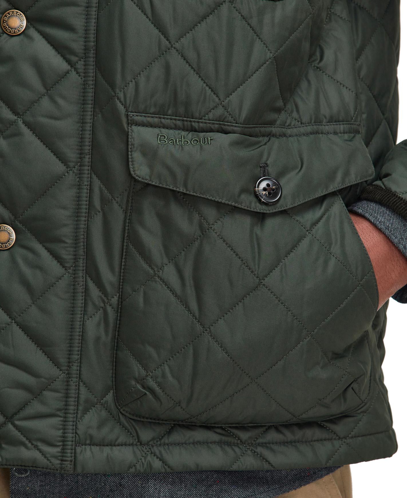 Barbour Hornby Quilted Jacket Sage : veste matelassée isolée synthétiquement, fermeture zippée rabattue, trois poches ingénieuses, chaleur légère et coupe sophistiquée pour l’homme en saison fraîche.