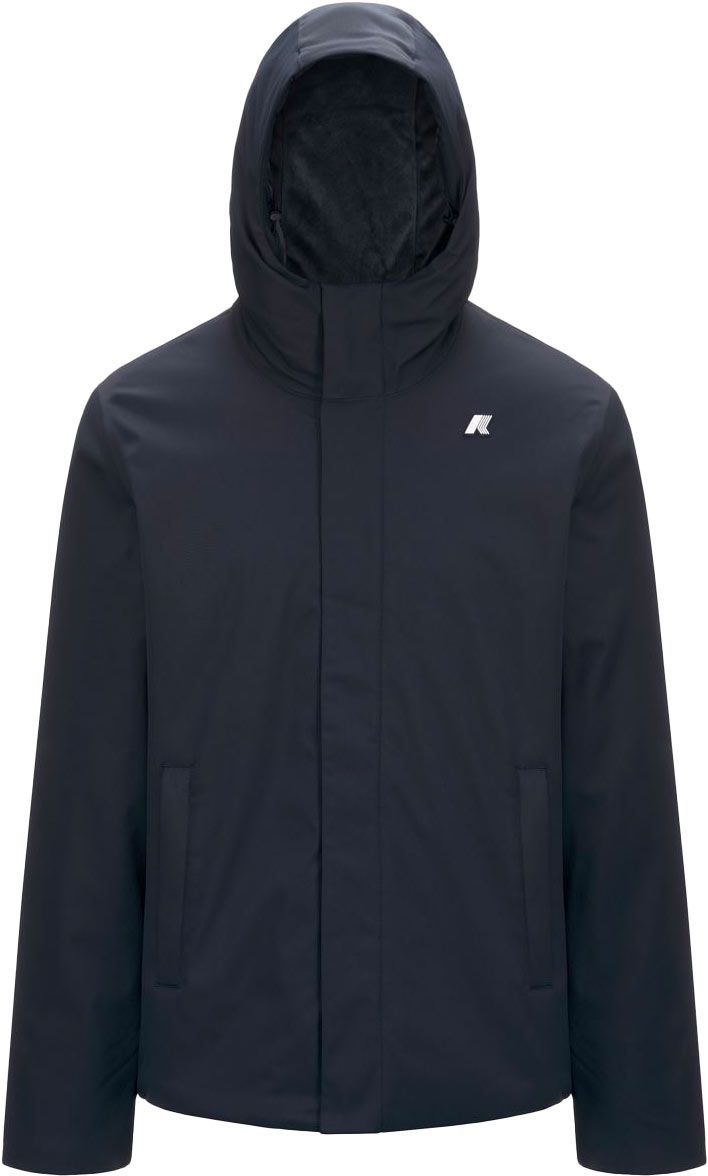 La veste K-Way Jacko Twill Marmotta Blue D Blue A pour homme allie protection pluie et vent, tissu imperméable, coutures thermo-soudées et coupe urbaine.