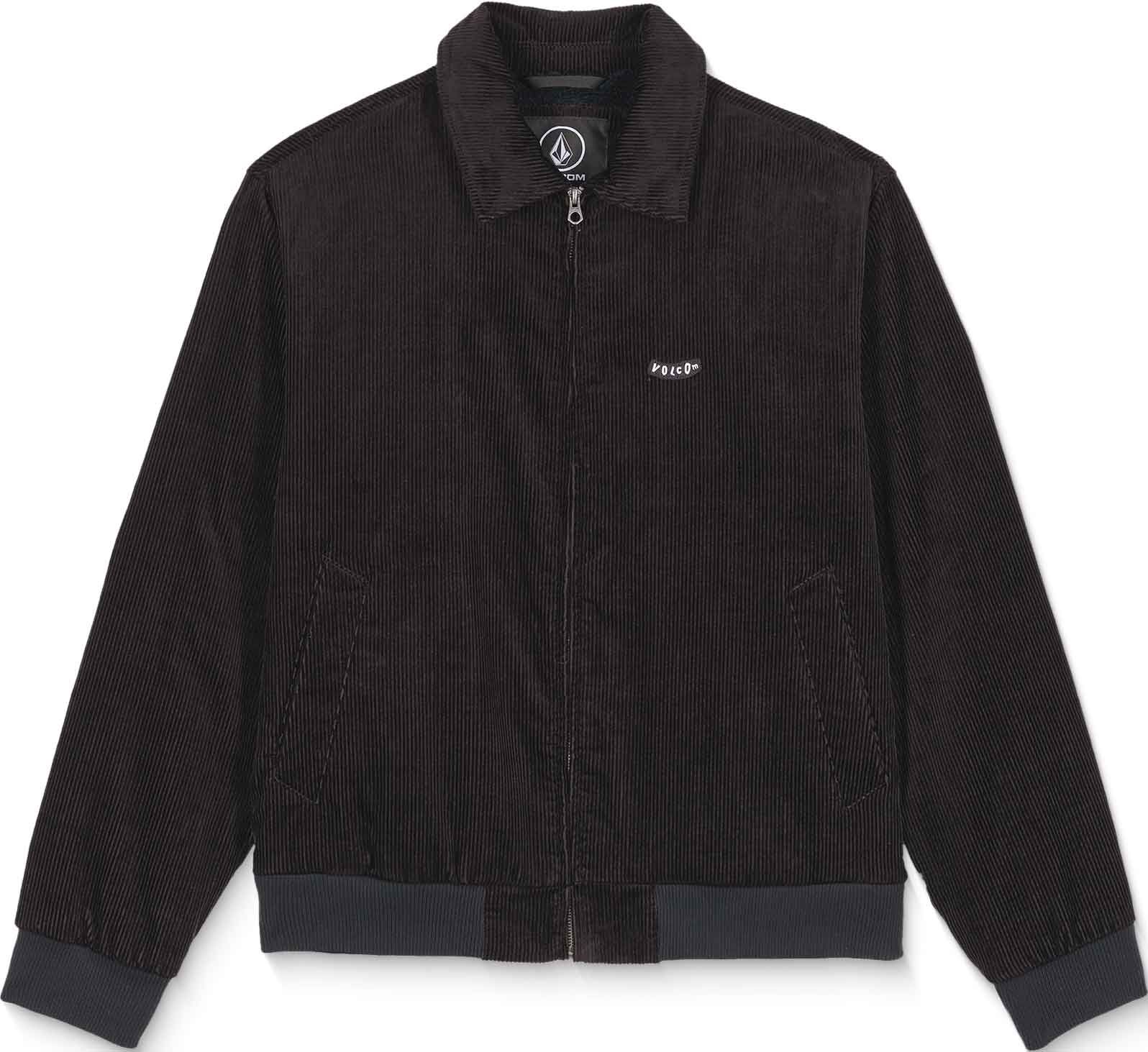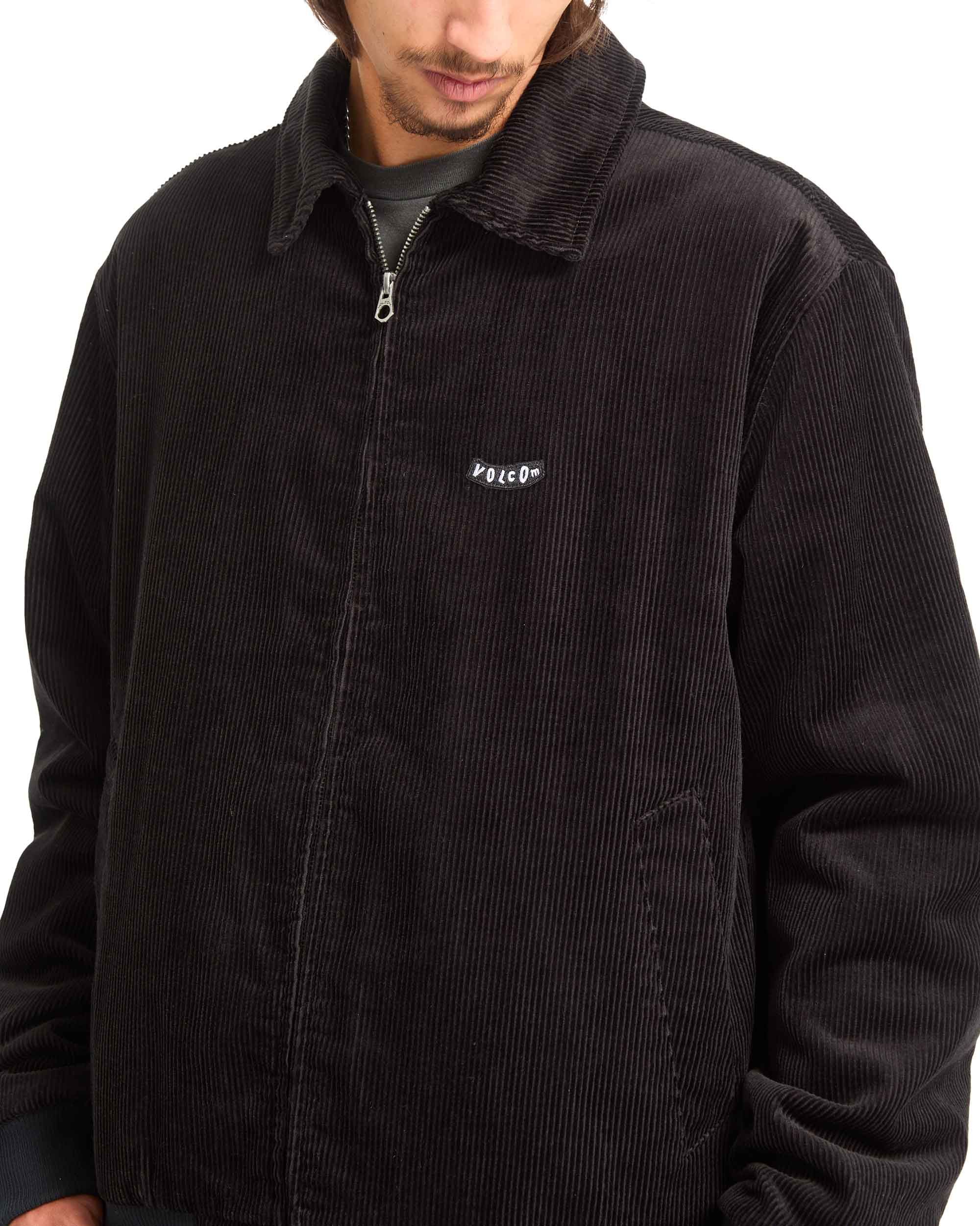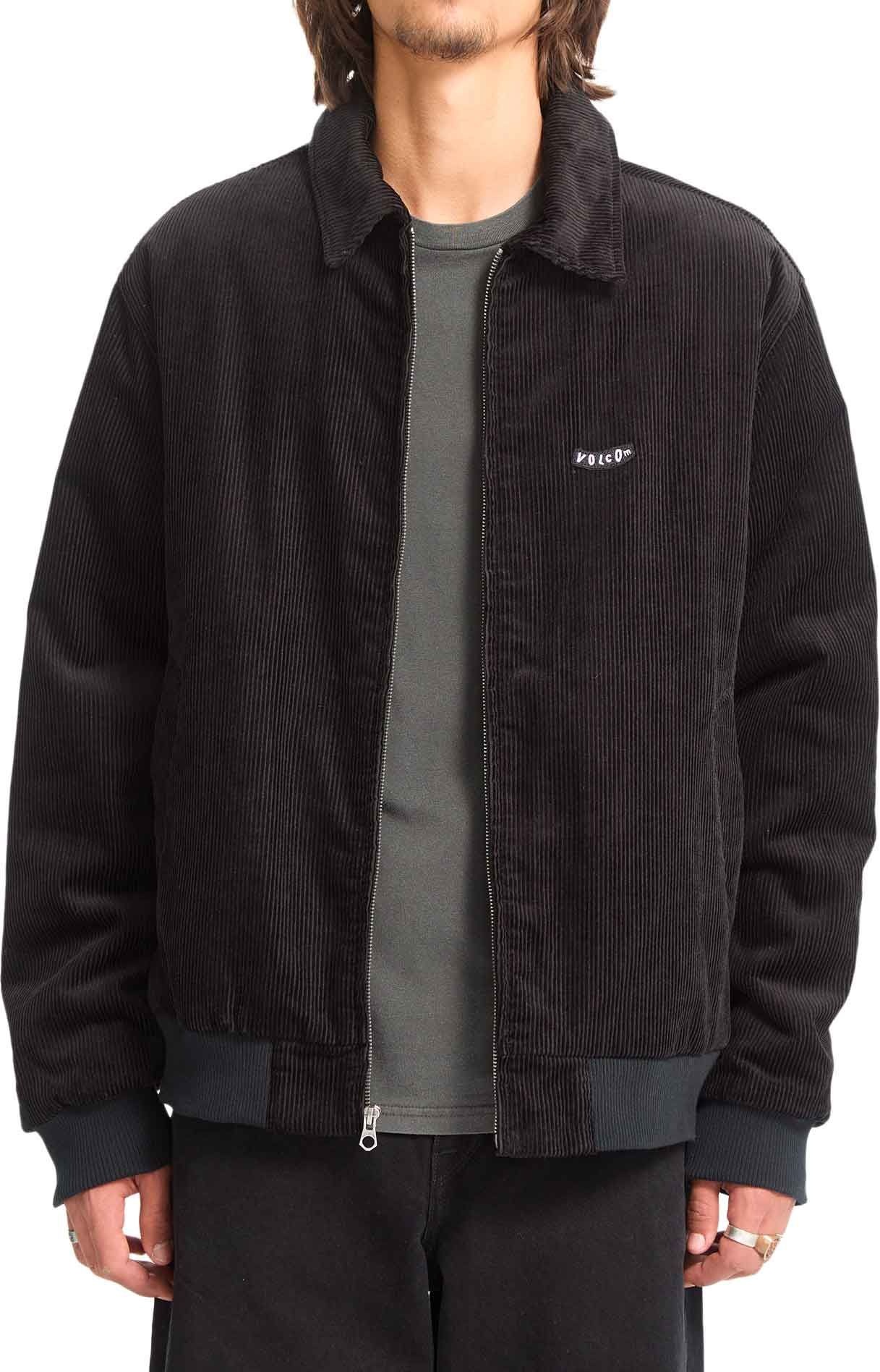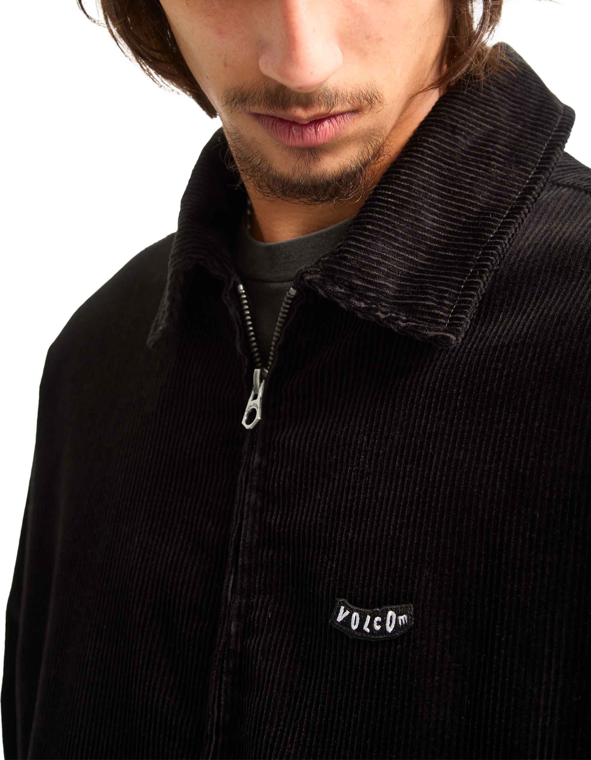 Volcom Kurtis Jacket Black, blouson velours côtelé homme en coton, doublure fausse fourrure chaude, coupe décontractée à la taille, fermeture zippée, poches latérales et intérieure, patch discret.