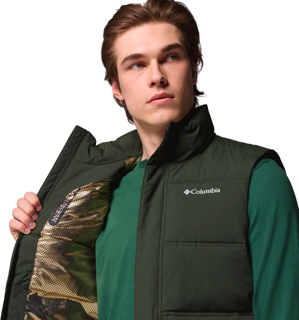 La doudoune sans manches Landroamer Puffer Vest Greenscape Columbia pour homme combine isolation Omni-Heat™ Reflective et polyester recyclé pour une chaleur légère en ville ; nylon déperlant, col montant et ourlet ajustable bloquent vent et pluie fine.