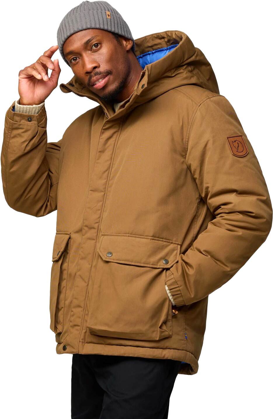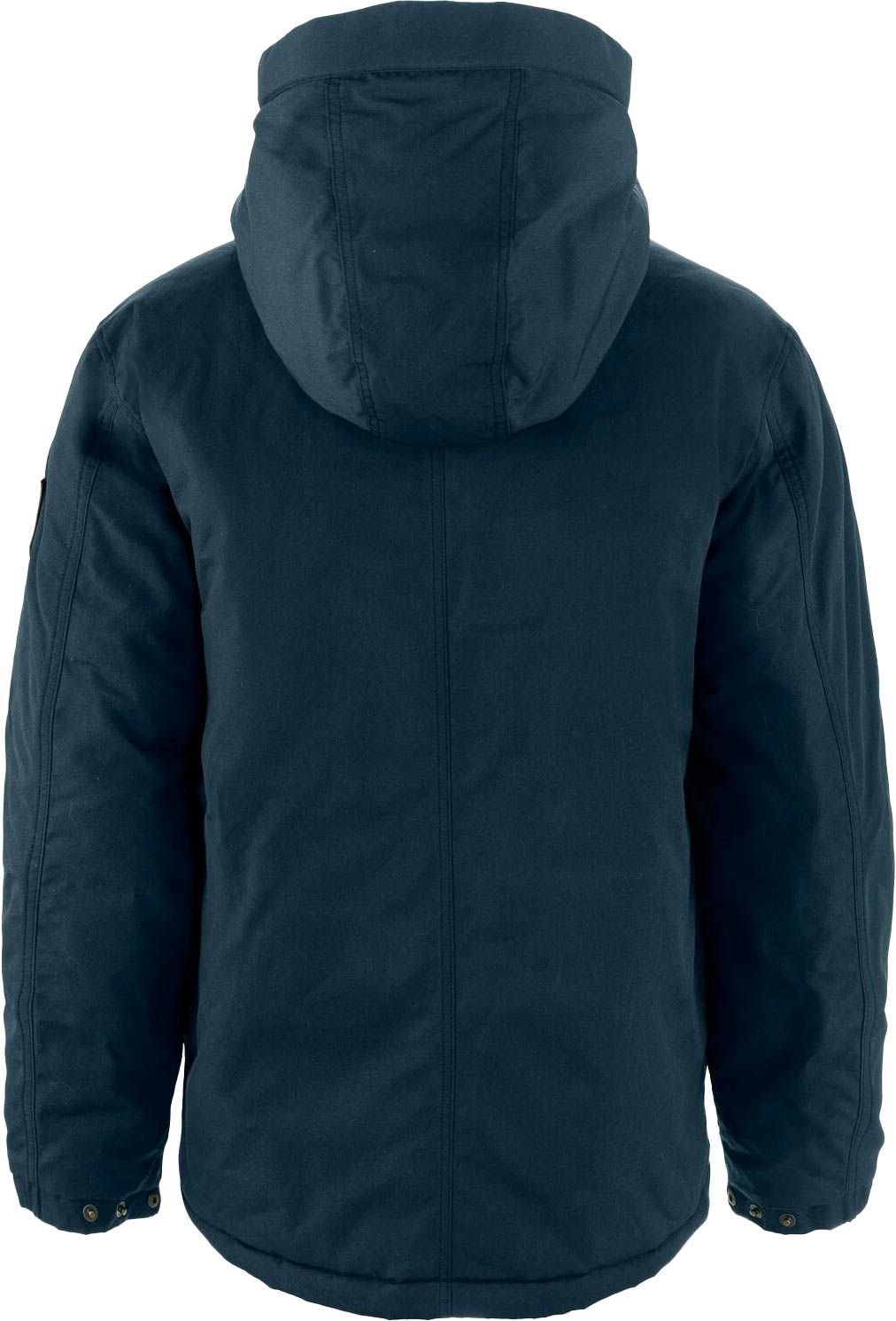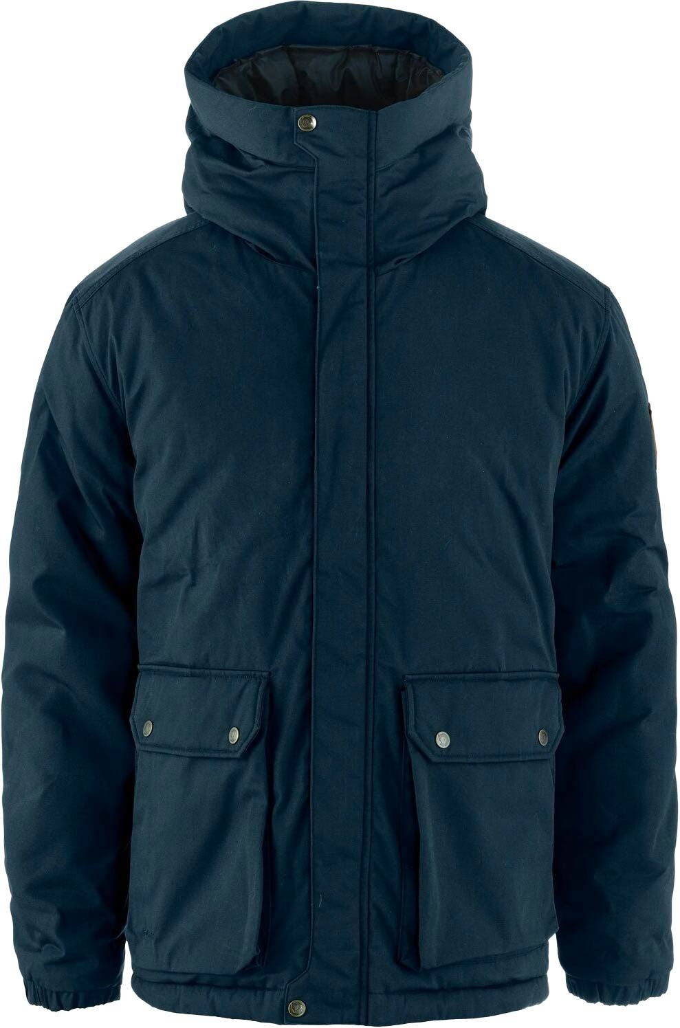 La veste hiver Övik Padded Jacket Dark Navy Fjällräven homme conjugue tissu G-1000 recyclé, isolation PrimaLoft® Black Insulation RISE et coupe ajustable pour chaleur, durabilité et style quotidien.