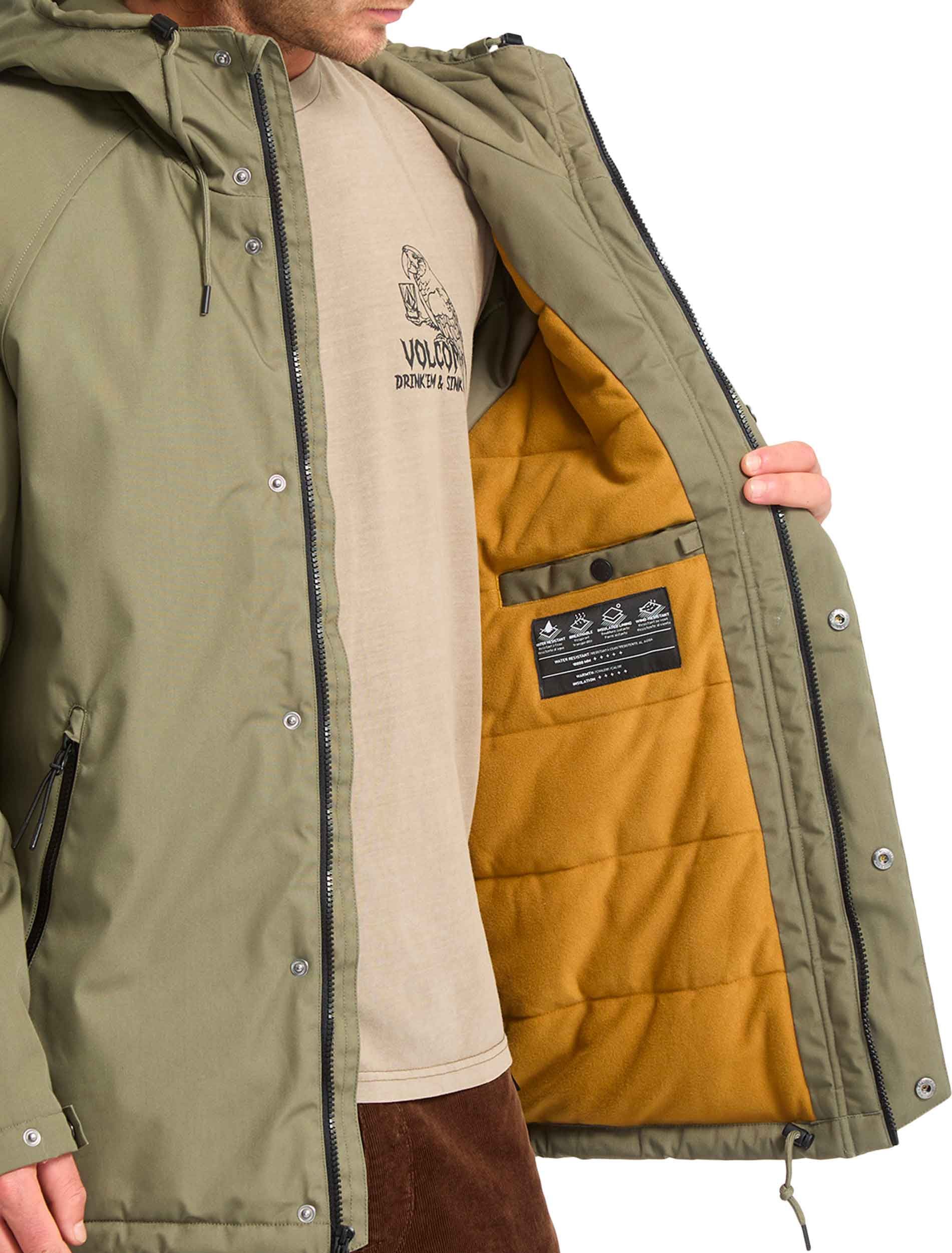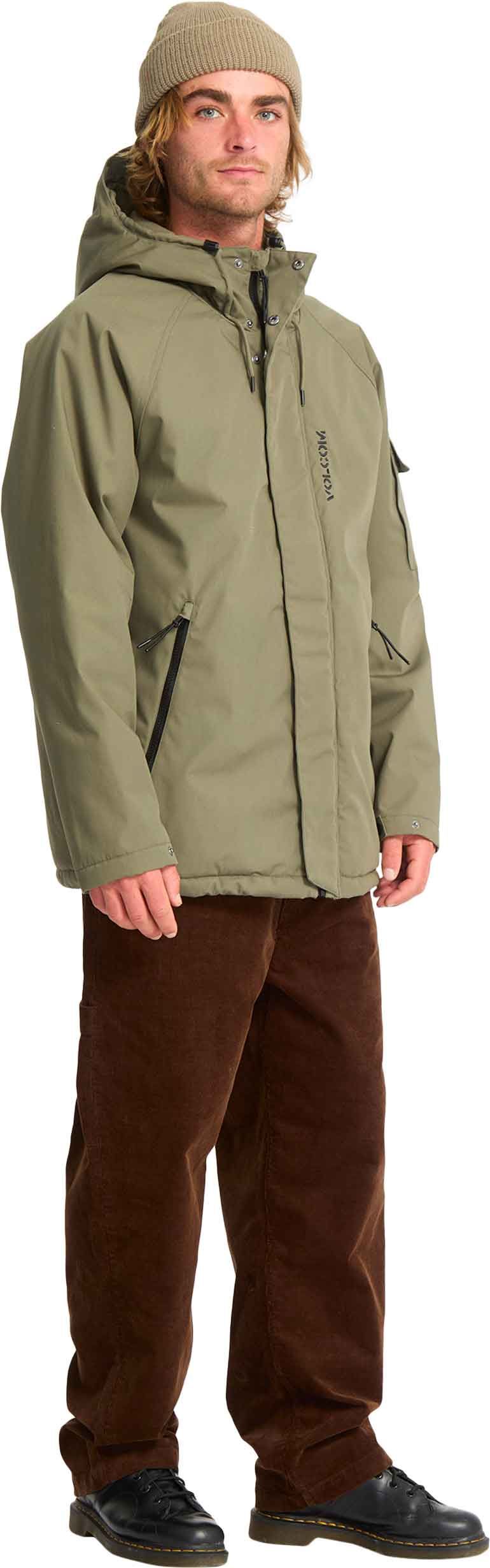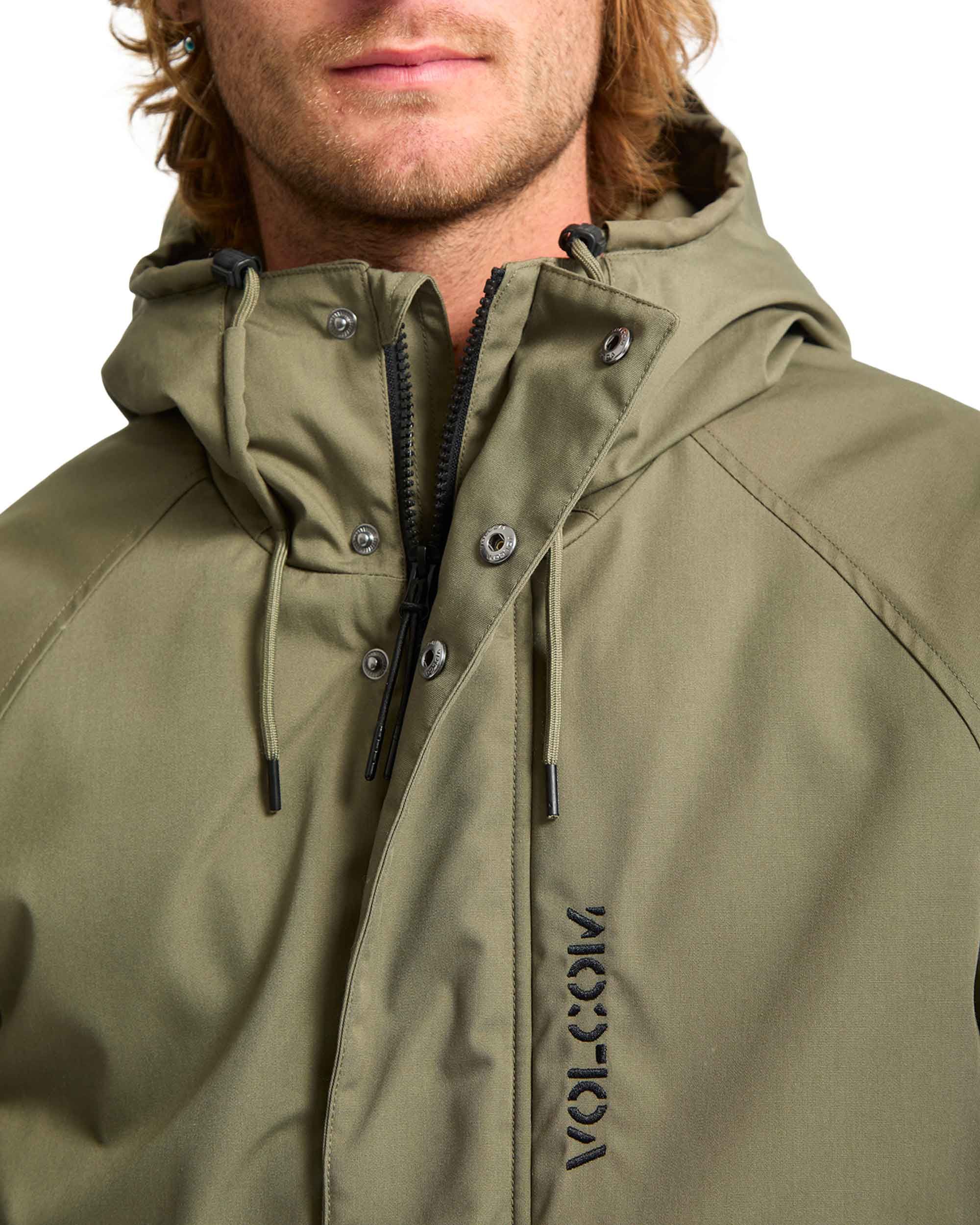 Veste Volcom Stoke Stone II 10K Jkt Wintermoss homme, chaude, coupe-tendance, doublure chaude, capuche et poches fonctionnelles, résistance à l’eau et traitement déperlant Teflon EcoElite™ sans PFC.