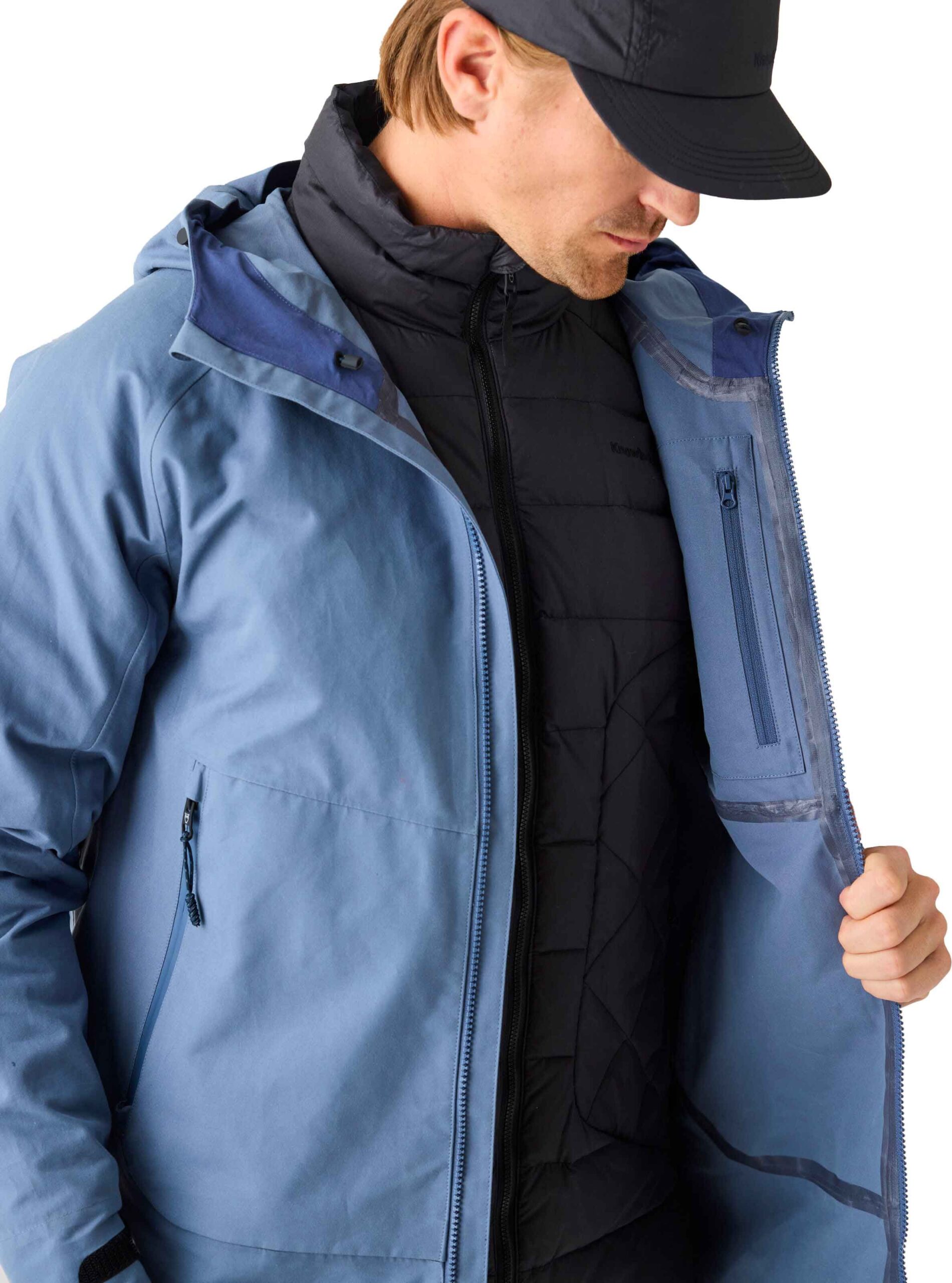 Veste KnowledgeCotton Apparel Vent Canvas 270 Shell Vintage Indigo en coton Supima bio, DWR 70 % après 30 lavages, séchage 40 % plus rapide, manches articulées, capuche rigide et respiration adaptative ville/outdoor.