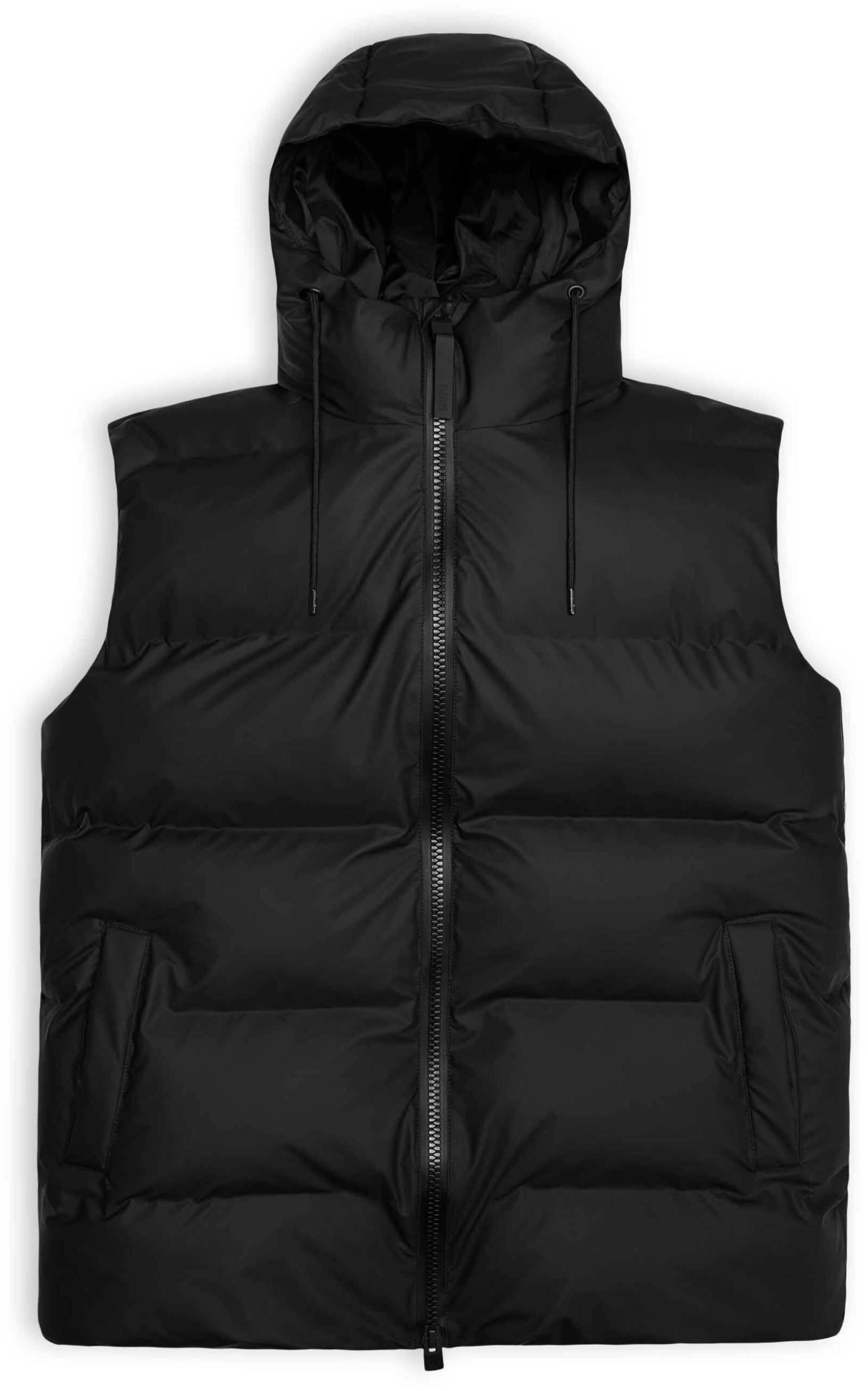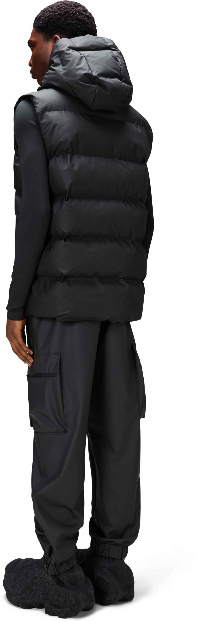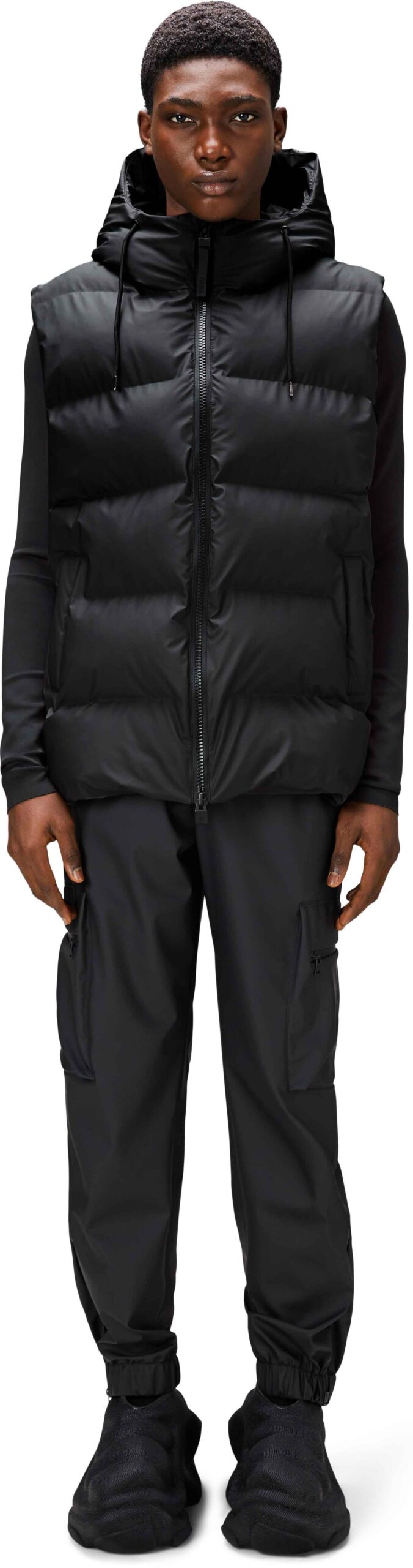 Veste sans manches Alta Puffer Black Rains, imperméable et respirante, isolée synthétiquement pour l’hiver urbain avec capuche, fermeture zippée double sens et poches polaire.