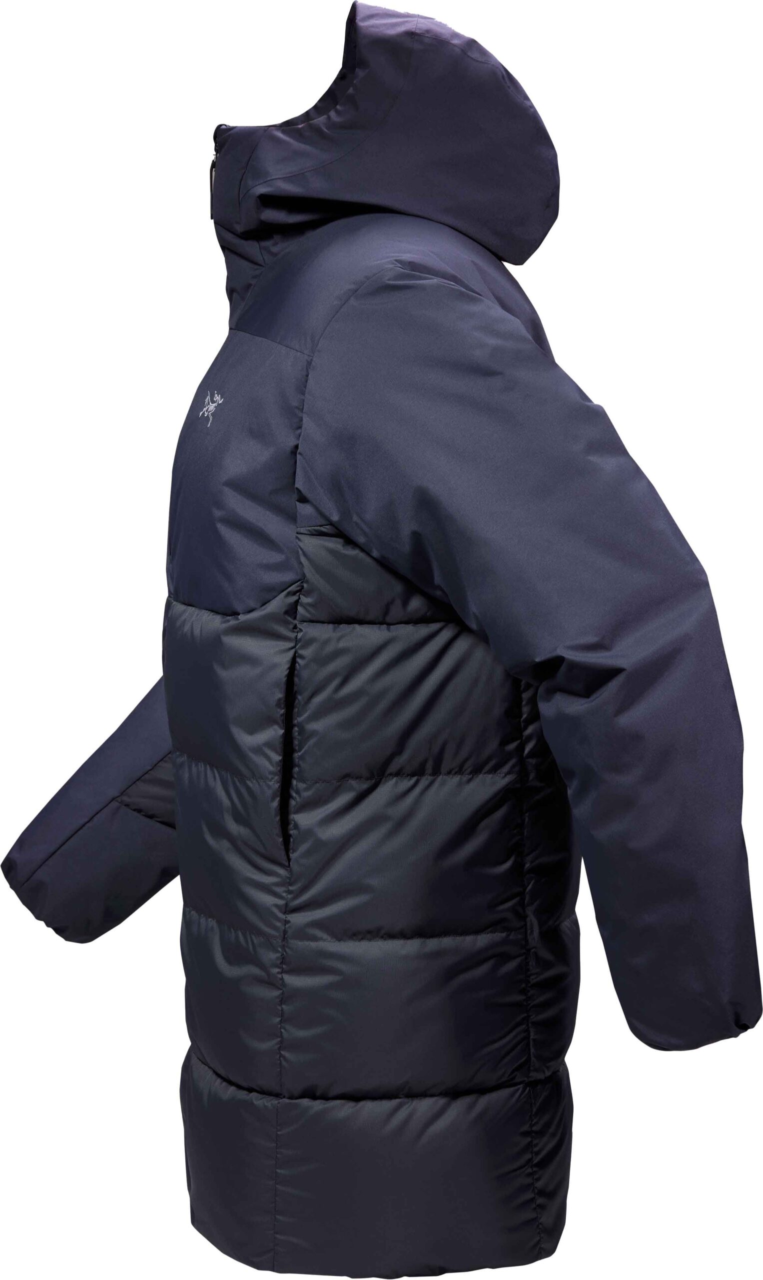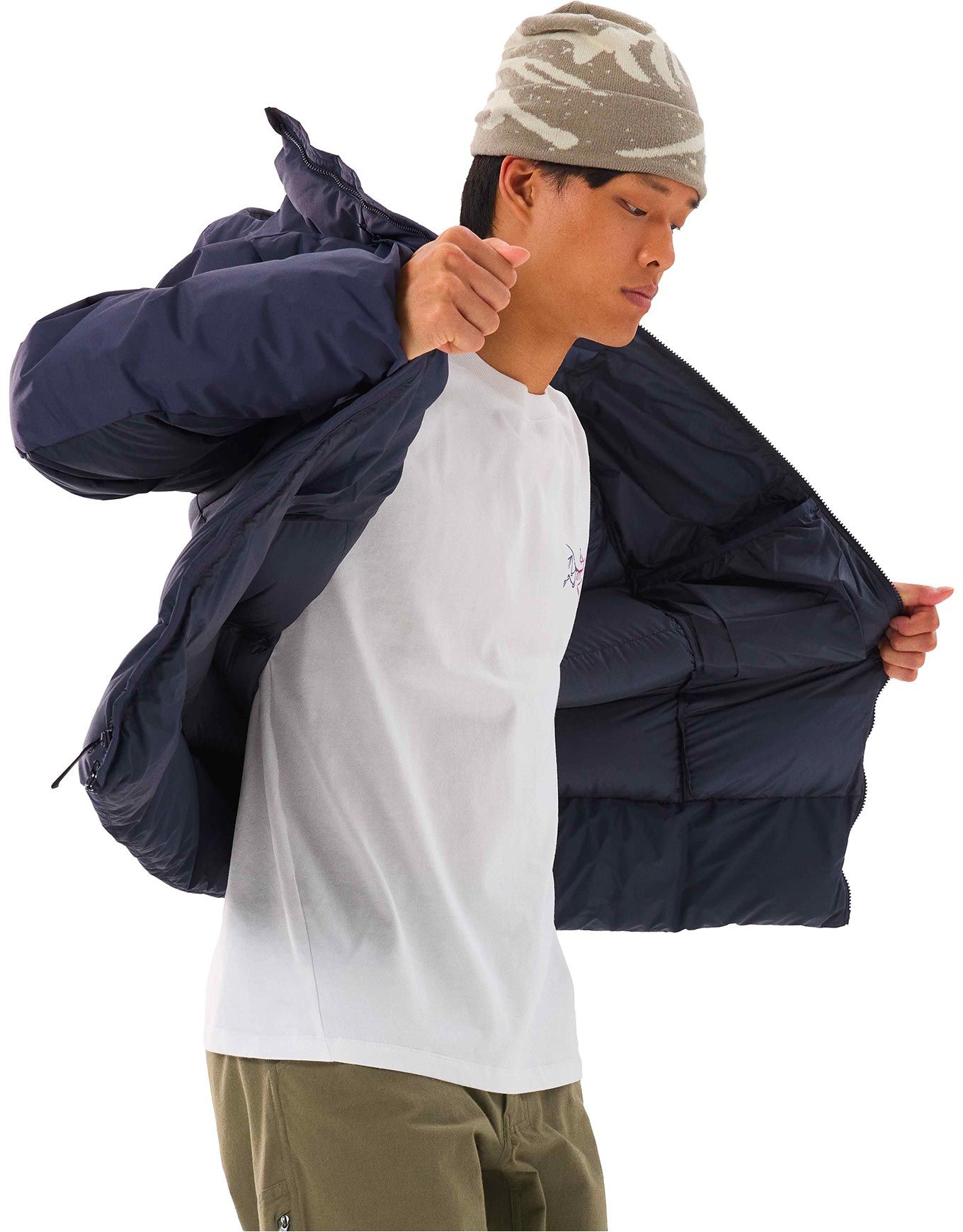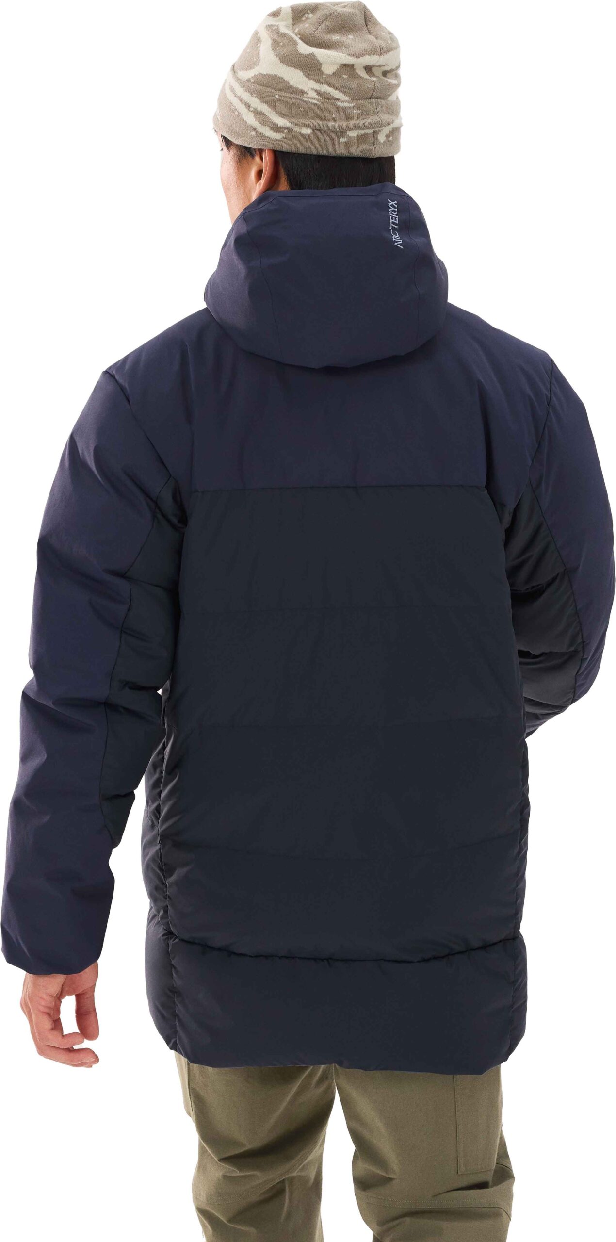 La veste Thorium SV Parka Black Sapphire d’Arc’teryx conjugue isolation 750 CUIN en duvet d’oie et Coreloft™ synthétique pour un confort thermique fiable en hiver urbain, avec capuche isolante et traitement DWR.
