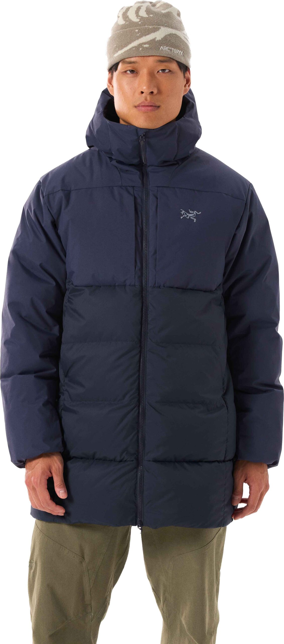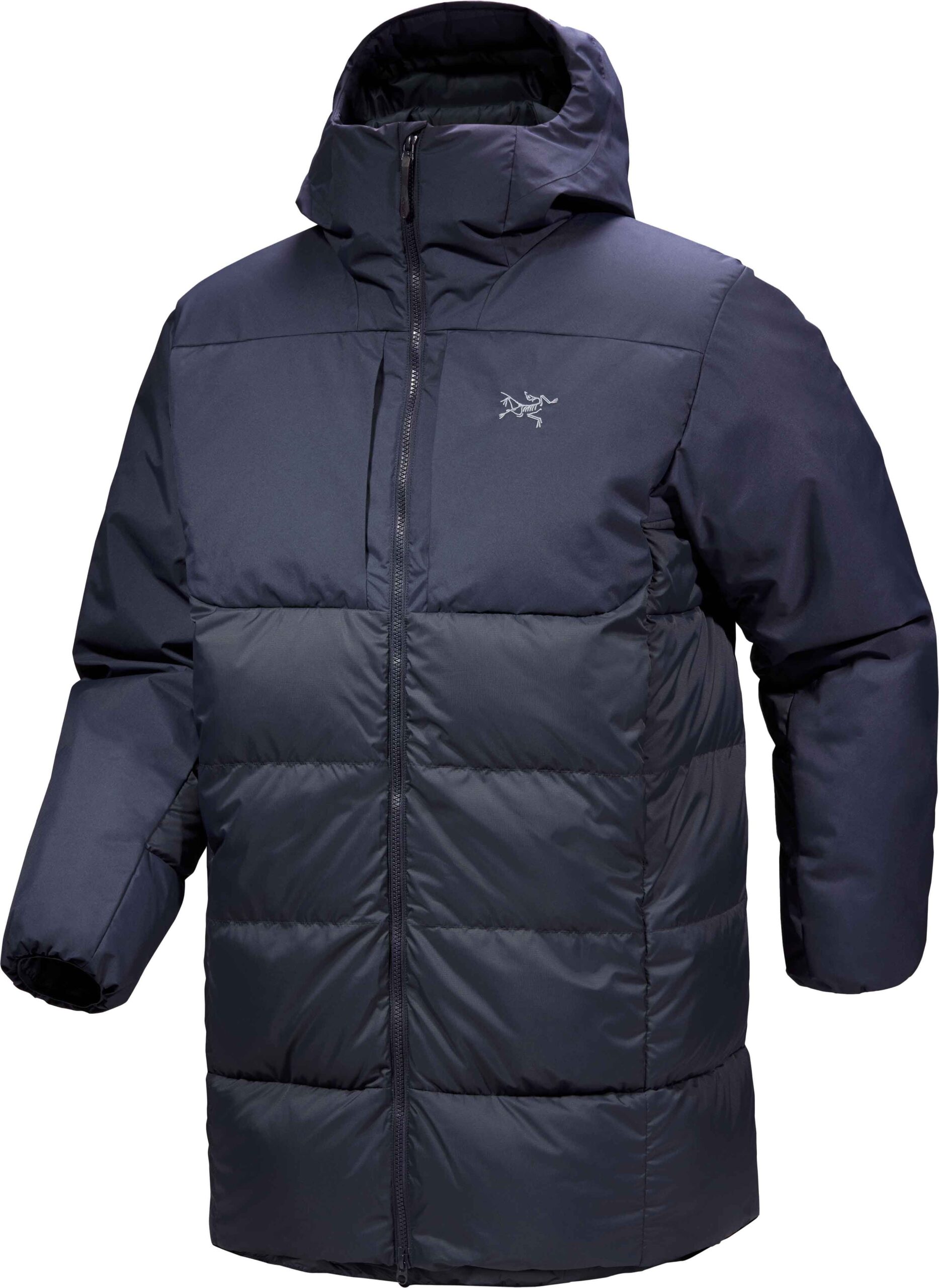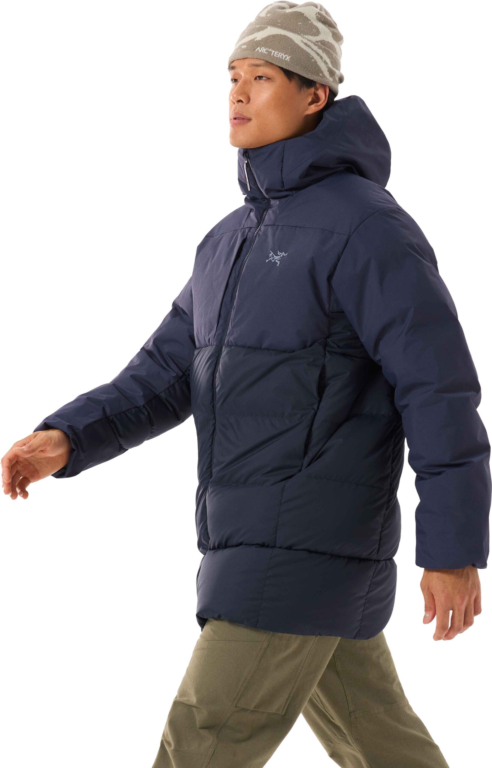 La veste Thorium SV Parka Black Sapphire d’Arc’teryx conjugue isolation 750 CUIN en duvet d’oie et Coreloft™ synthétique pour un confort thermique fiable en hiver urbain, avec capuche isolante et traitement DWR.