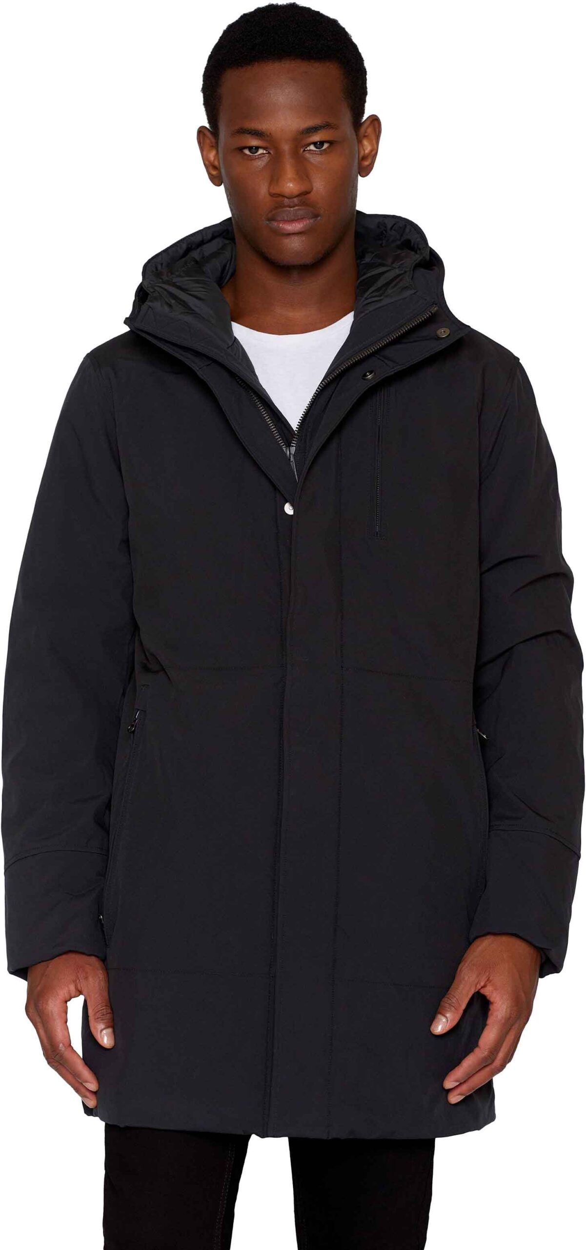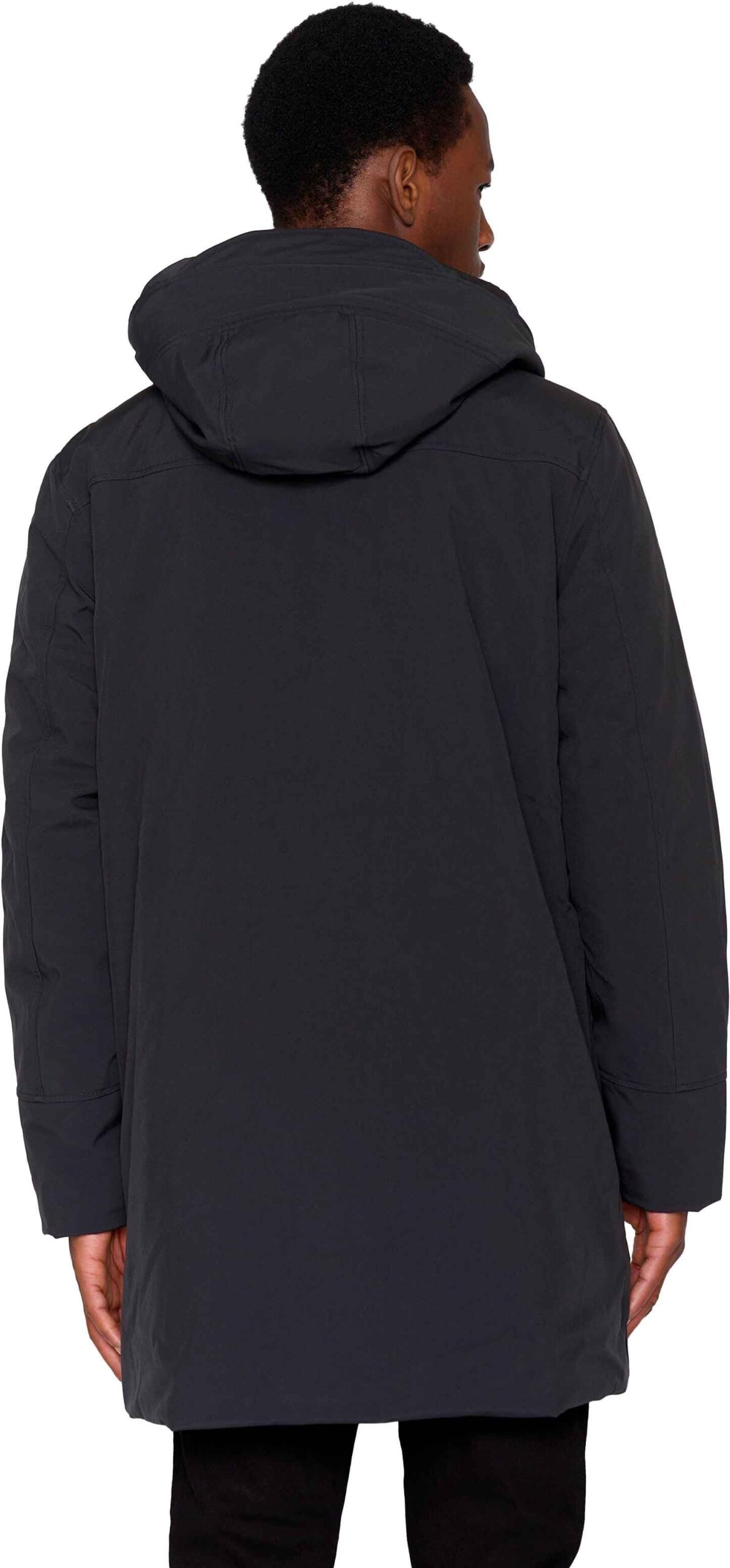 La parka Climate Shell Jacket Black Jet de Knowledge Cotton Apparel est imperméable, coupe-vent et respirante, conçue pour affronter l’hiver avec sa capuche généreuse, ses poches multiples et sa fermeture zippée renforcée.